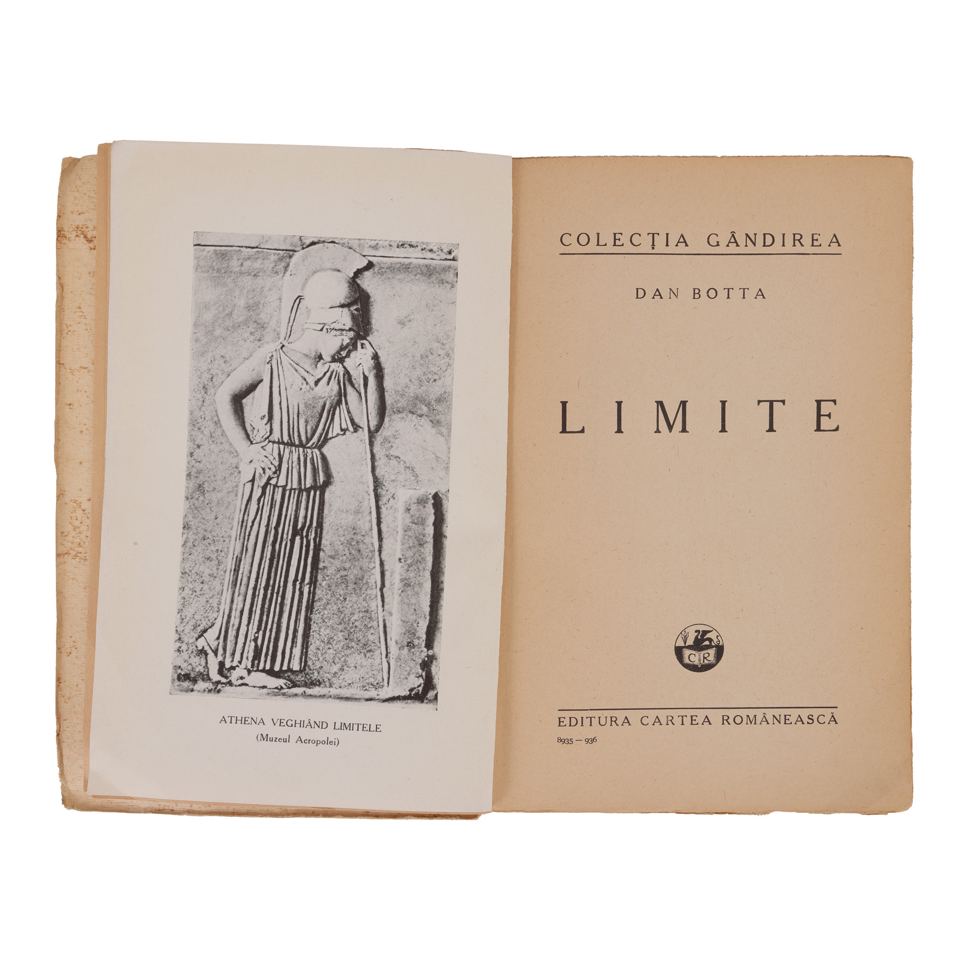 42. ”Limite”, de Dan Botta, București, 1936, cu dedicația ulterioară a autorului către istoricul literar Dan Grigorescu