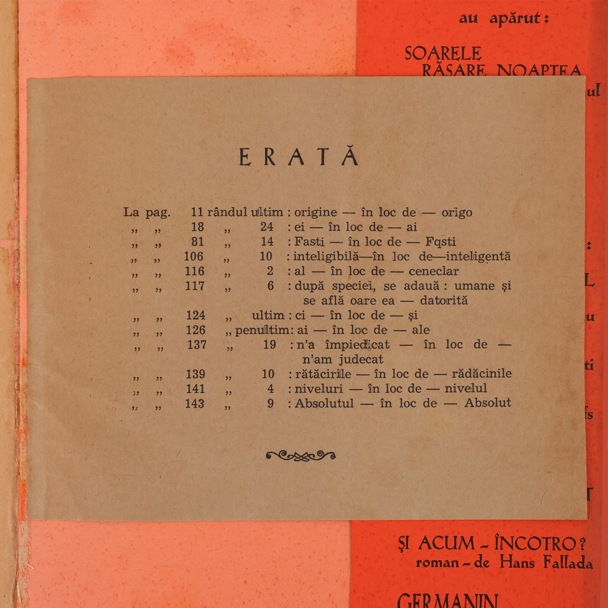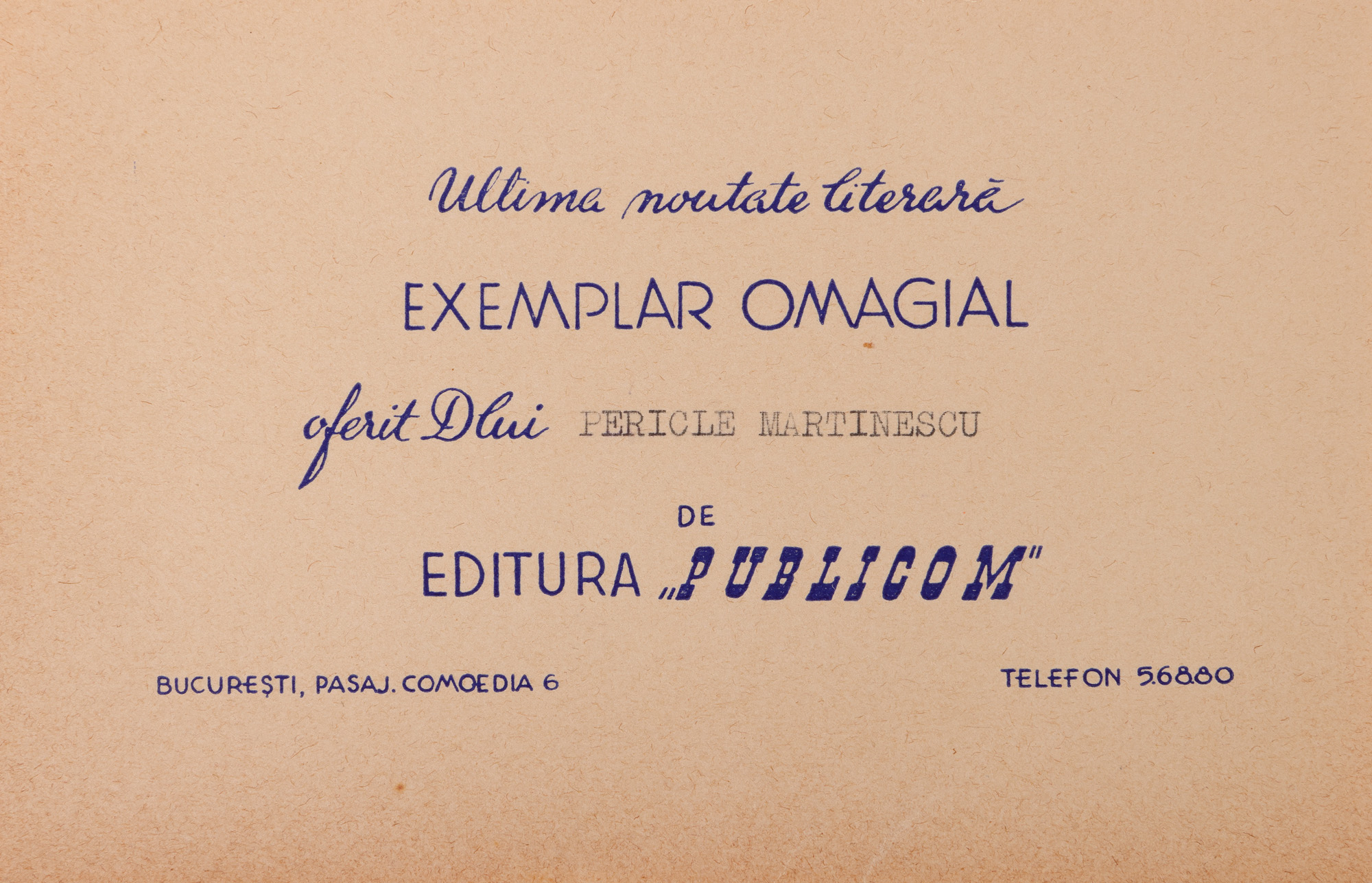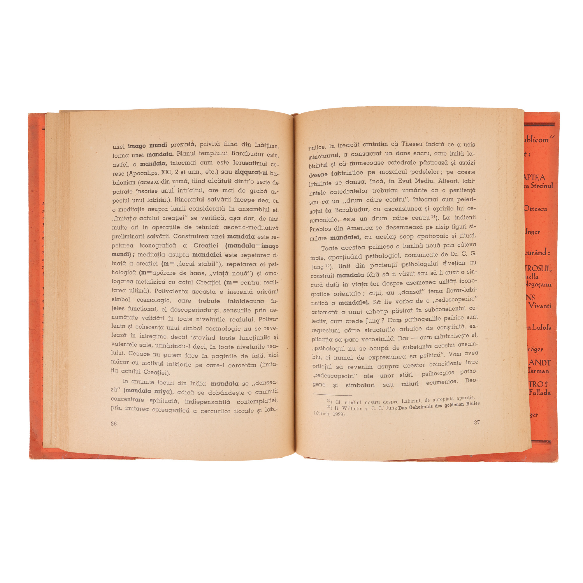 4. Lot format din ”Comentarii la Legenda Meșterului Manole”, de Mircea Eliade, București, 1943, și fluturaș publicitar, provin din colecția scriitorului Pericle Martinescu
