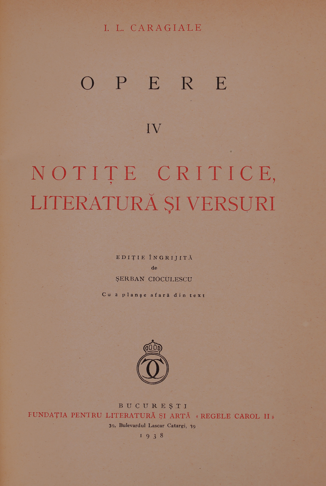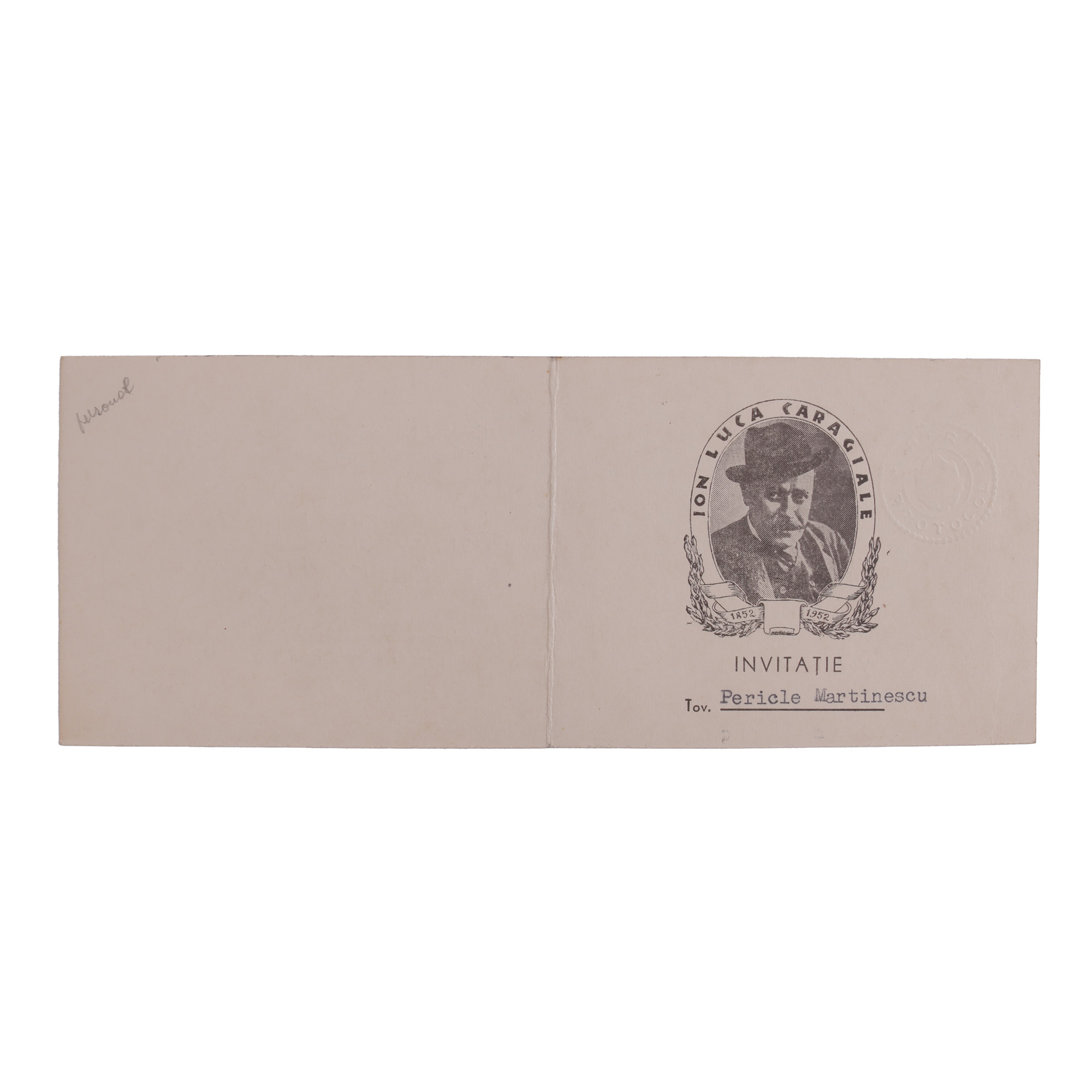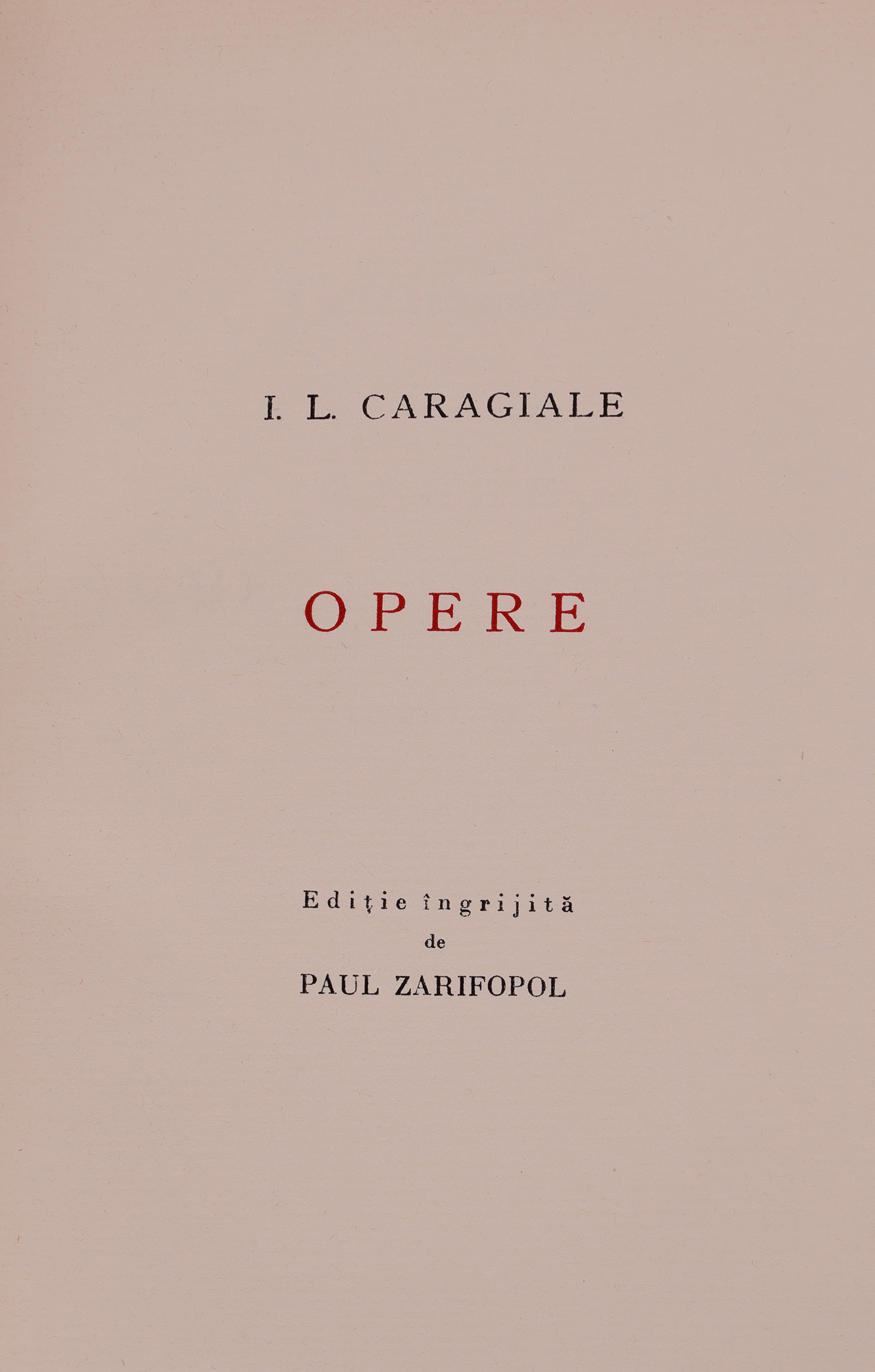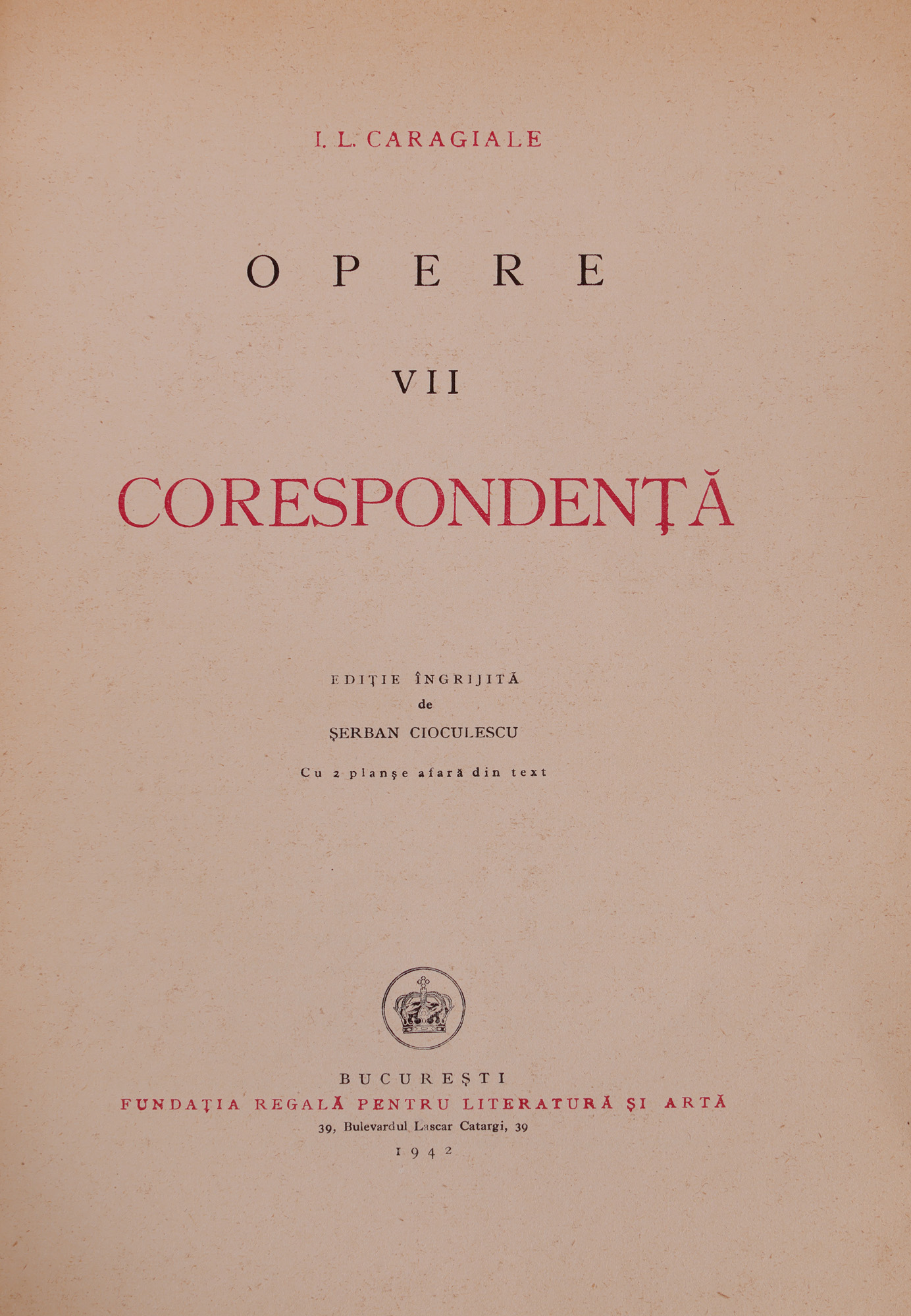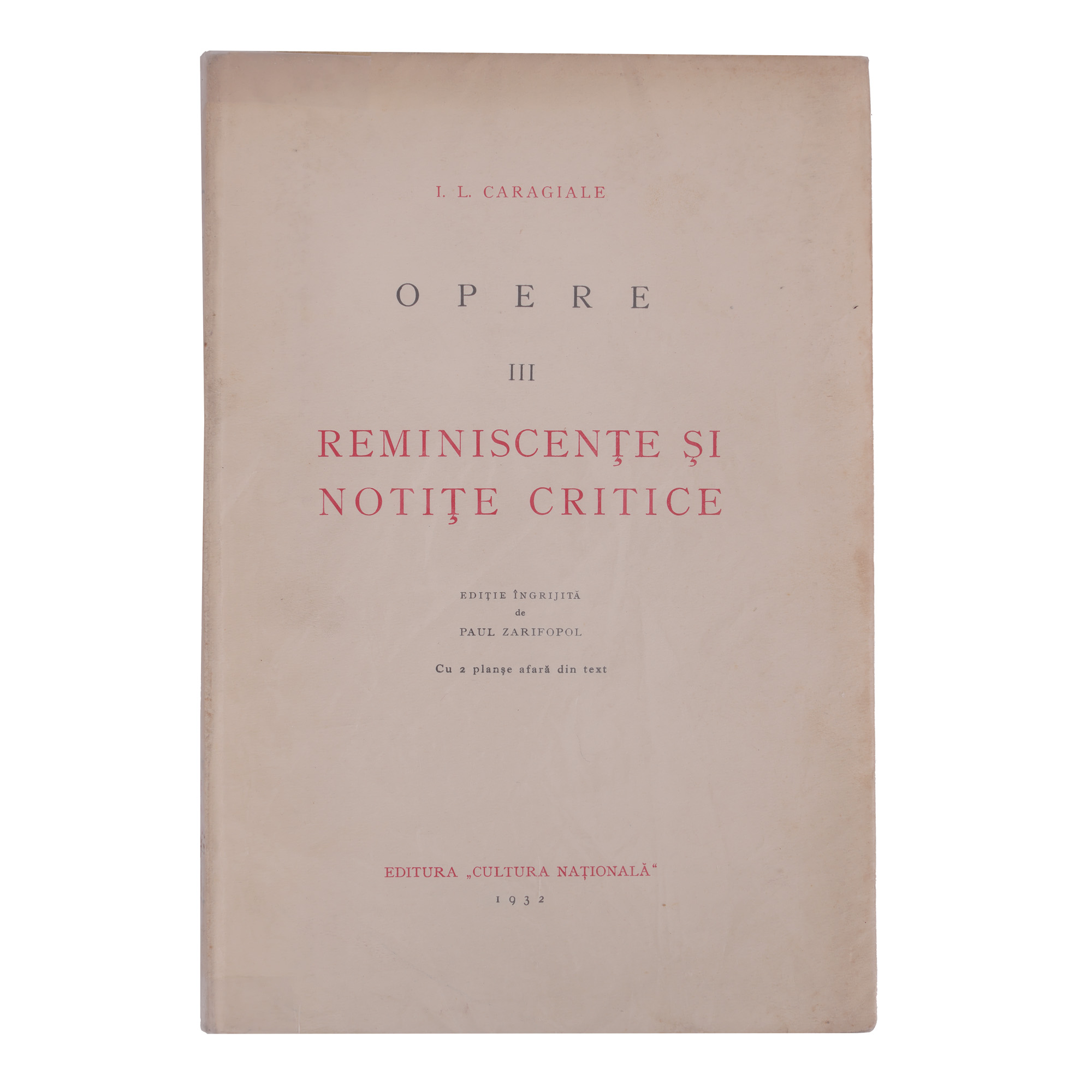 21. Lot format din ”Opere”, de Ion Luca Caragiale, șapte volume, ediție îngrijită de Paul Zarifopol și Șerban Cioculescu, București, 1930-1942, exemplare bibliofile, plus invitație la sărbătorirea centenarului nașterii lui Ion Luca Caragiale, București, 1952, plus fluturaș publicitar al Fundației Pentru Literatură Și Artă Regele ”Carol II”, provin din colecția scriitorului Pericle Martinescu