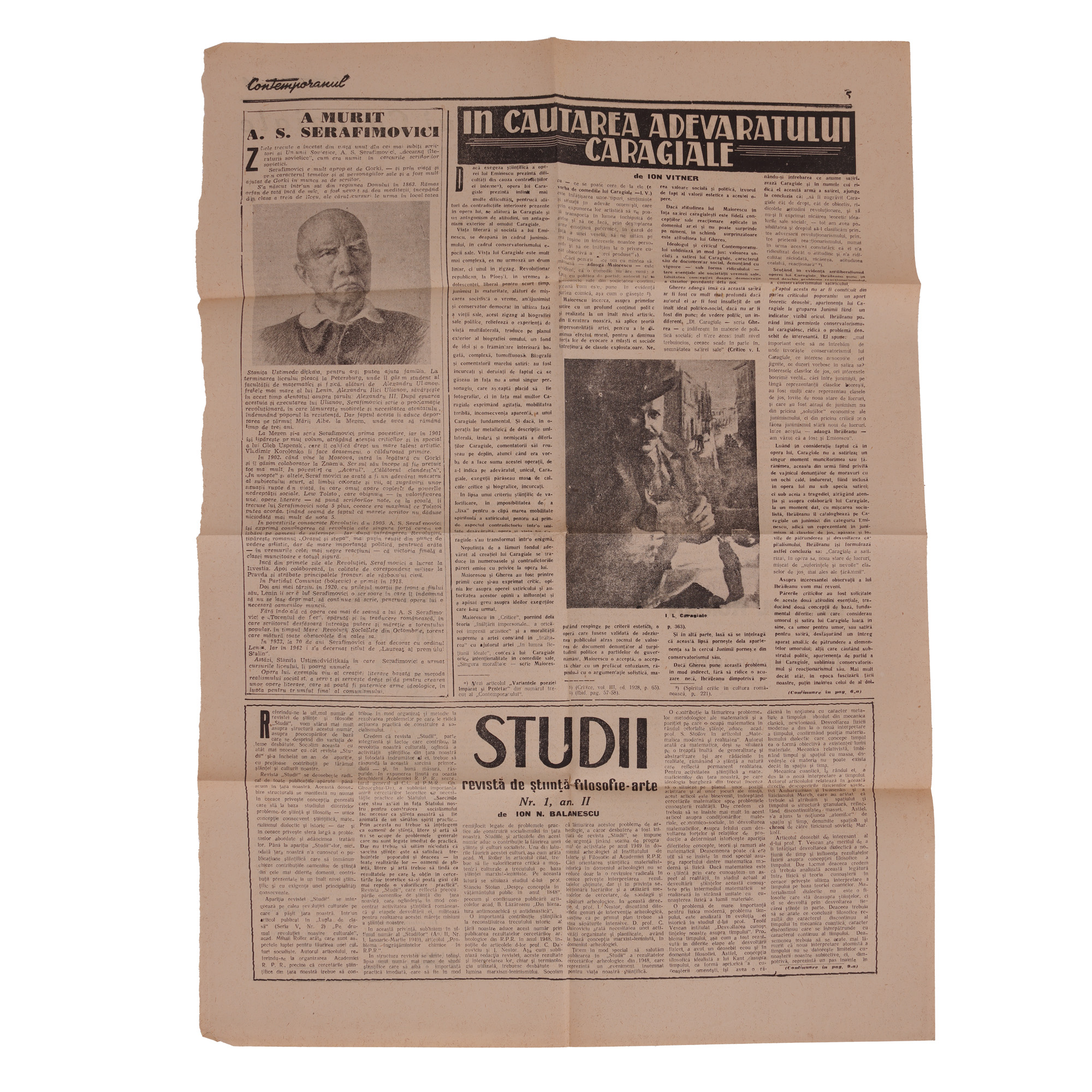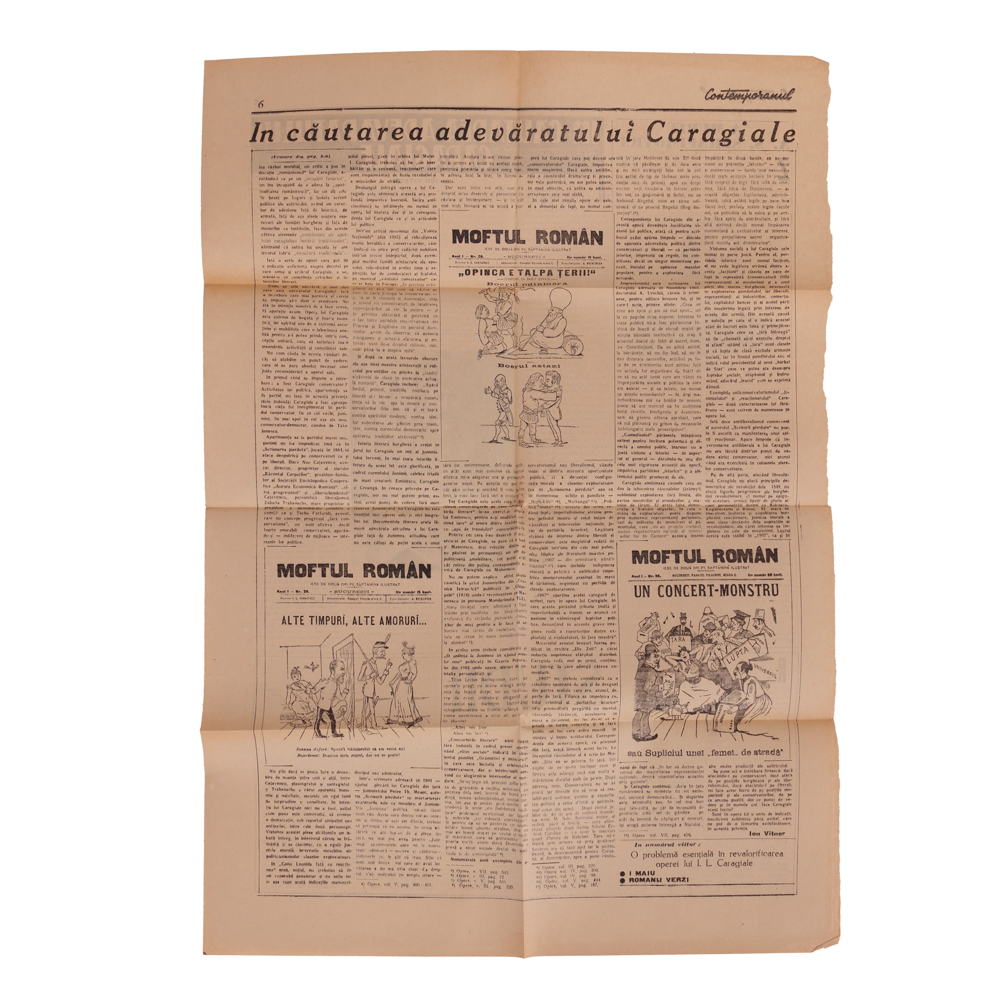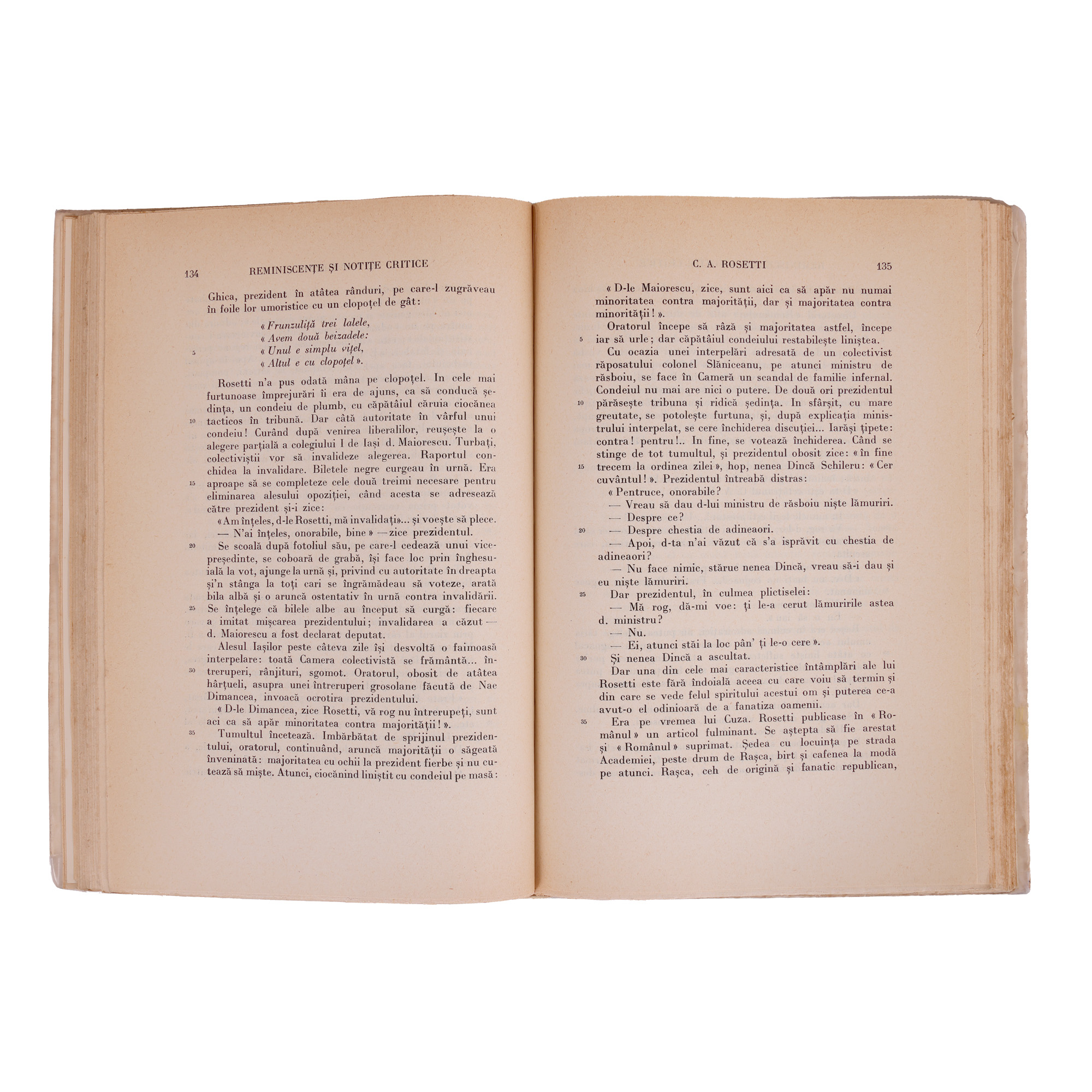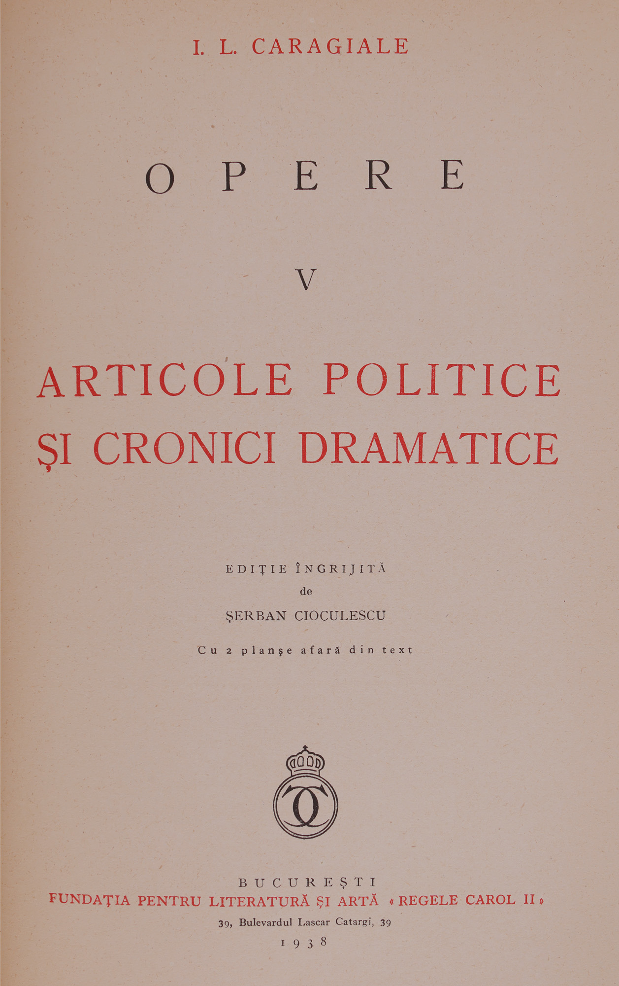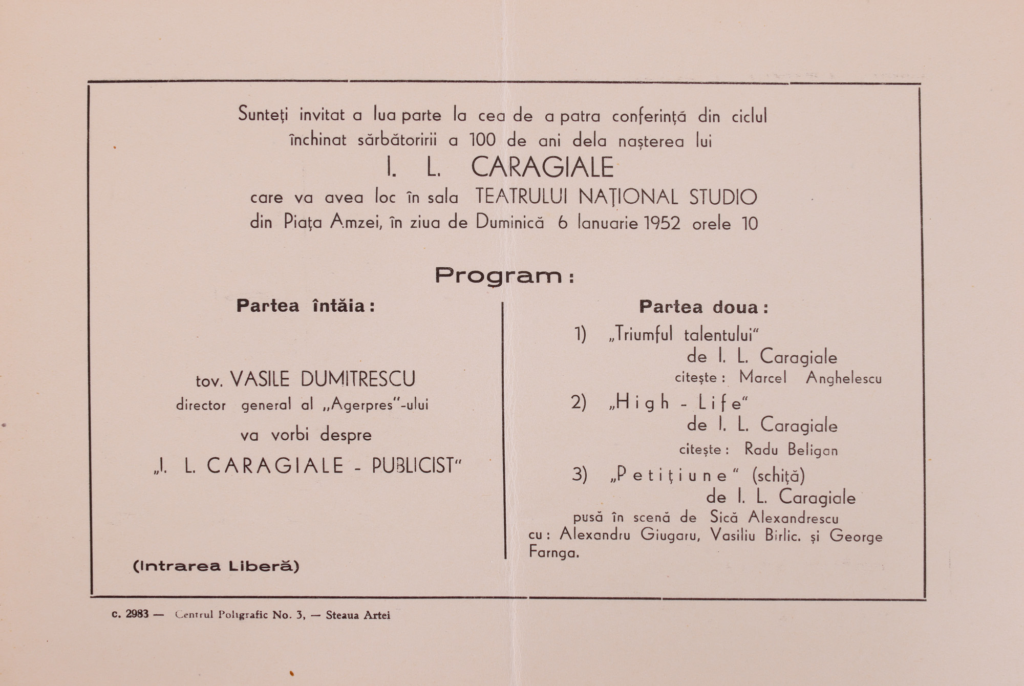 21. Lot format din ”Opere”, de Ion Luca Caragiale, șapte volume, ediție îngrijită de Paul Zarifopol și Șerban Cioculescu, București, 1930-1942, exemplare bibliofile, plus invitație la sărbătorirea centenarului nașterii lui Ion Luca Caragiale, București, 1952, plus fluturaș publicitar al Fundației Pentru Literatură Și Artă Regele ”Carol II”, provin din colecția scriitorului Pericle Martinescu
