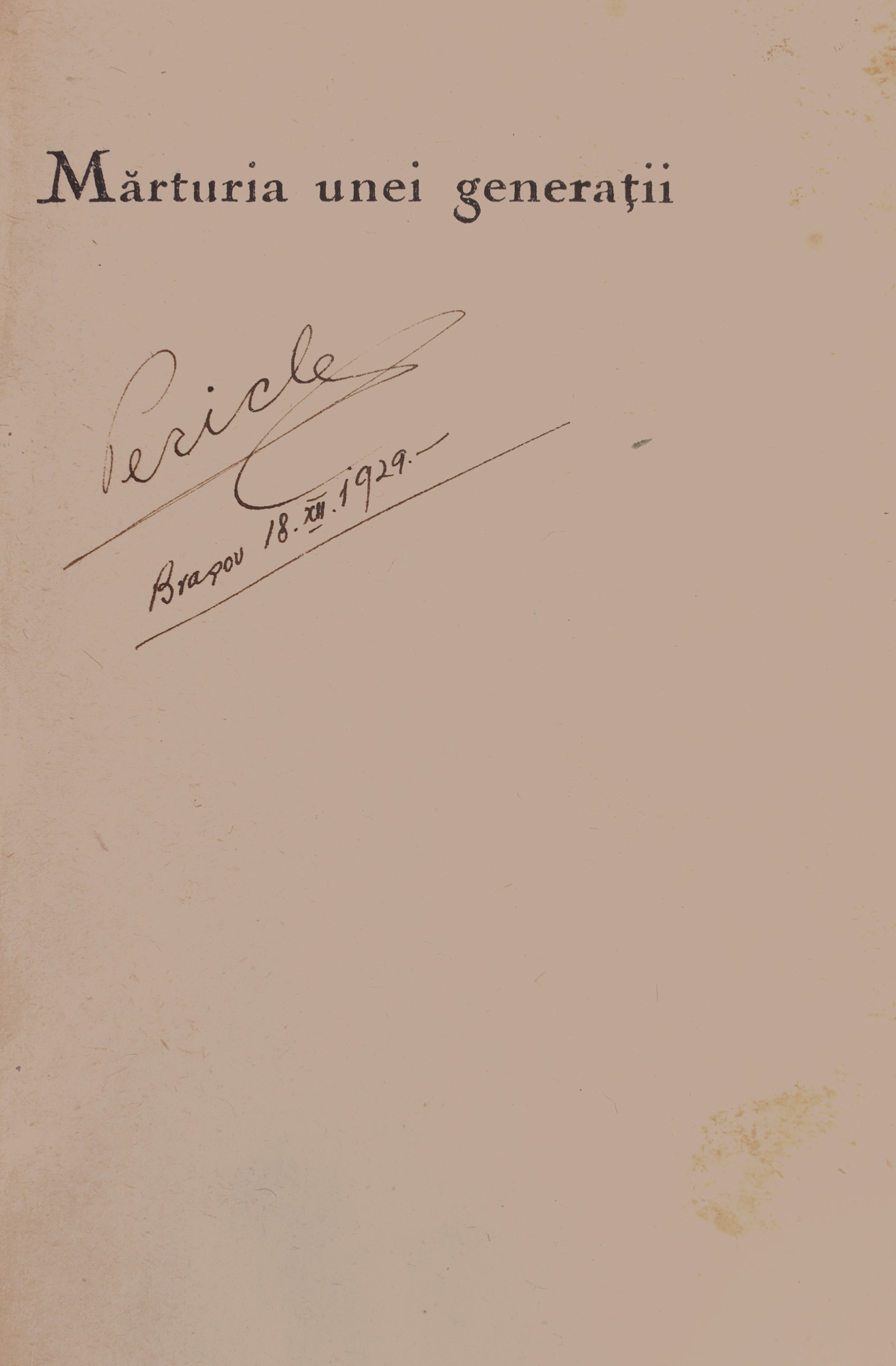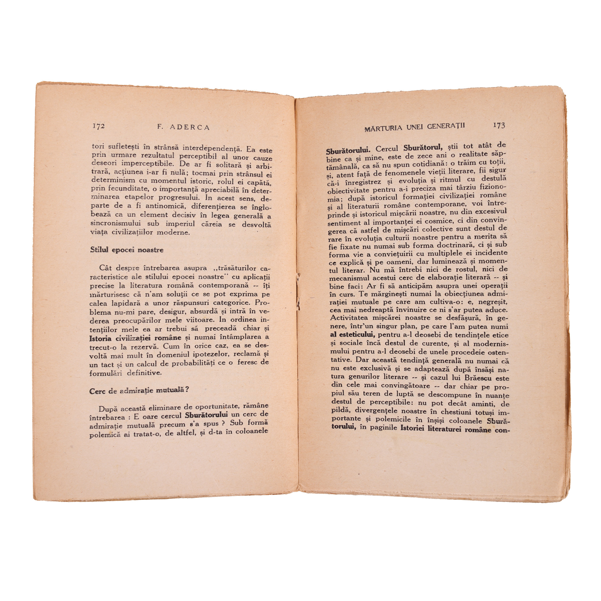 30. ''Mărturia unei generații'', de Felix Aderca, București, 1929, cu portrete de Marcel Iancu și cu ex-librisul scriitorului Pericle Martinescu, din a cărui colecție provine