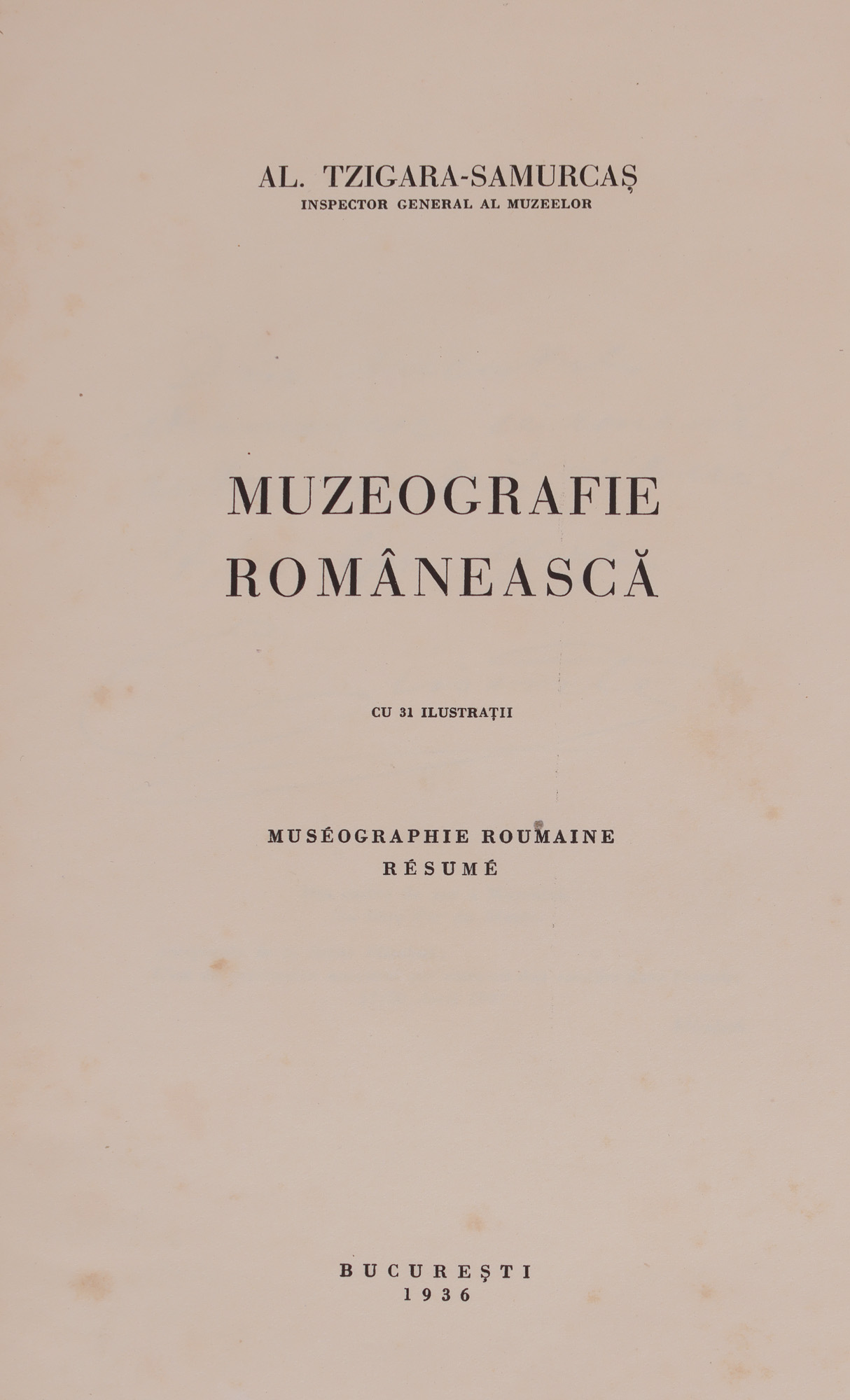 76. ”Muzeografie românească”, de Alexandru Tzigara-Samurcaș, București, 1936, cu 31 de ilustrații, exemplar bibliofil numerotat 49/50