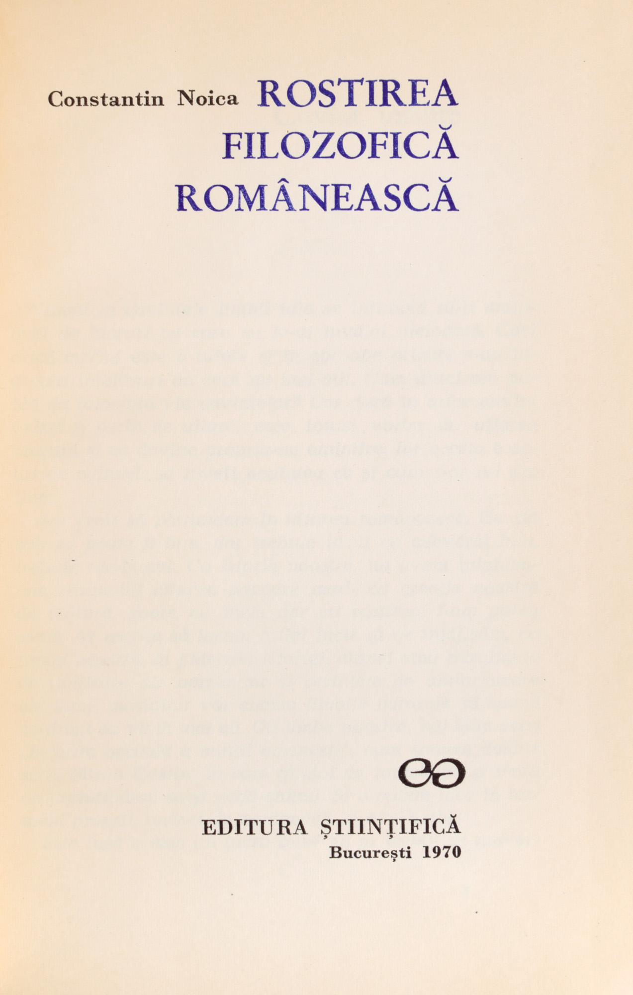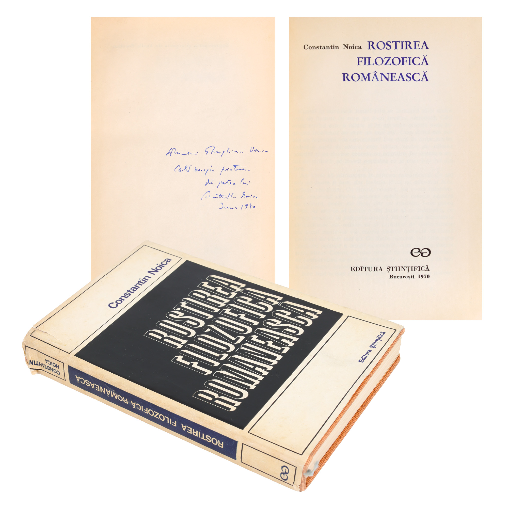 82. ”Rostirea filozofică românească”, de Constantin Noica, București, 1970, cu dedicația și semnătura olografă a autorului către scriitorul Vania Gherghinescu
