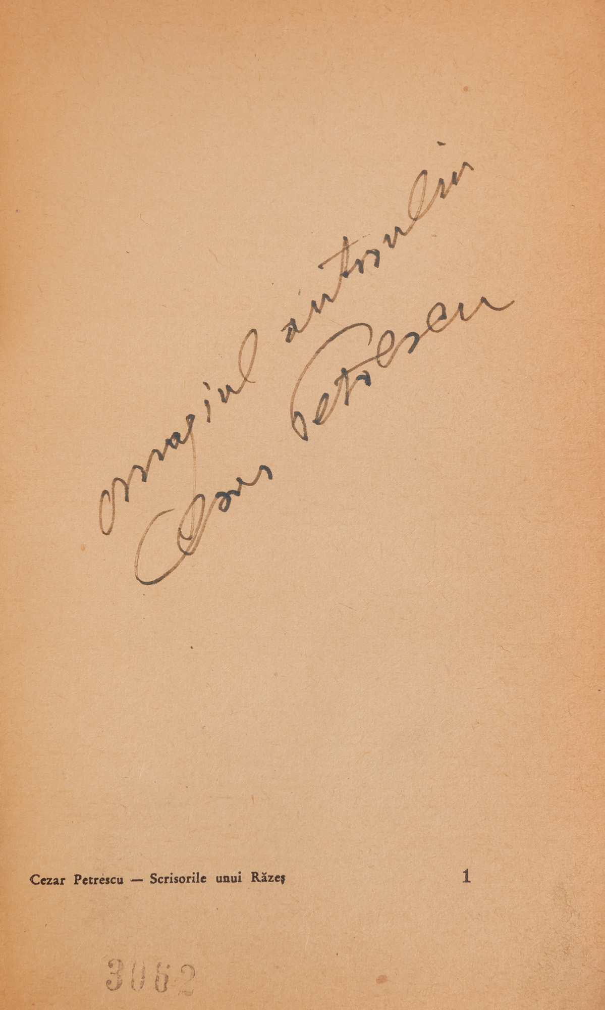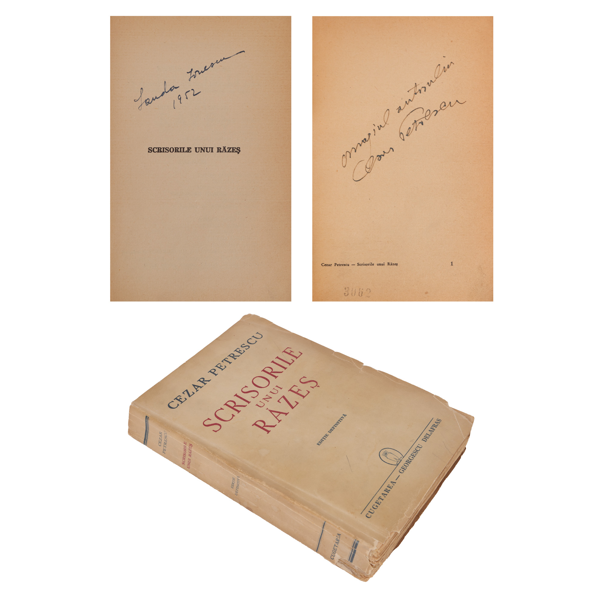 45. ”Scrisorile unui răzeș”, de Cezar Petrescu, București, 1941, cu dedicația și semnătura olografă a autorului