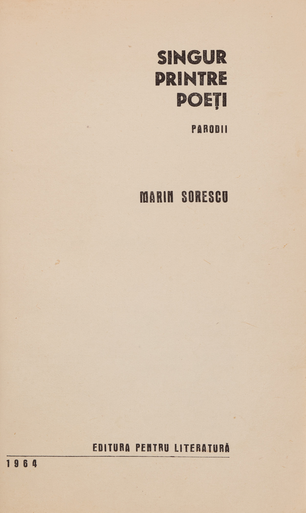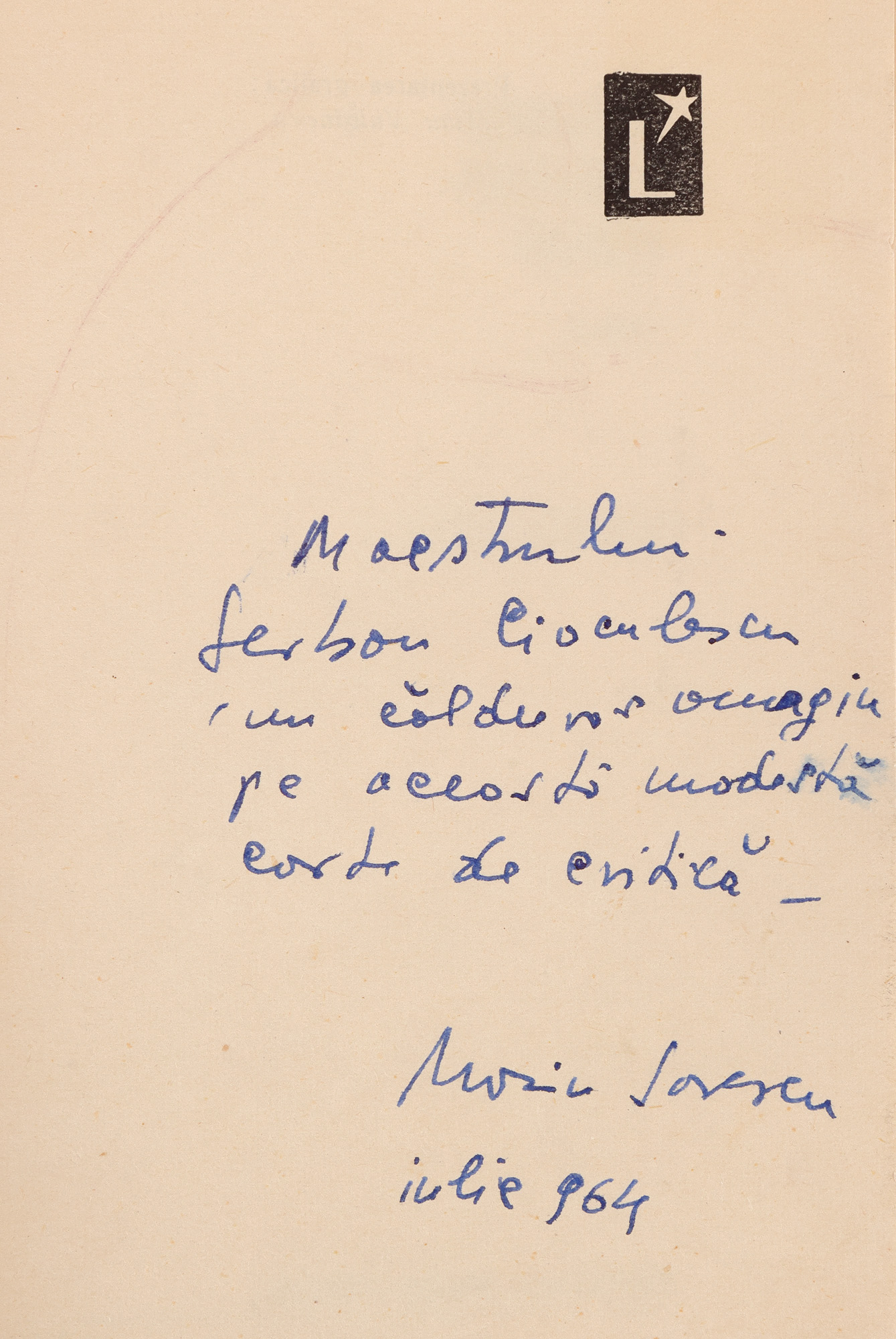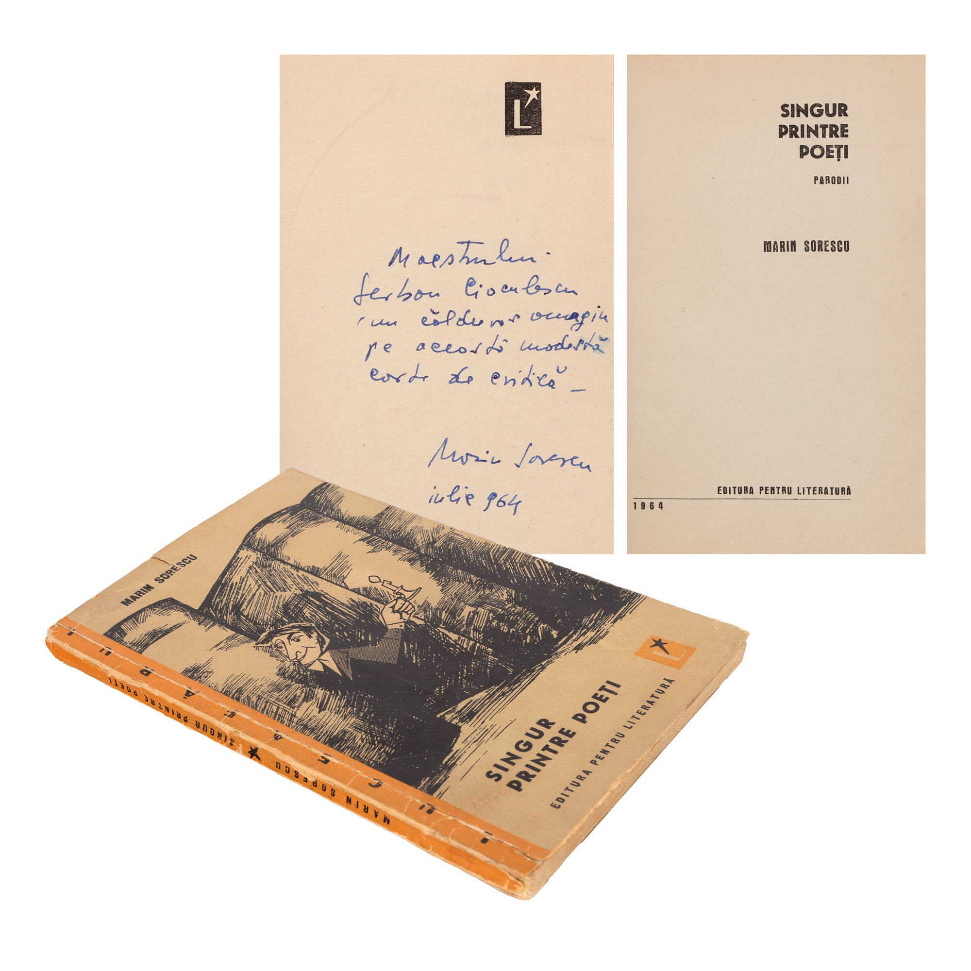 55. ”Singur printre poeți” de Marin Sorescu, volum de debut, ediție princeps, București, 1964, cu dedicația și semnătura olografă a autorului către Șerban Cioculescu