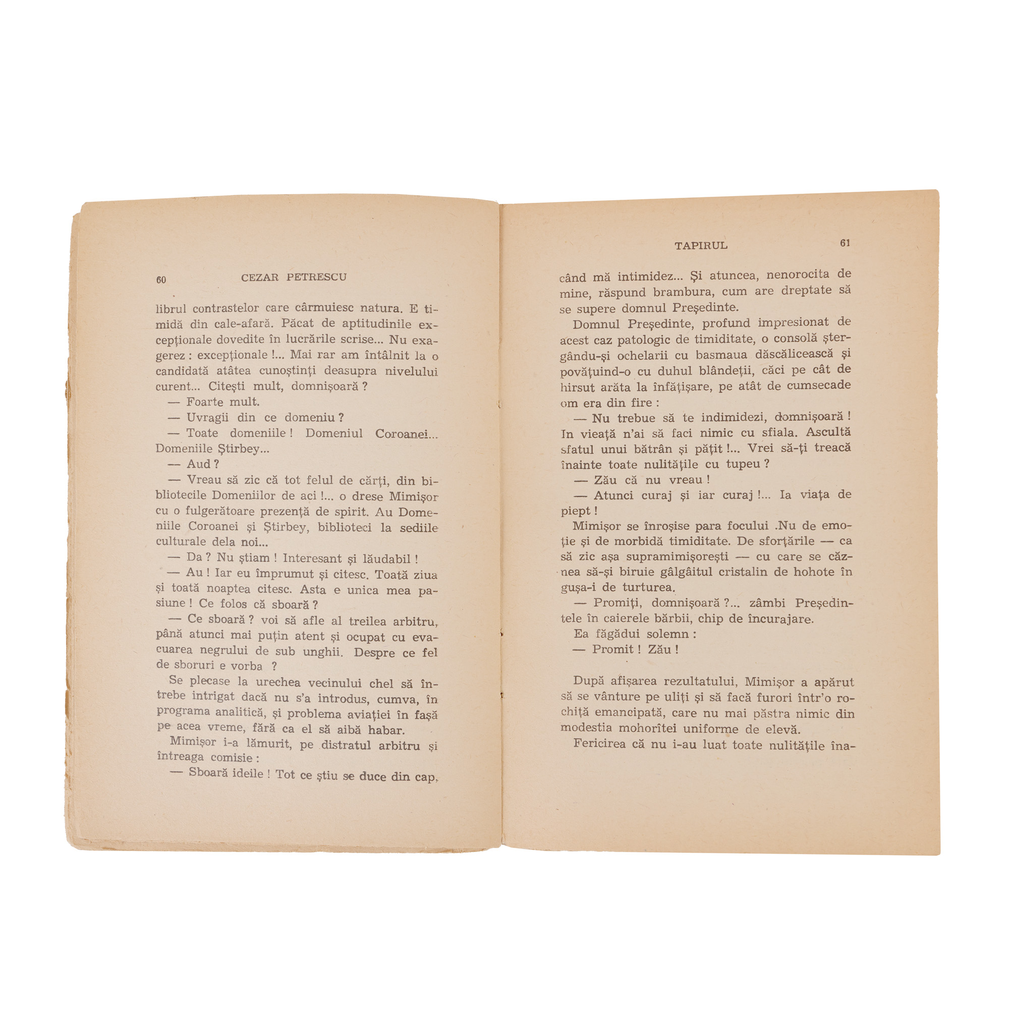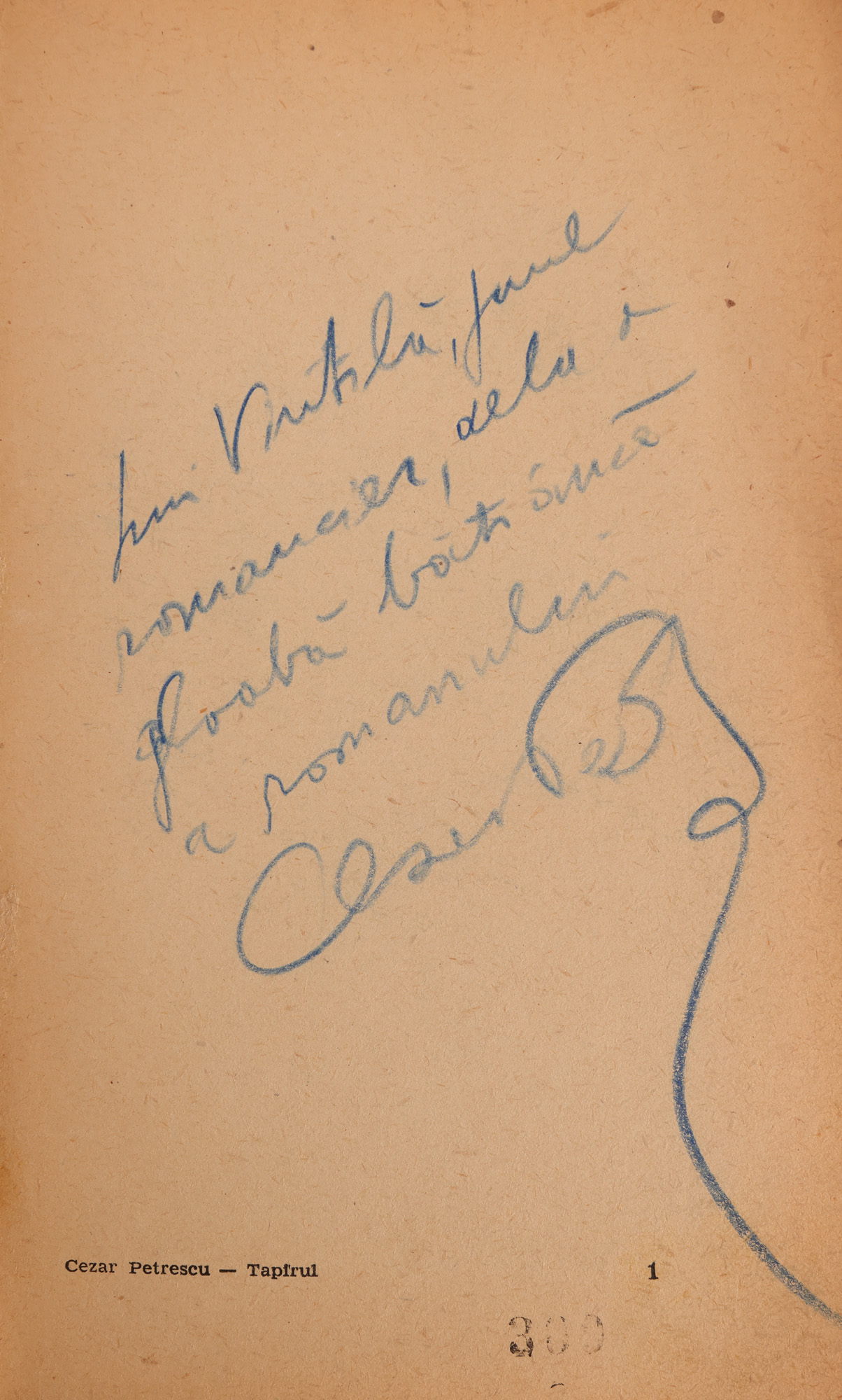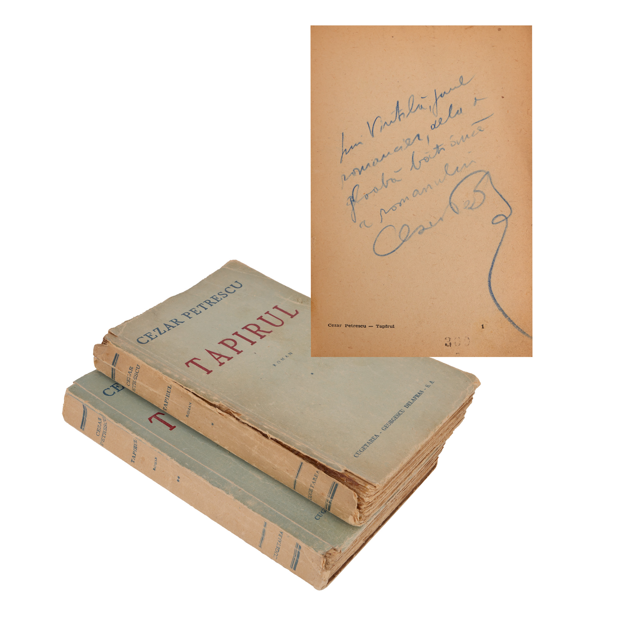 46. ”Tapirul”, de Cezar Petrescu, două volume, București, 1946, cu dedicația autorului către scriitorul Vintilă Corbul