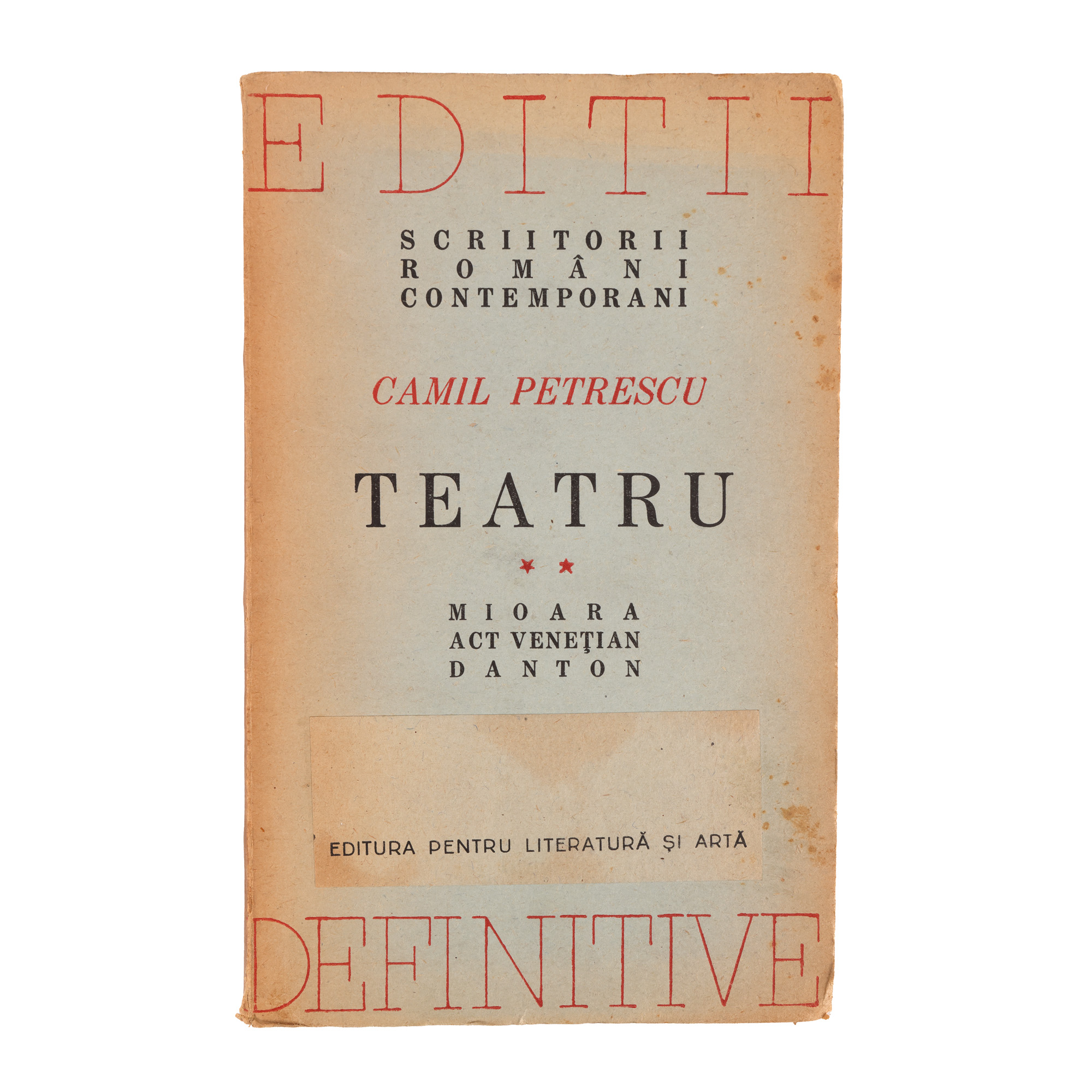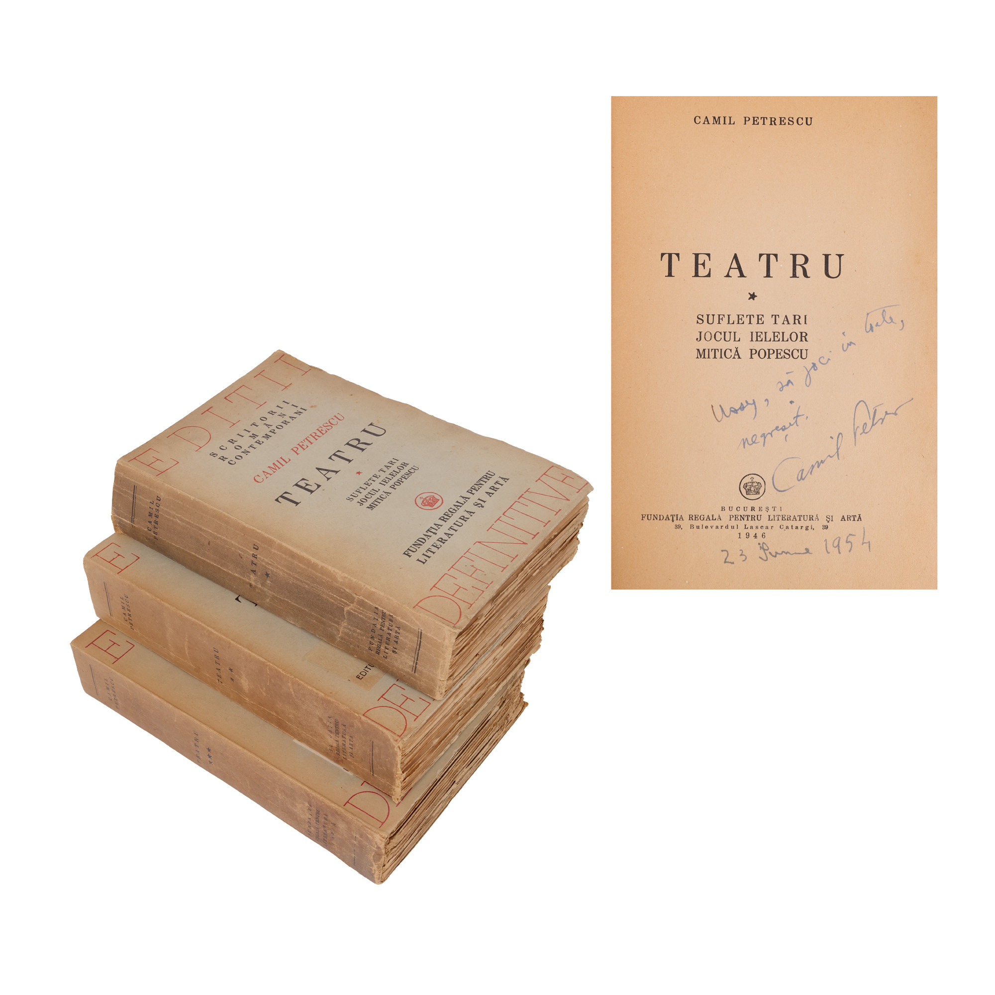 43. ”Teatru”, de Camil Petrescu, trei volume, București, 1946-1947, cu dedicația olografă a autorului, exemplar netăiat