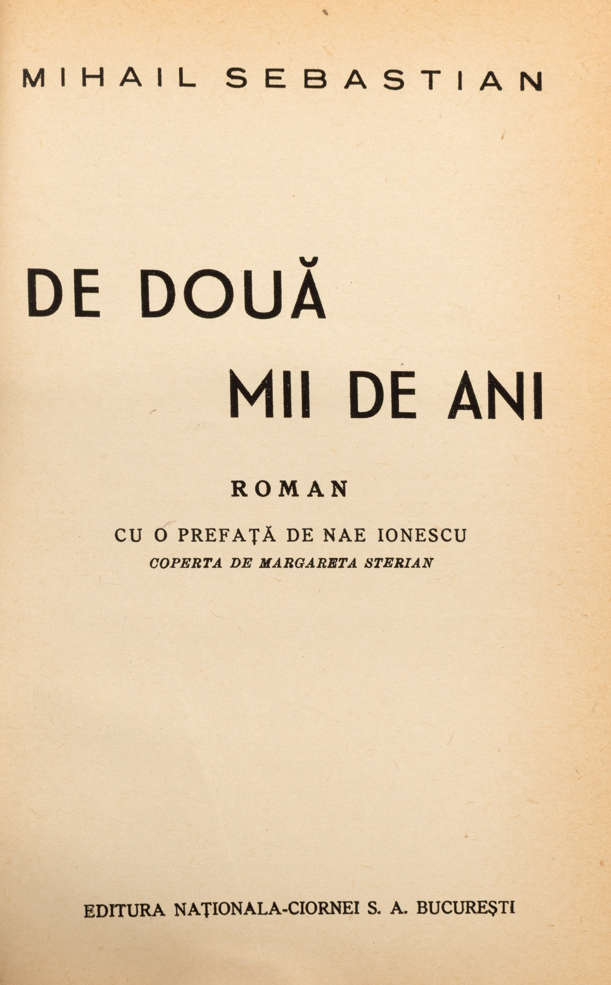 23. ”De două mii de ani”, de Mihail Sebastian, cu o prefață de Nae Ionescu, București, 1935, ediție princeps