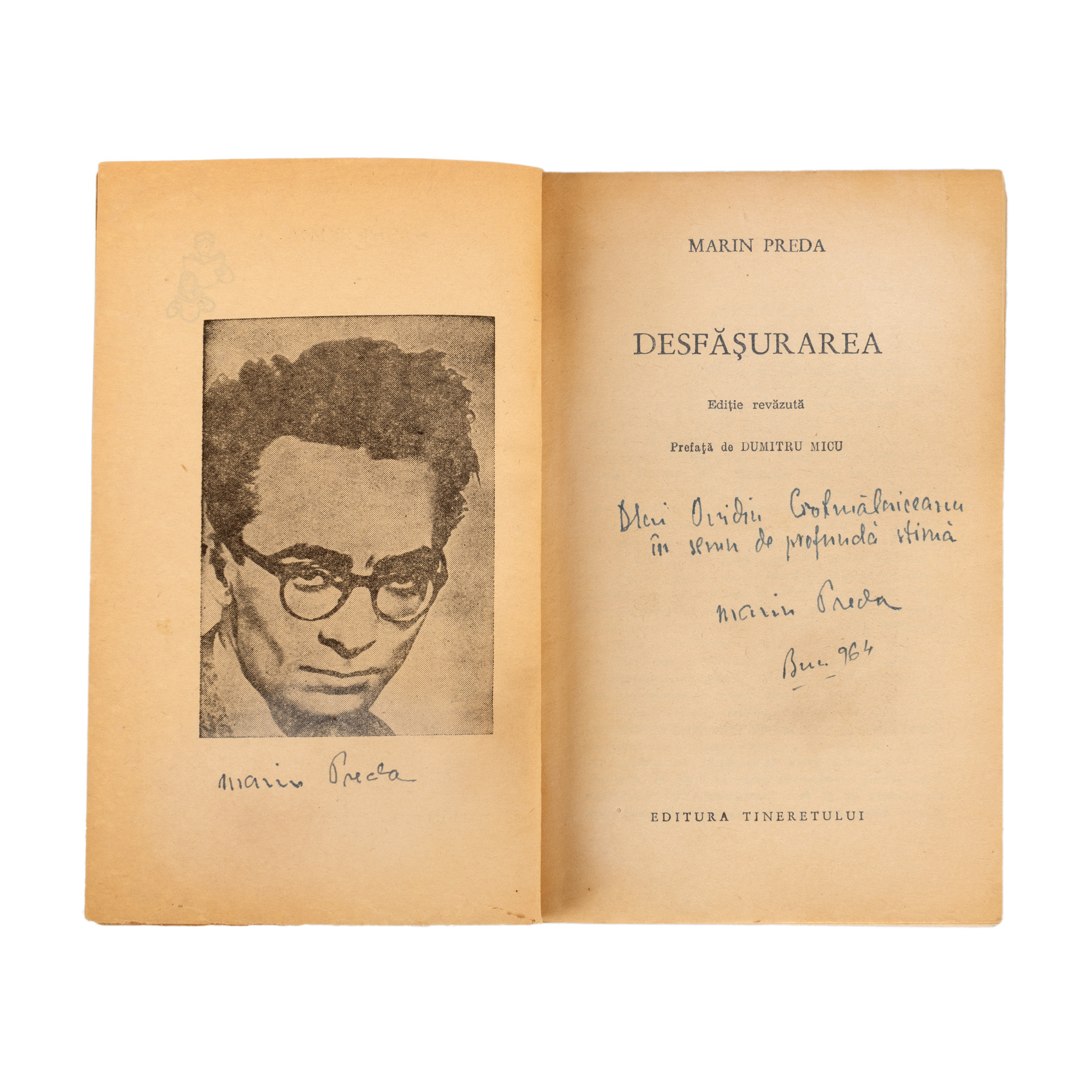 27. ”Desfășurarea”, de Marin Preda, București, 1964, cu dedicația și semnătura olografe ale autorului