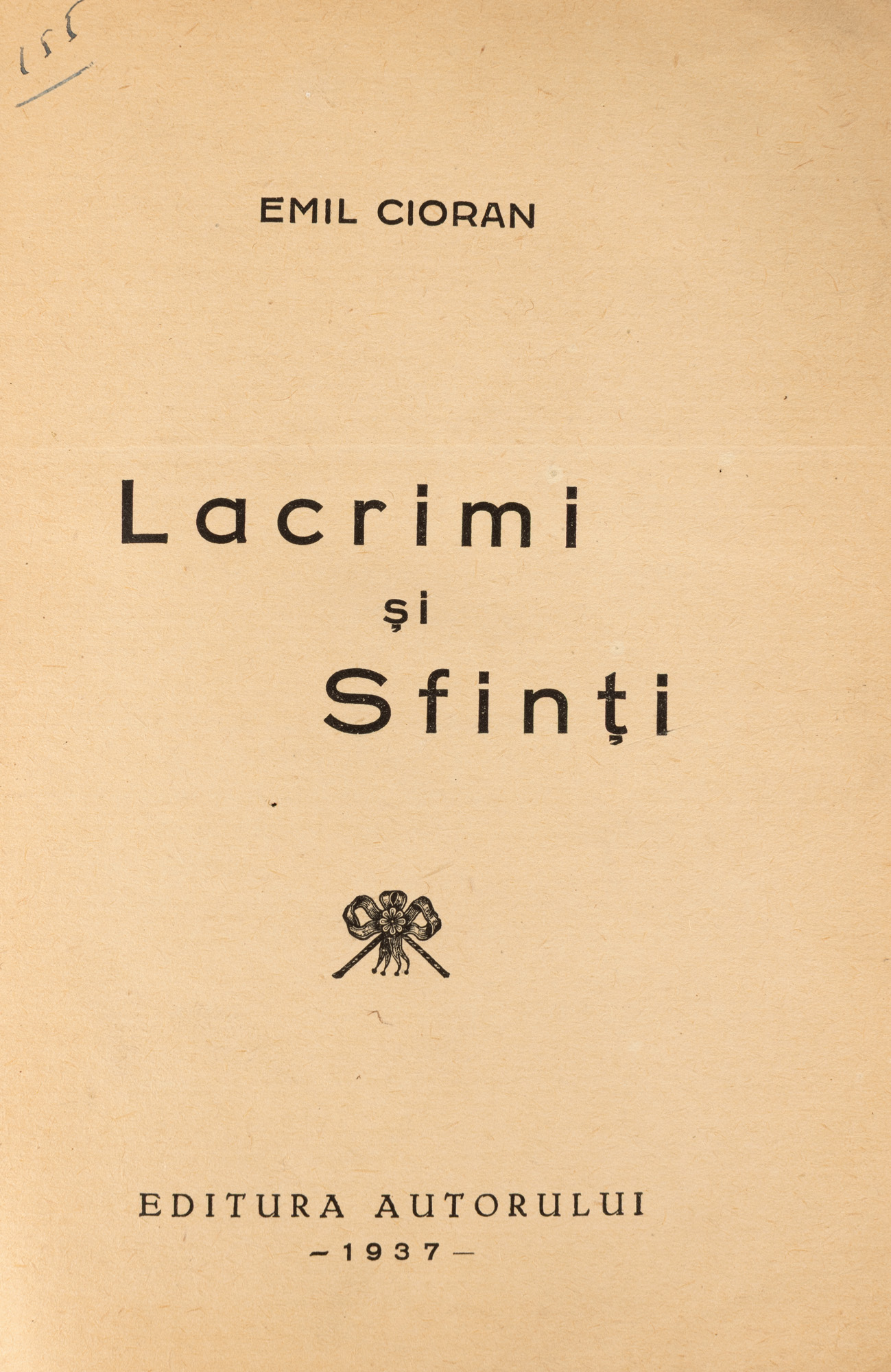20. ”Lacrimi și Sfinți”, de Emil Cioran, București, 1937, ediție princeps