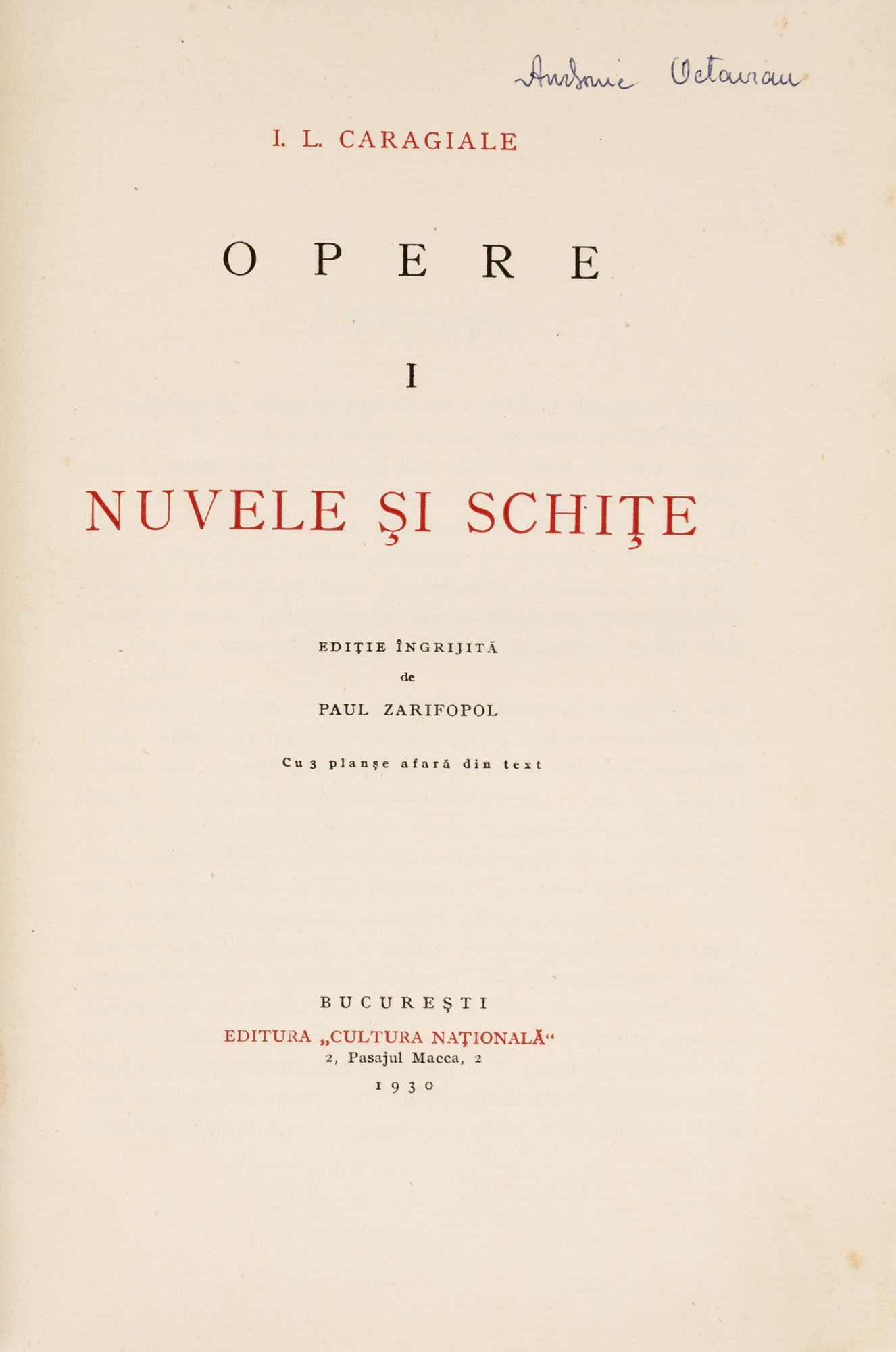 44. ”Opere”, de Ion Luca Caragiale, șapte volume, ediție îngrijită de Paul Zarifopol și Șerban Cioculescu, București, 1930-1938