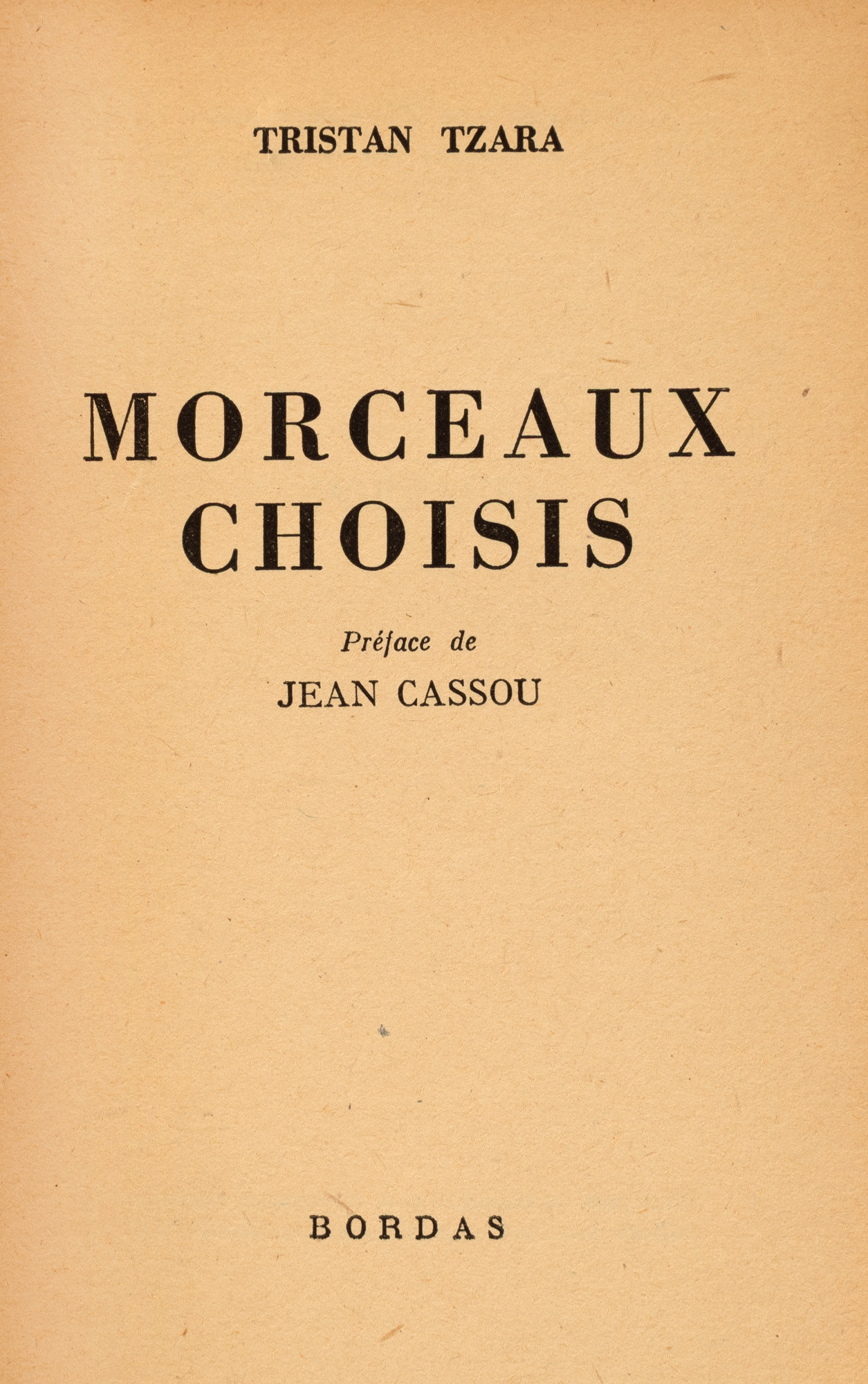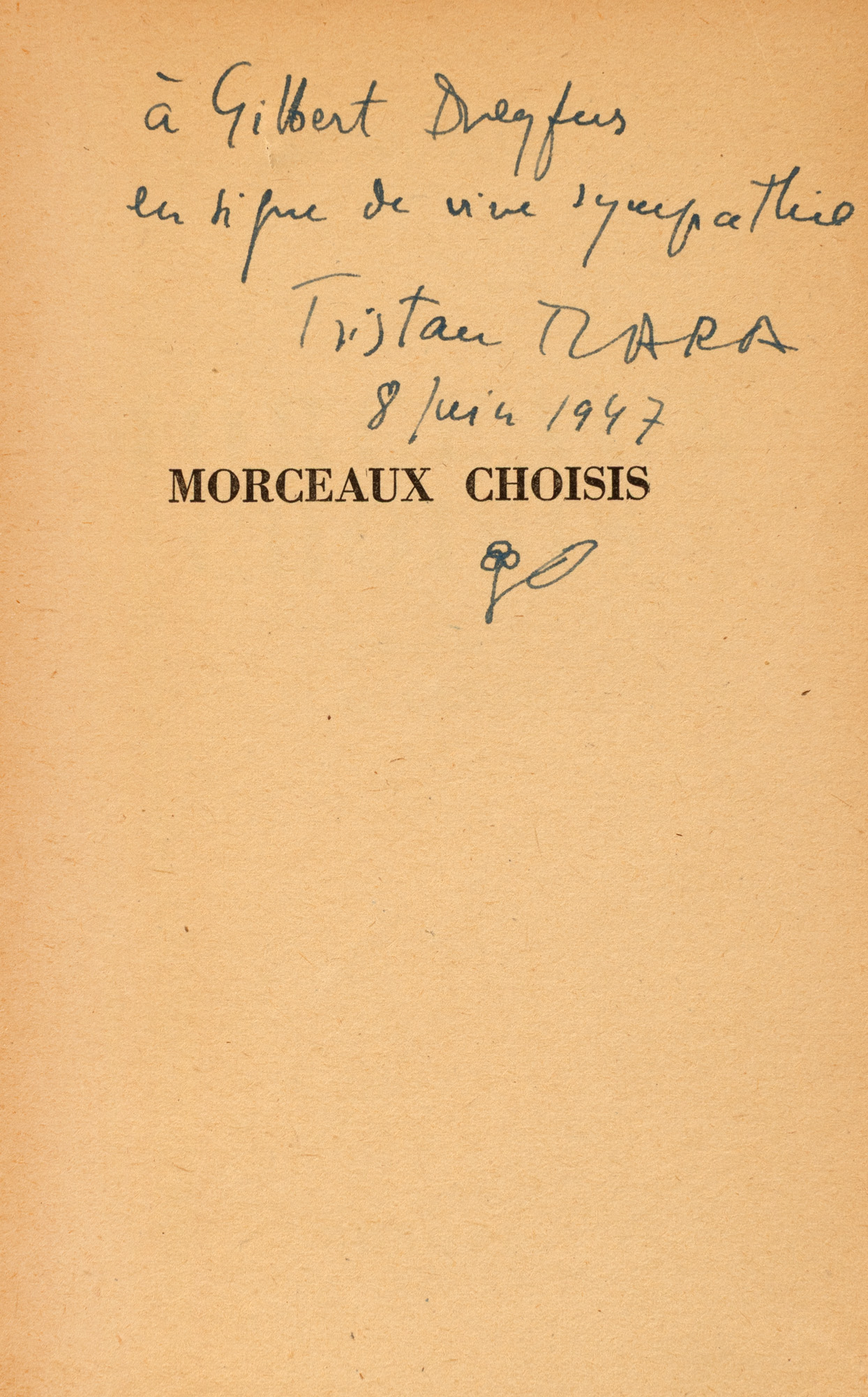 56. ”Piese alese”, de Tristan Tzara, franceză, Paris, 1947, cu dedicația și semnătura olografă a autorului, 8 iunie 1947