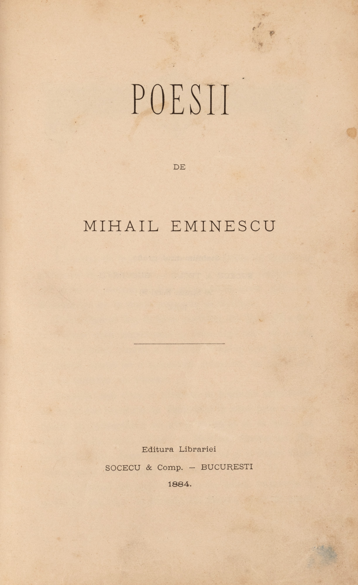 35. ”Poesii”, de Mihai Eminescu, Bucureşti, 1884, ediție princeps, provine din colecția Ioan G. Lecca