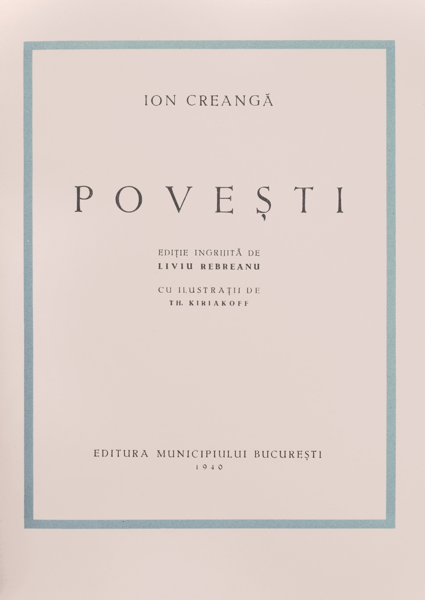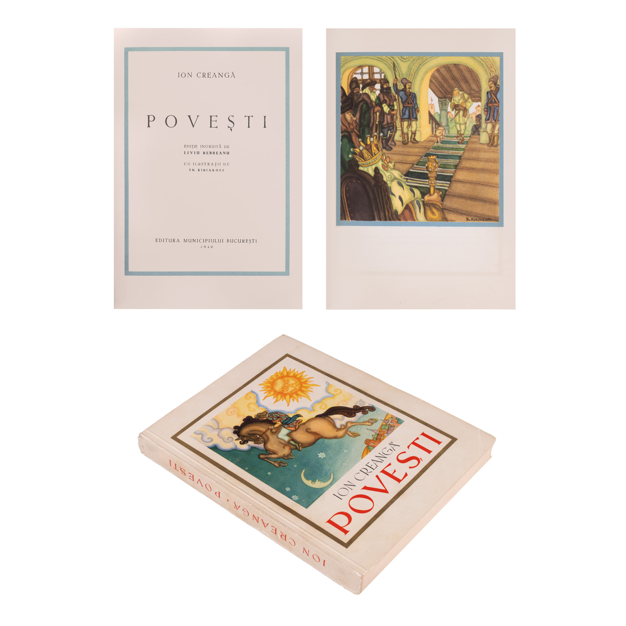 46. ”Povești”, de Ion Creangă, ediție îngrijită de Liviu Rebreanu, București, 1940, cu etui și ilustrații de Theodor Kiriakoff Suruceanu