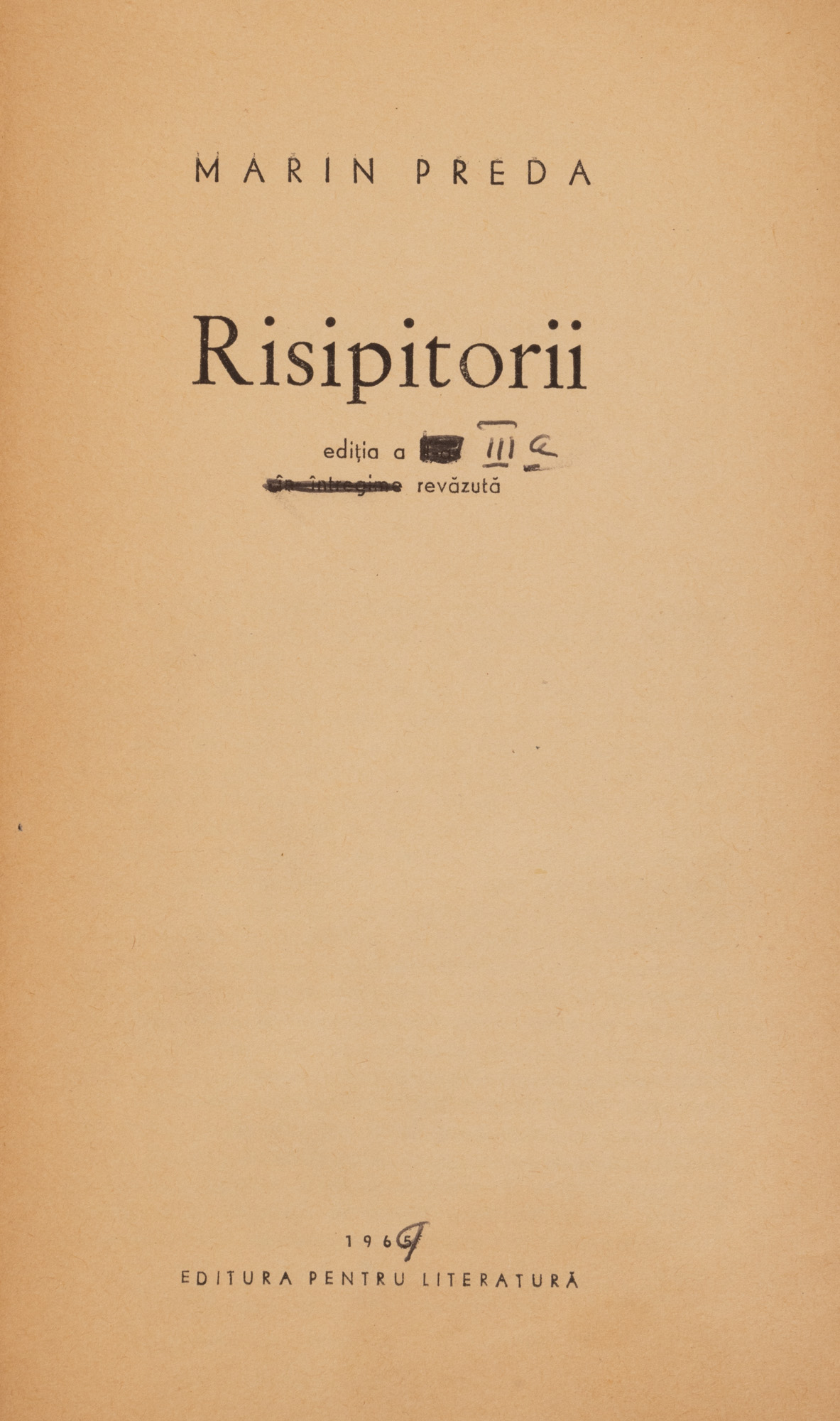 26. ”Risipitorii”, de Marin Preda, București, 1969, exemplar de lucru al autorului, unicat, piesă deosebită, provine din colecția criticului literar și editorului Magdalena Popescu-Bedrosian