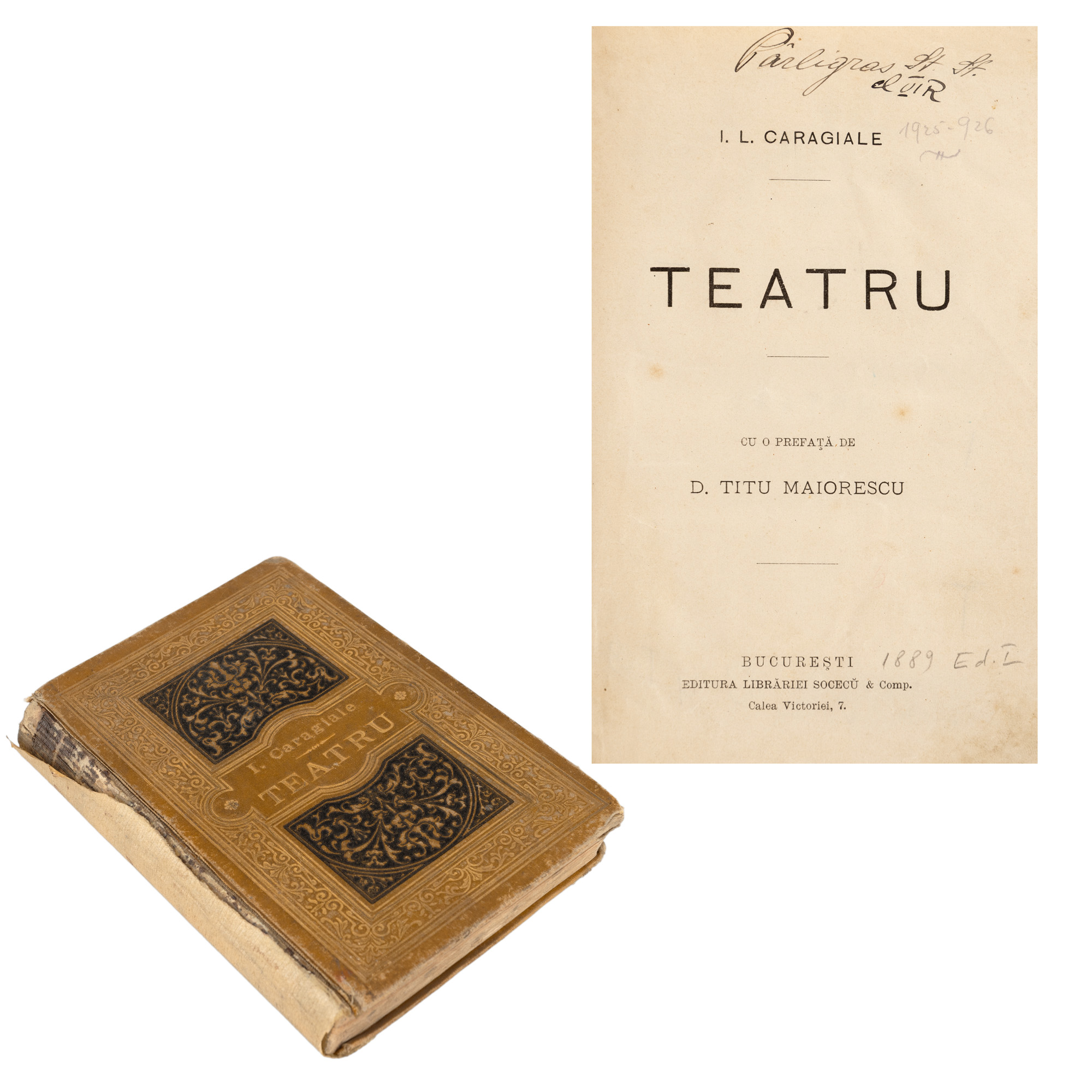 37. ”Teatru”, de I.L. Caragiale, cu o prefață de Titu Maiorescu, București, 1889, ediție princeps
