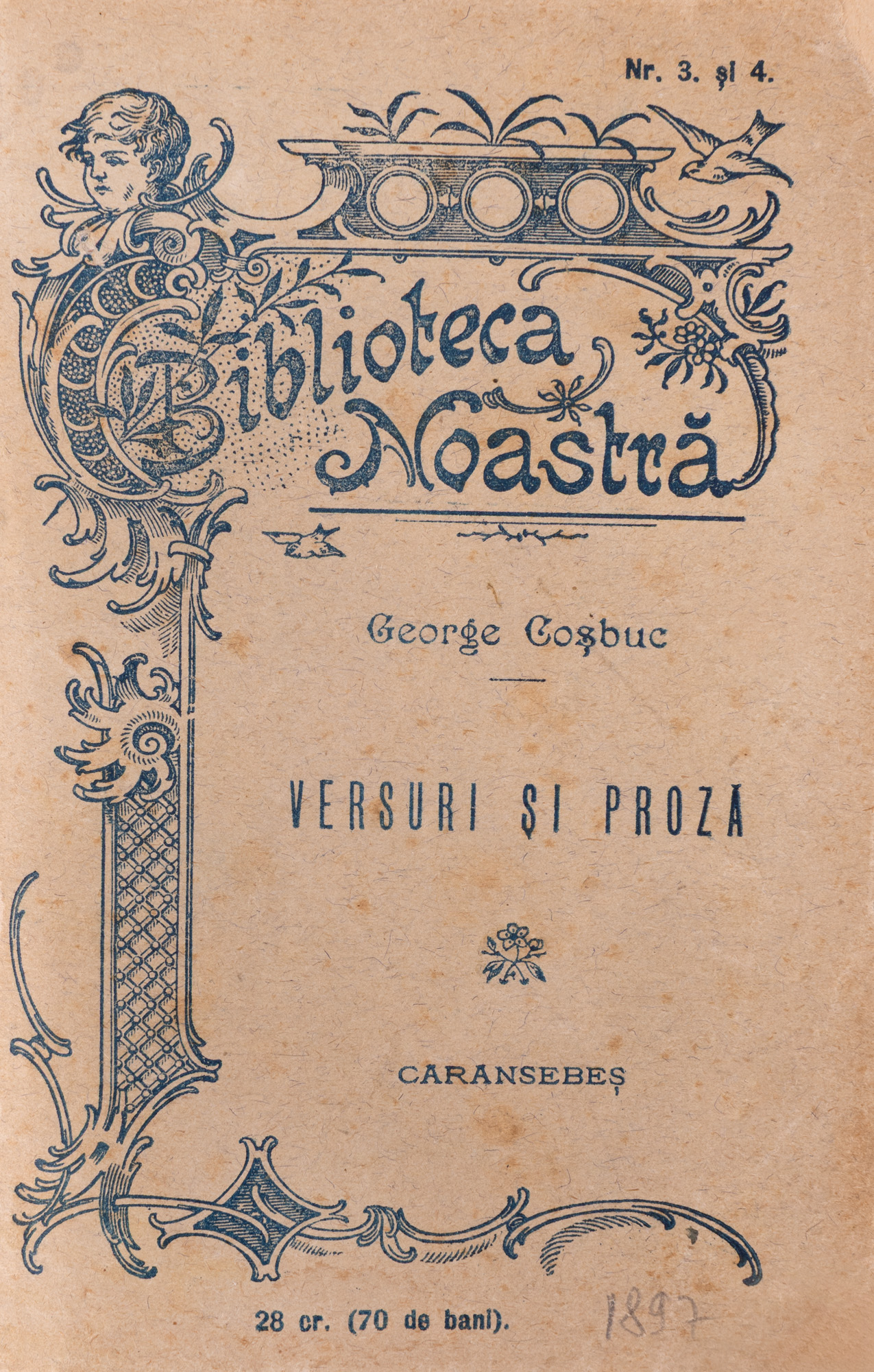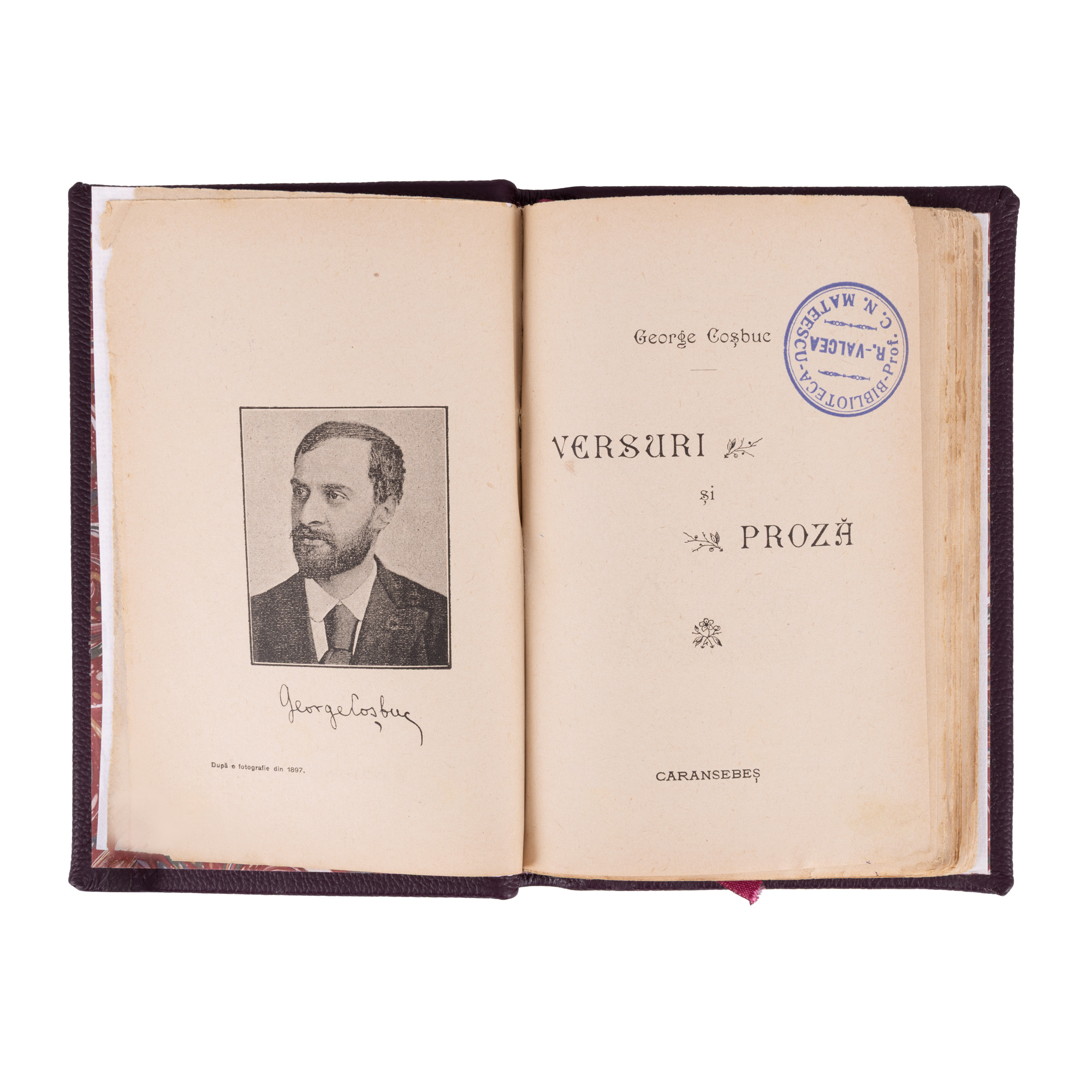 42. ”Versuri și proză”, de George Coșbuc, Caransebeș, 1897, cu ex-libris de proprietate