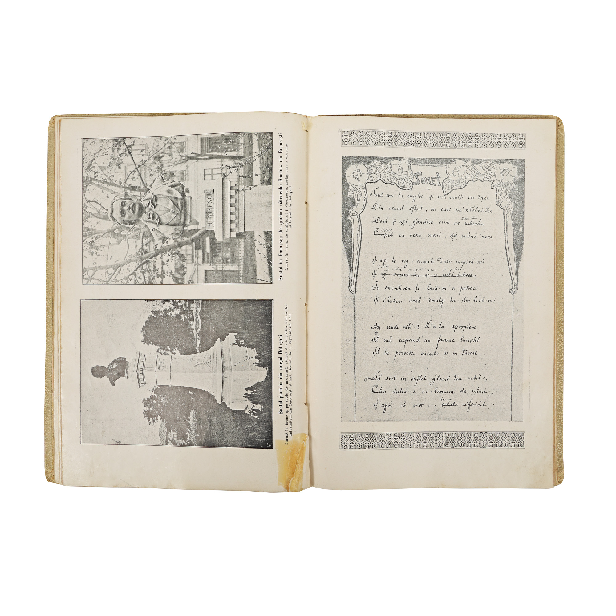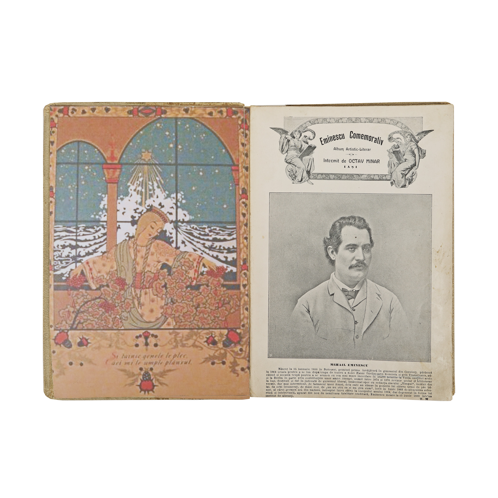 Profesorul și istoricul literar Octav Minar (1886-1922), pasionat de cercetarea vieții poetului Mihai Eminescu, aduna în acest album comemorativ diferite mărturii legate de viața creatorului "Luceafărului" pentru a marca două decenii de la dispariția fizică a poetului. Coperta este una deosebită, de epocă.