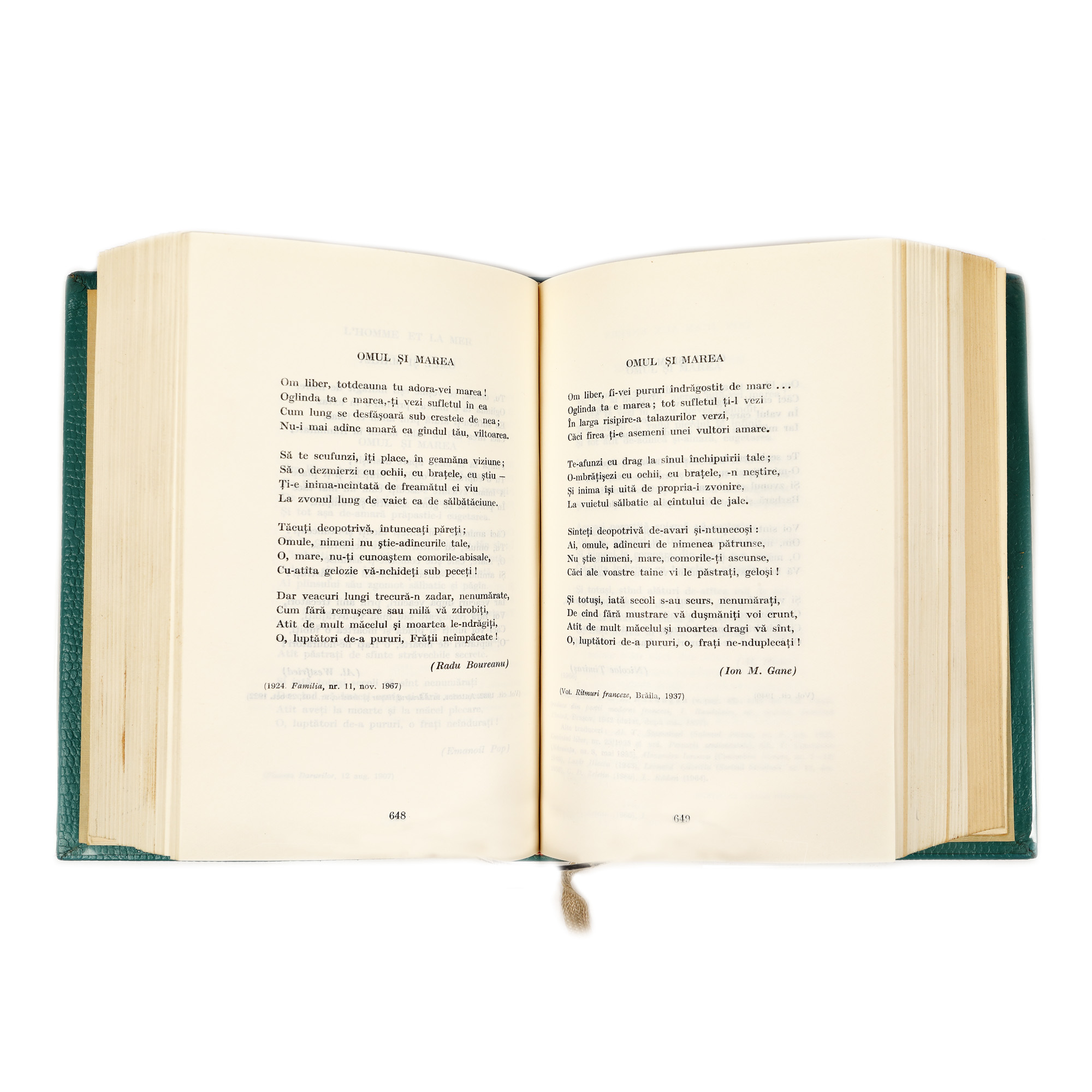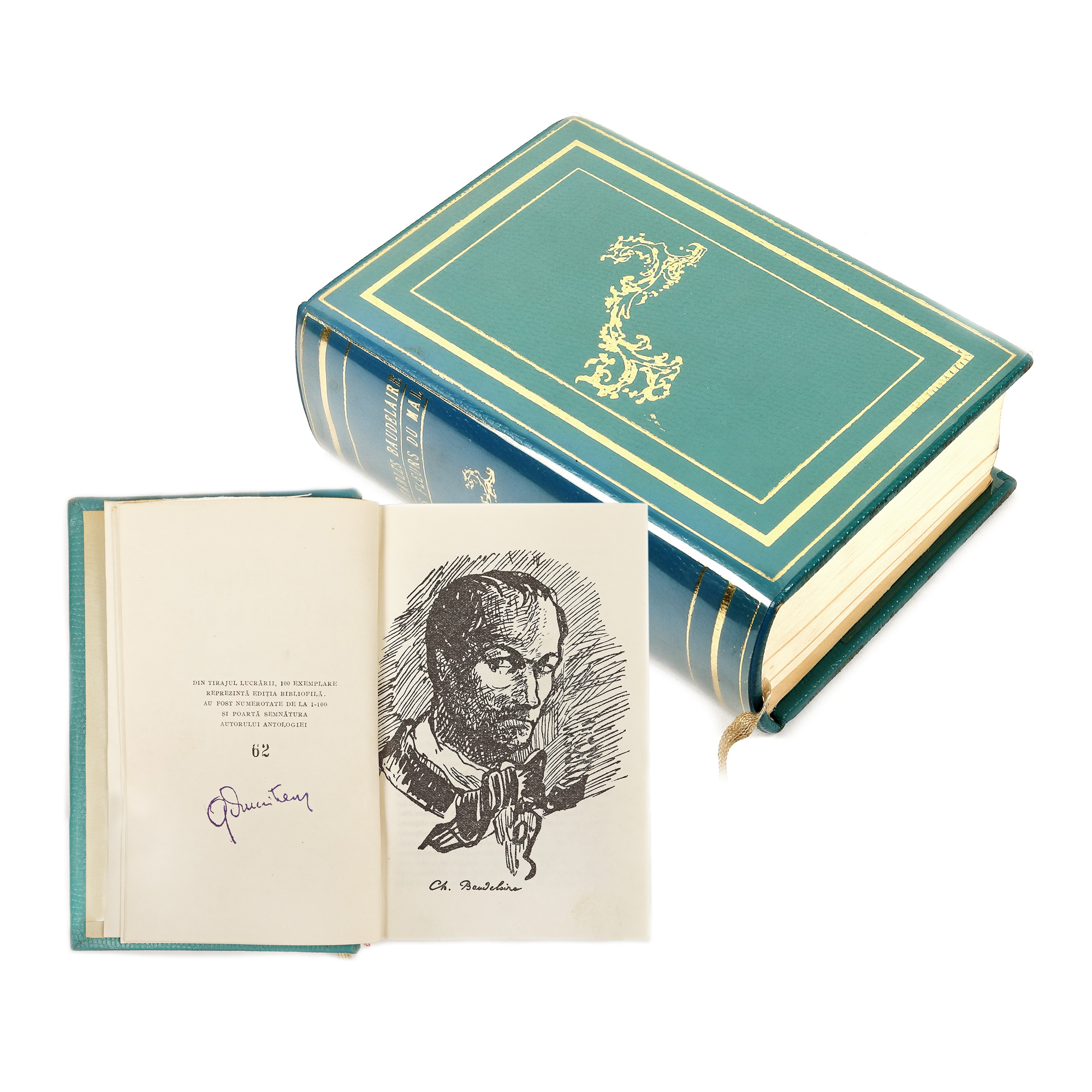 Exemplarul cuprinde, pe lângă semnătura olografă a lui Geo Dumitrescu, reproduceri după desenele originale ale ediției franceze princeps realizate de Charles Baudelaire. Exemplar 62 din 100.