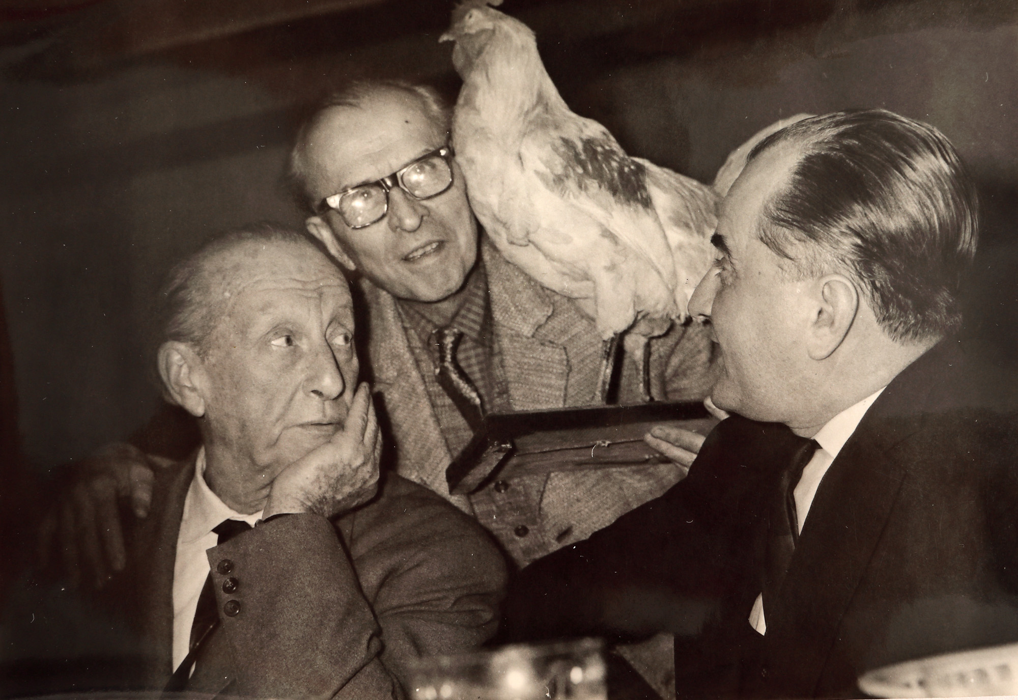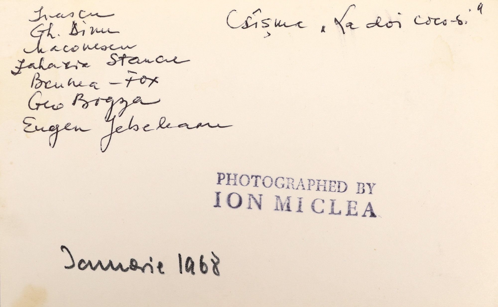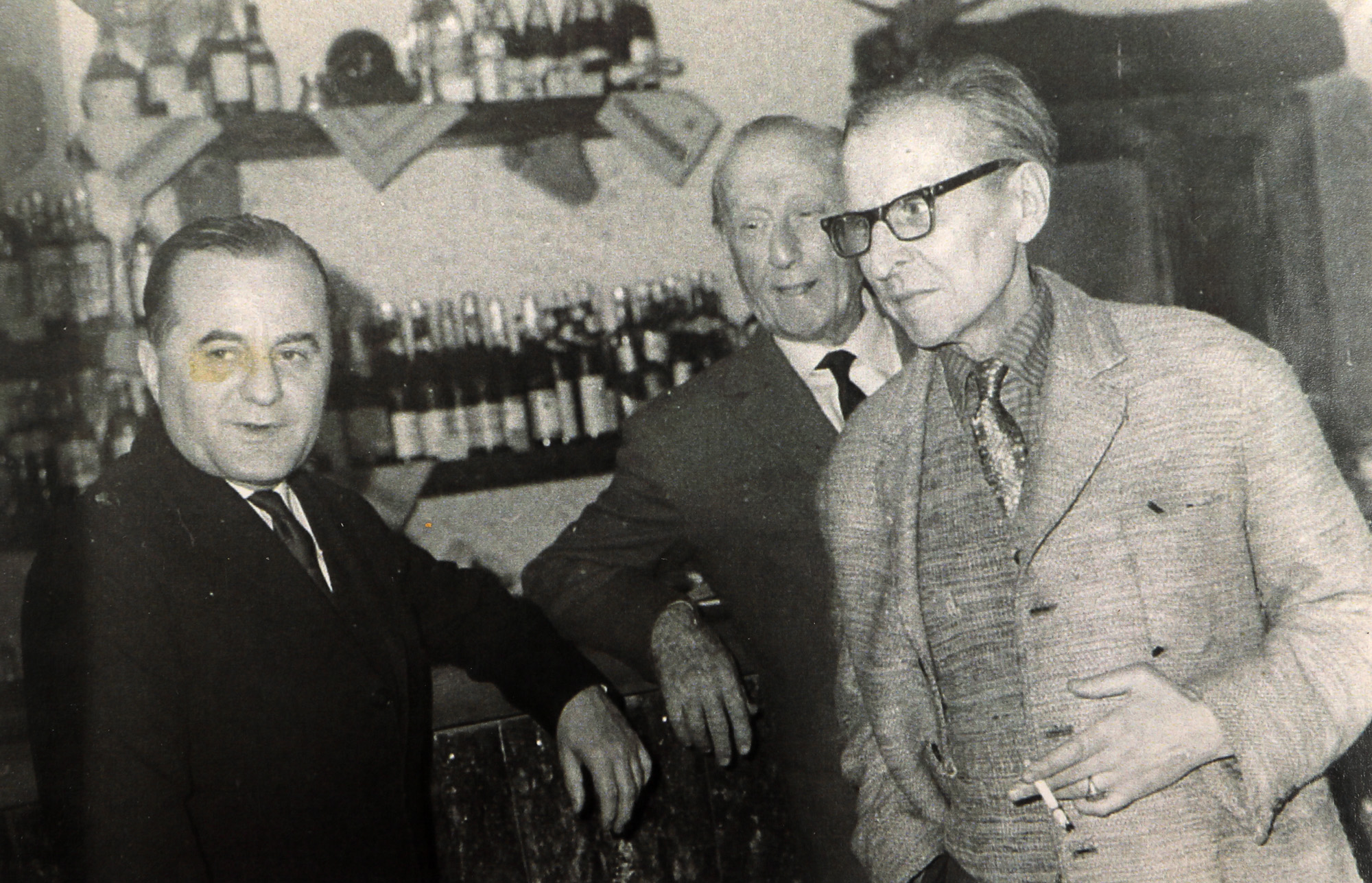 74. Lot format din patru fotografii de la aniversarea de 70 de ani a jurnalistului Felix Brunea-Fox, alături de Gheorghe Dinu (Ștefan Roll), Geo Bogza, Georghe Macovescu, Zaharia Stancu, Eugen Jebeleanu, în restaurantul ”La Doi Cocoși”, ianuarie 1968, provine din colecția fostului ministru de externe George Macovescu
