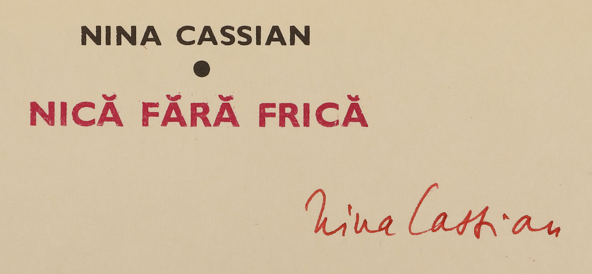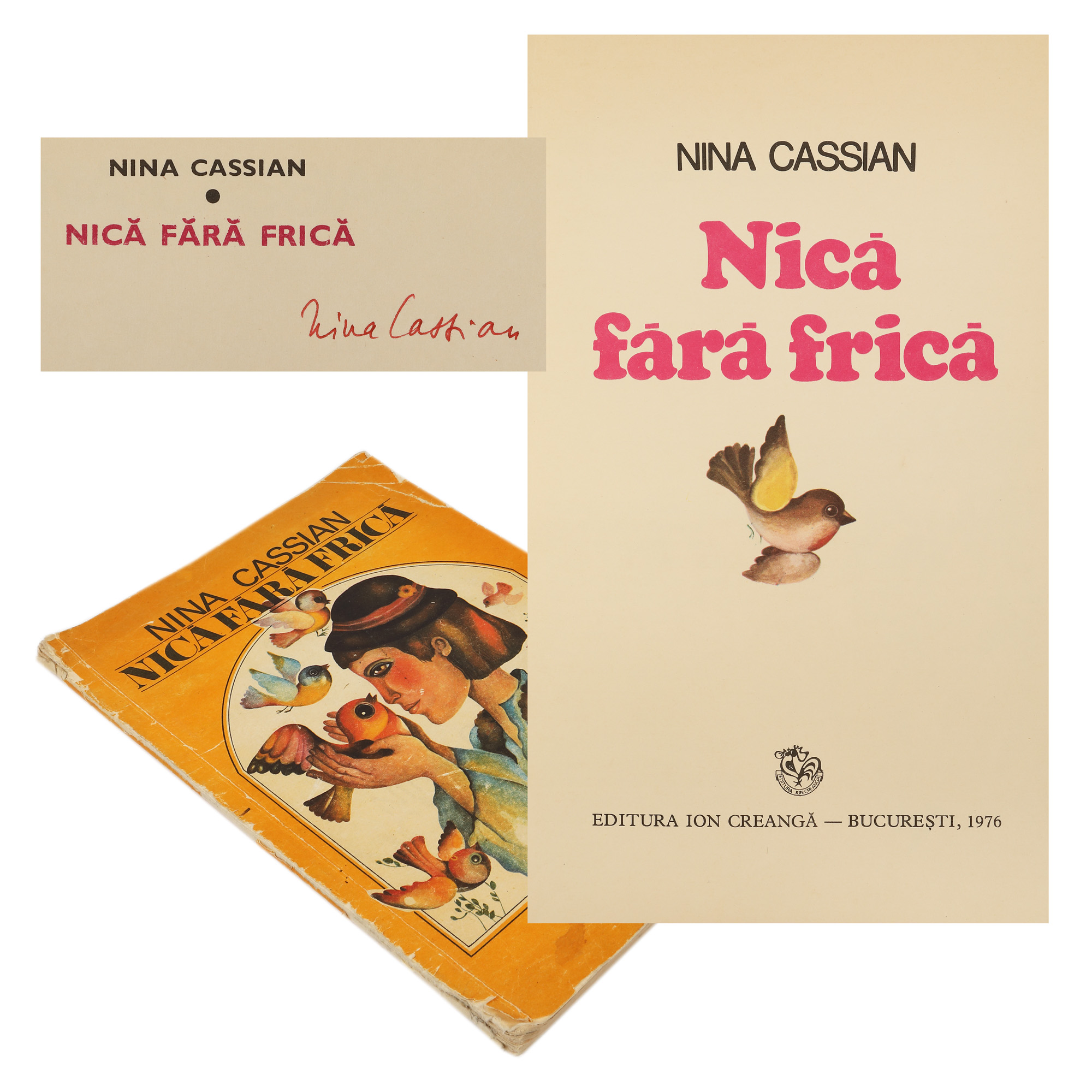 68. ”Nică fără frică”, de Nina Cassian, București, 1976, cu semnătura olografă a autoarei