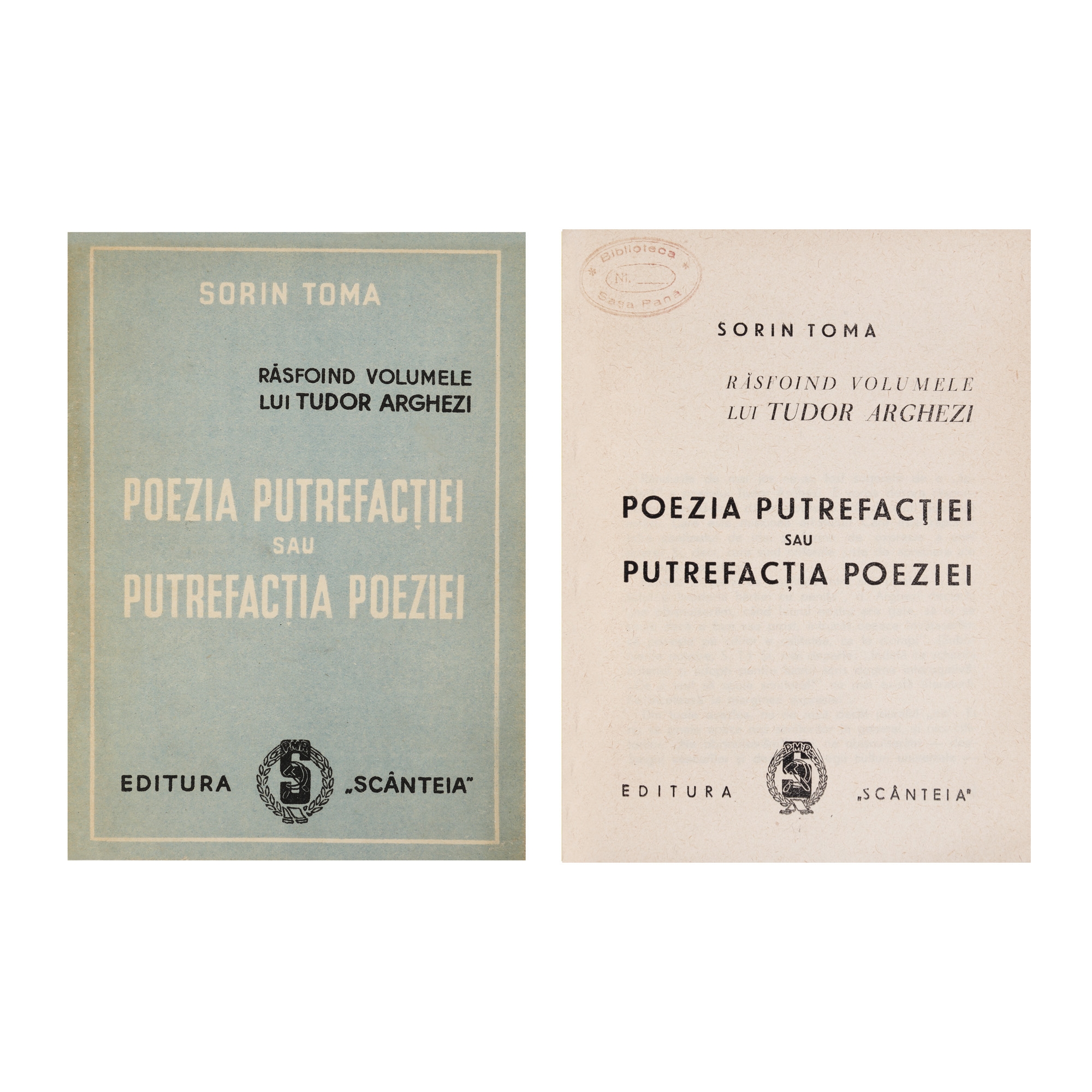 67. ”Poezia putrefacției sau putrefacția poeziei”, de Sorin Toma, București, cu ex-libris, piesă extrem de rară, provine din colecţia Saşa Pană