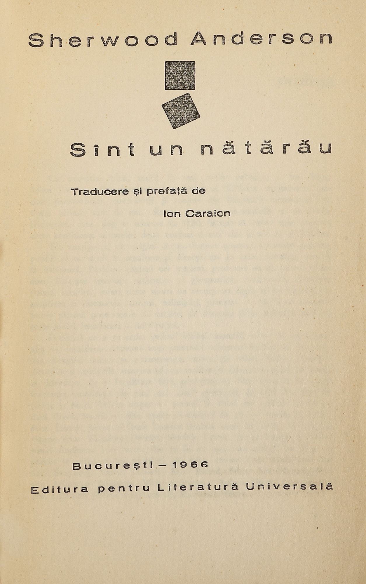 Scriitorul Ion Caraion (1923-1986) îngrijea traducerea în limba română a acestui roman publicat de prozatorul american Sherwood Anderson pe care îl oferea cu o frumoasă dedicație Domniței Gherghinescu, muza cenaclului literar de la Brașov inițiat și condus de soțul său, poetul Vania Gherghinescu.