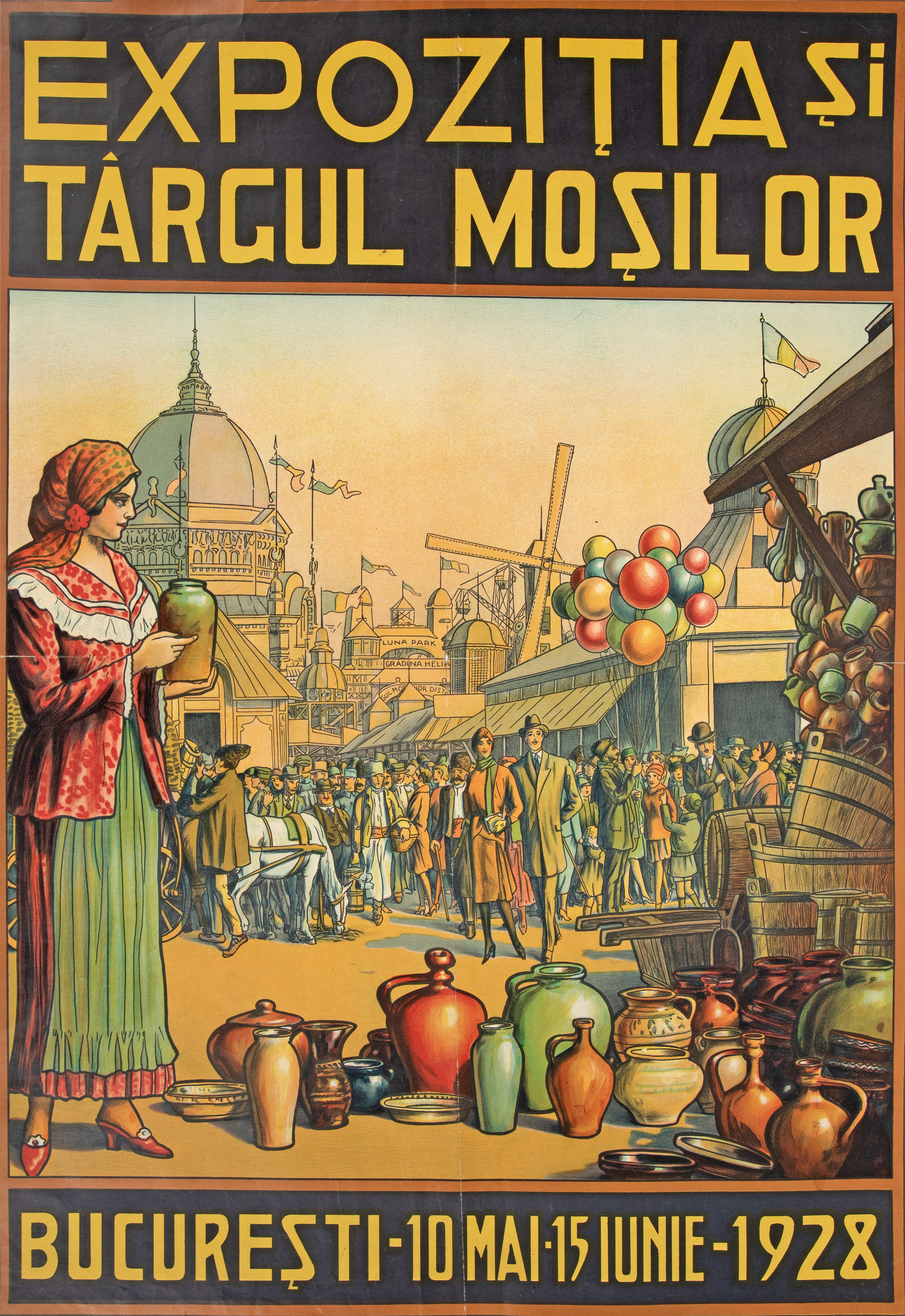 118. Afiș ”Expoziția și Târgul Moșilor”, de Ary Murnu, 10 mai - 15 iunie, 1928, piesă rară, de colecție, provine din colecția familiei de artiști Murnu