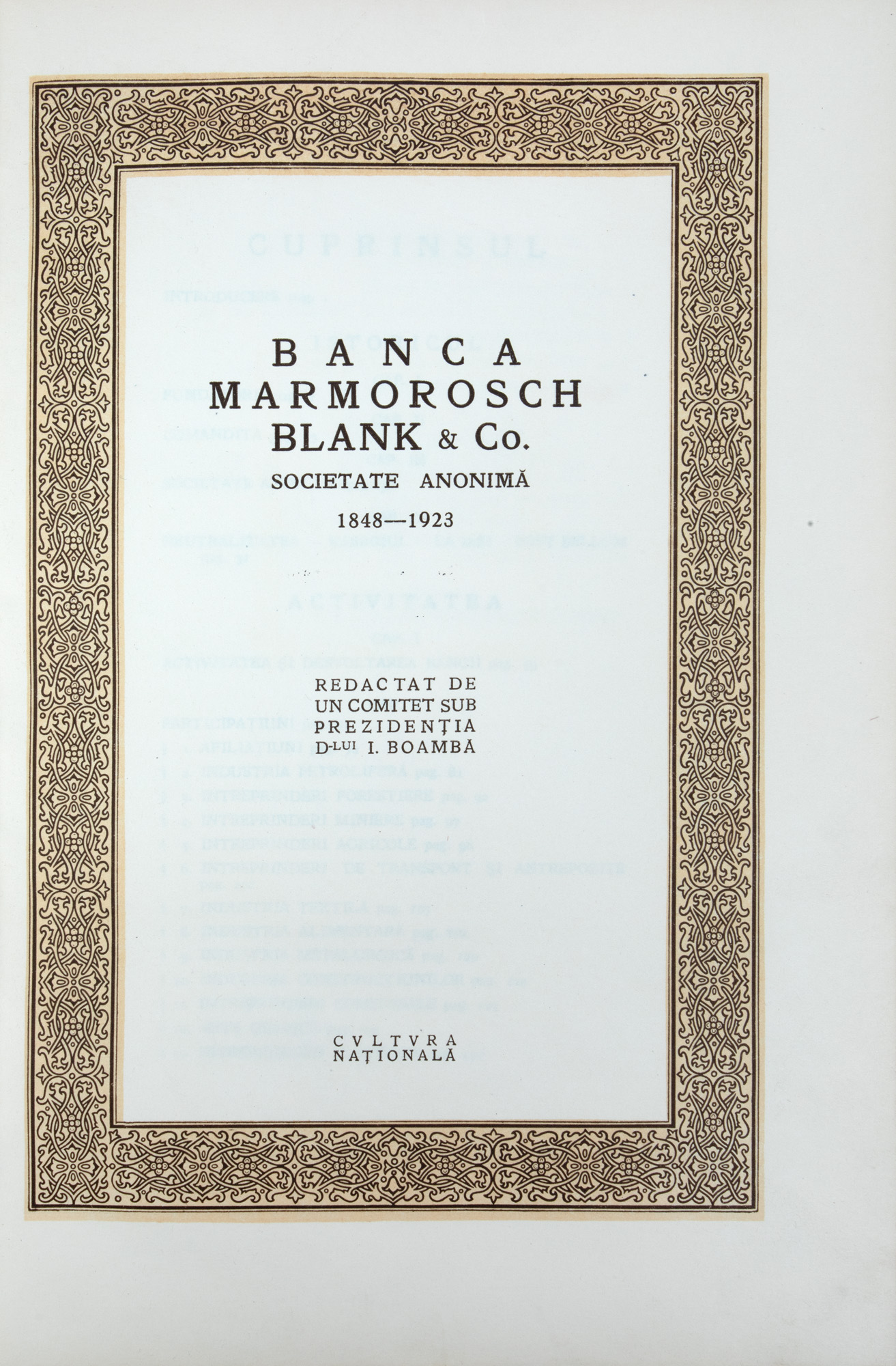 72. ”Banca Marmorosch Blank”, întocmit de I. Boambă, București, 1923, ediție de lux