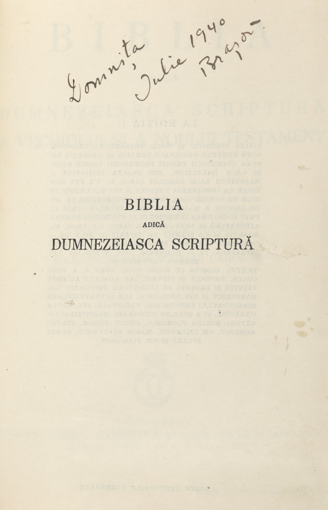 77. ”Biblia”, București, 1939, ediția Gala Galaction, cu ex-libris, provine din colecția scriitorului Vania Gherginescu