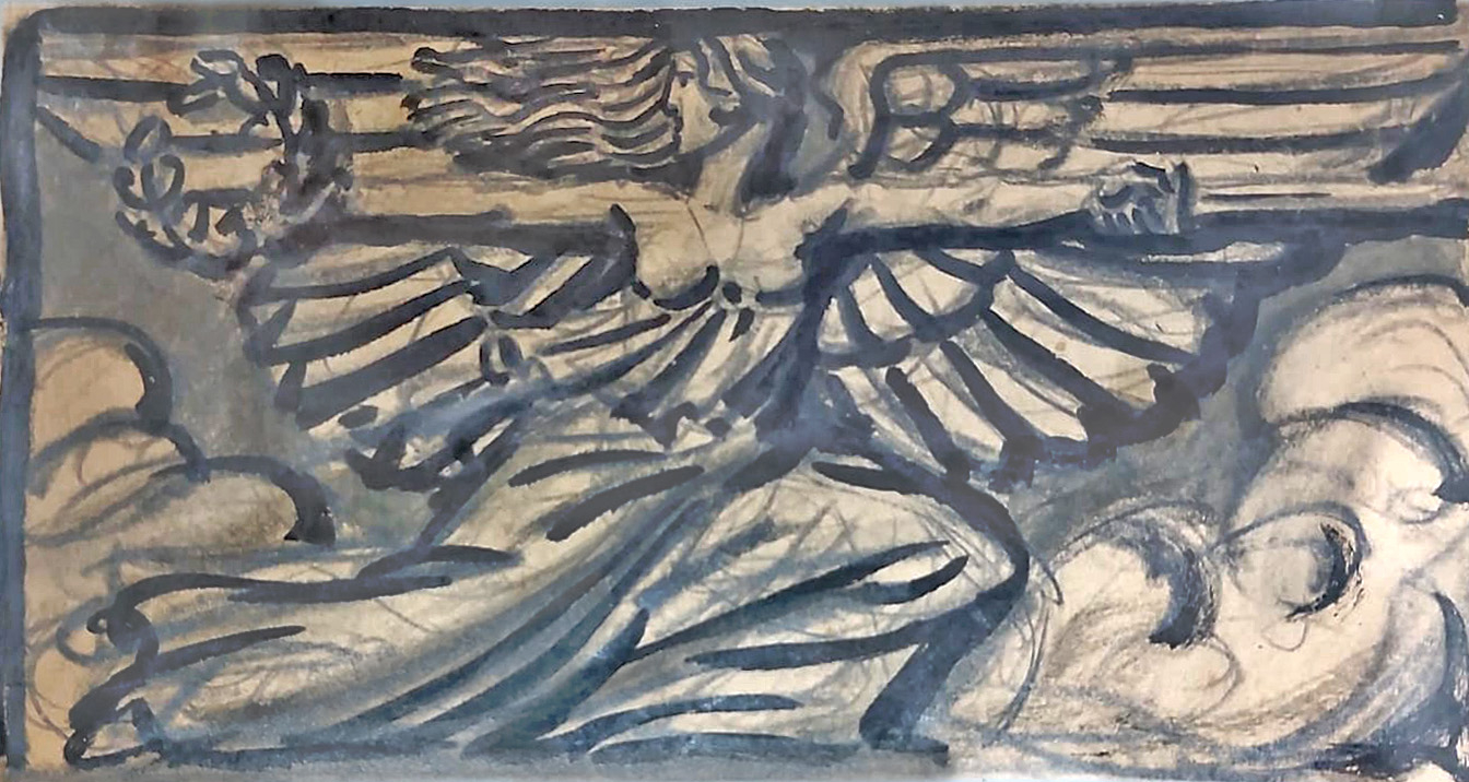 134. Desen original de Ary Murnu, parte a unei machete filatelice, provine din colecția familiei de artiști Murnu
