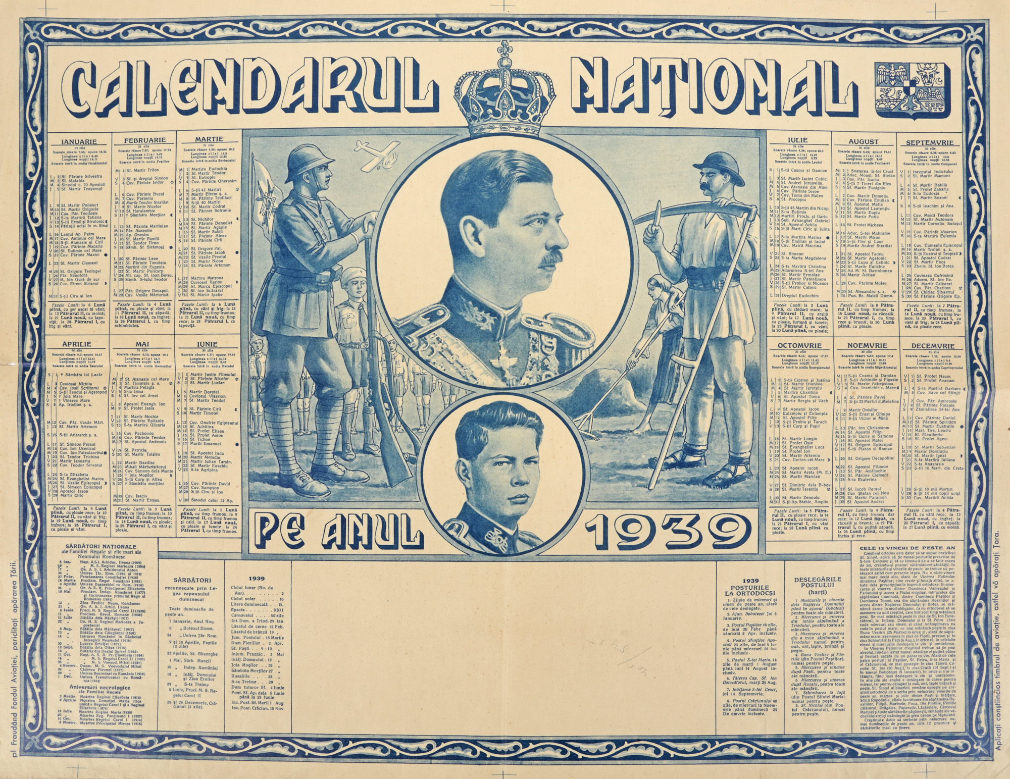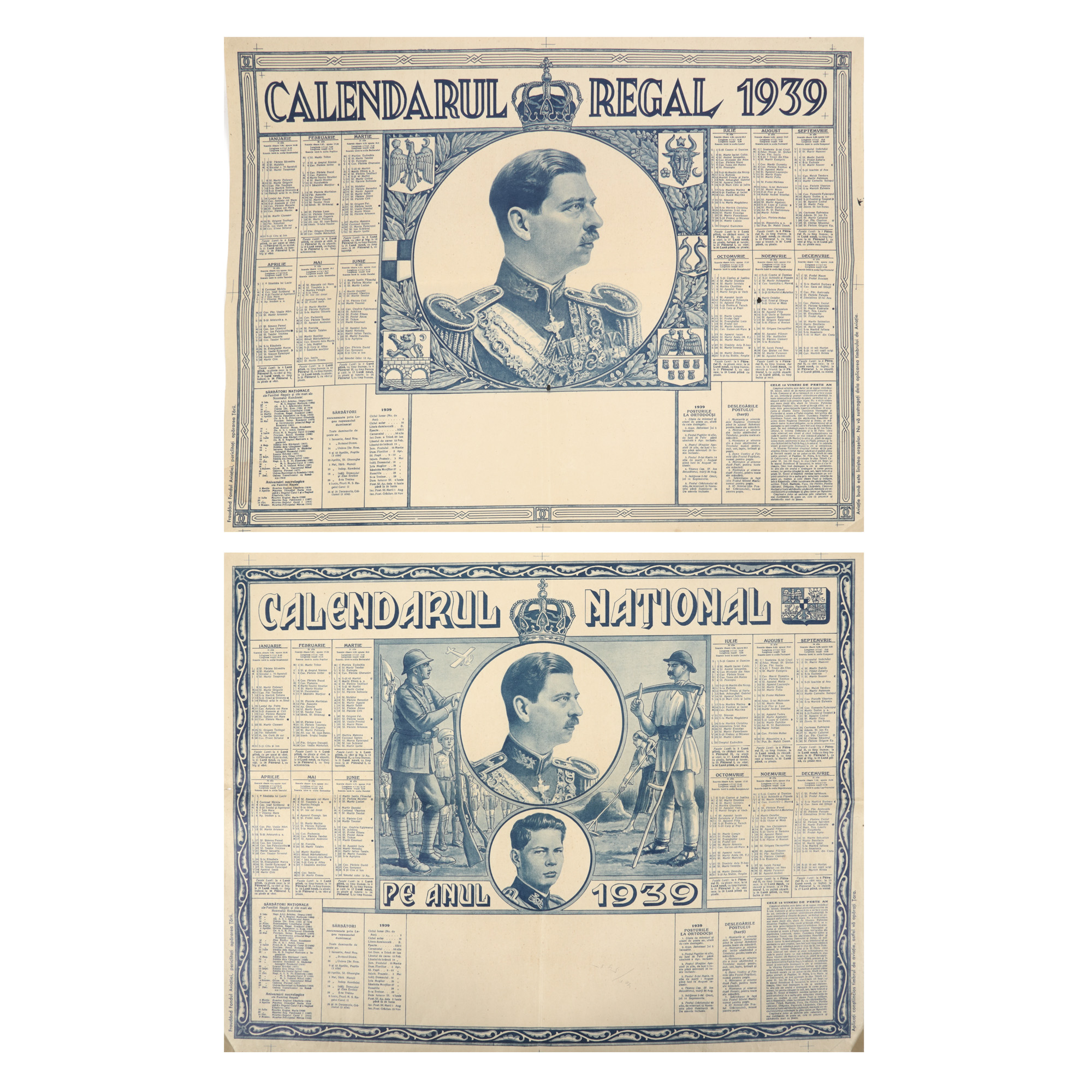 130. Lot format din ”Calendarul Regal” și ”Calendarul Național”, de Ary Murnu, 1939, piese de colecție, provine din colecția familiei de artiști Murnu