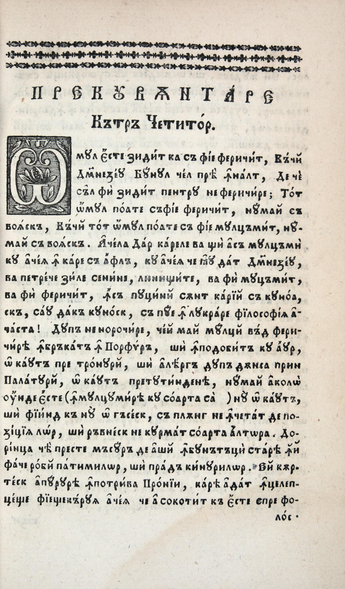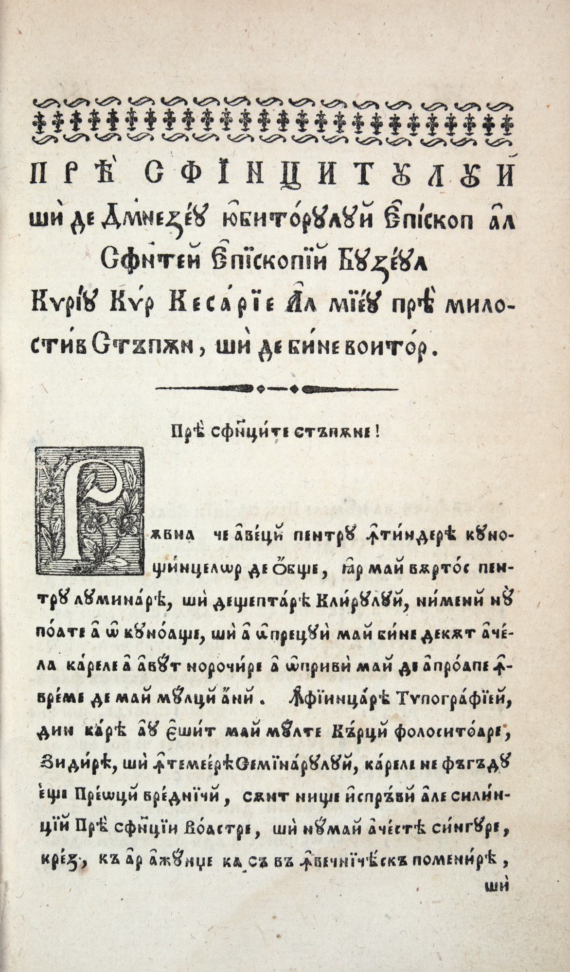Volumul I: Exemplar complet, 12 + 294 de pagini. Paginile liminare cuprind pagina de gardă, argumentul cărții, pagina de titlu, prefața, semnată de Filoteiu, iconom al Episcopiei Buzăului, adresată lui Chesarie, episcopul Buzăului, și Precuvântare către cititori semnată tot de Filoteiu, după care urmează cuprinsul cărții. Legătură este din carton, acoperită cu pergamoid de culoare maro, iar cotorul este din piele maro și este decorat cu cinci registre, al doilea de sus are titlul cărții cu litere aurii, iar pe al patrulea registru este monograma aurită a regelui Carol I; prezintă semn de carte. Pe forzațul anterior mobil verso se află o monogramă realizată cu cerneală albastră a regelui Carol I. Volumul II : Exemplar legat în format colligat, 2 + 168 de pagini/ 4 + 154 de pagini. La tomul II lipsește doar pagina de titlu. Legătură din carton, acoperită cu pergamoid de culoare maro, iar cotorul este din piele maro și este compus din cinci registre, al doilea de sus are titlul cărții cu litere aurii, iar pe al patrulea registru este monograma regelui Carol I; prezintă semn de carte.