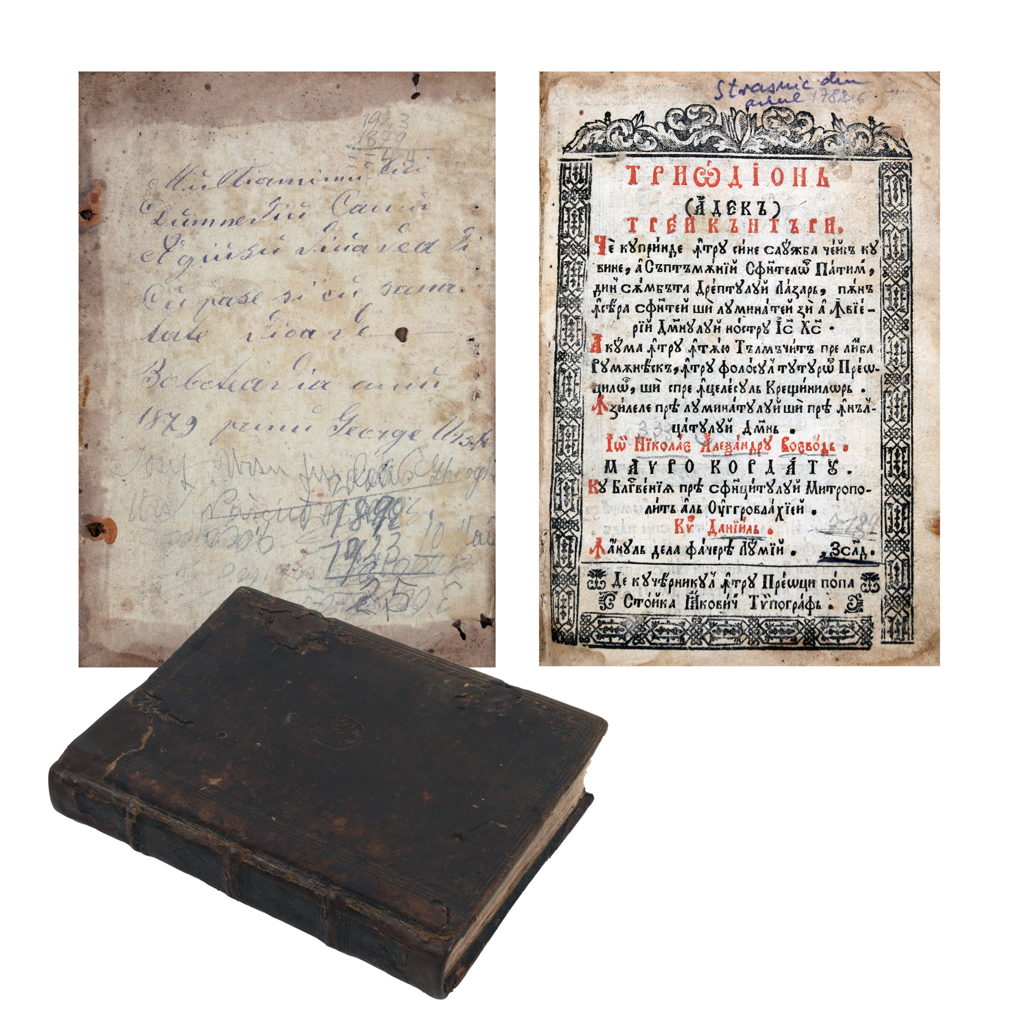 86Т. ”Triodul Săptămânii Mari”, editat de mitropolitul Daniil al II-lea al Țării Românești, tipărit de Stoica lacovici în tipografia Mitropoliei din București, 1726, în ediție princeps, sub patronajul domnitorului Țării Românești, Nicolae Mavrocordat