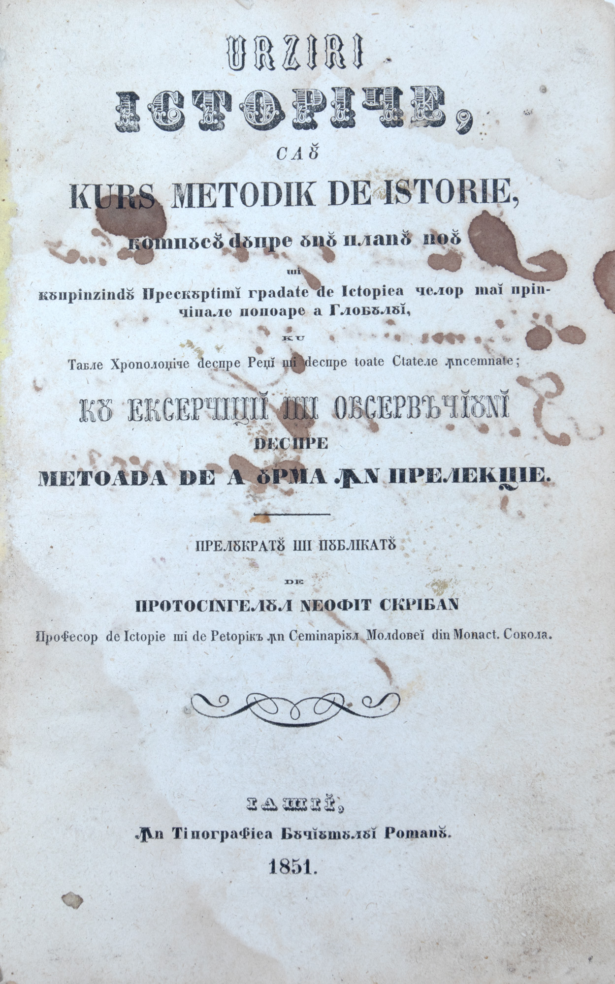 100. "Urziri istorice sau Curs metodic de istorie”, de Neofit Scriban, Iași, 1851