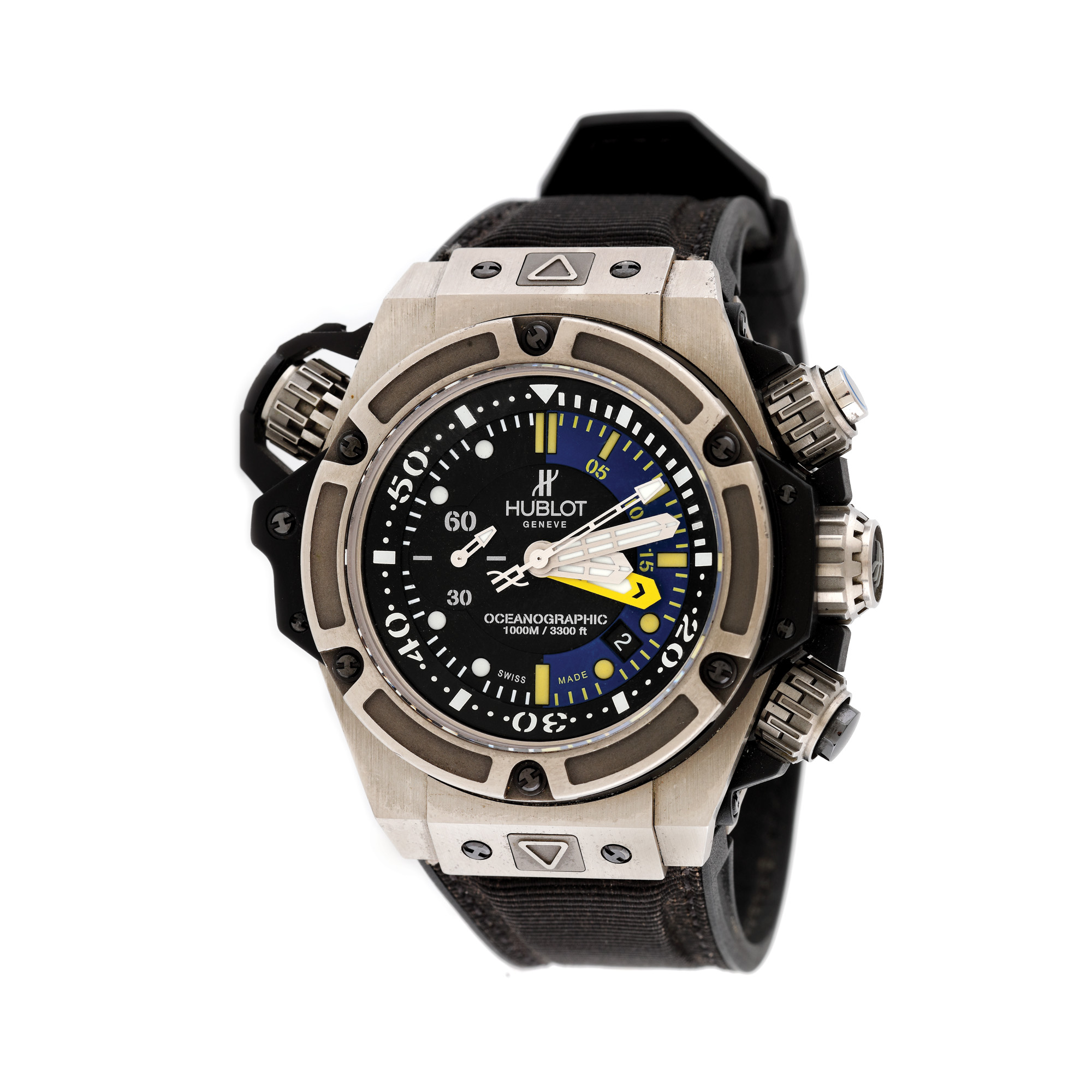 97. Ceas Hublot King Power Oceanographic, din titan, de mână, bărbătesc, ediție limitată 153/1000, vine însoțit de actele de proveniență