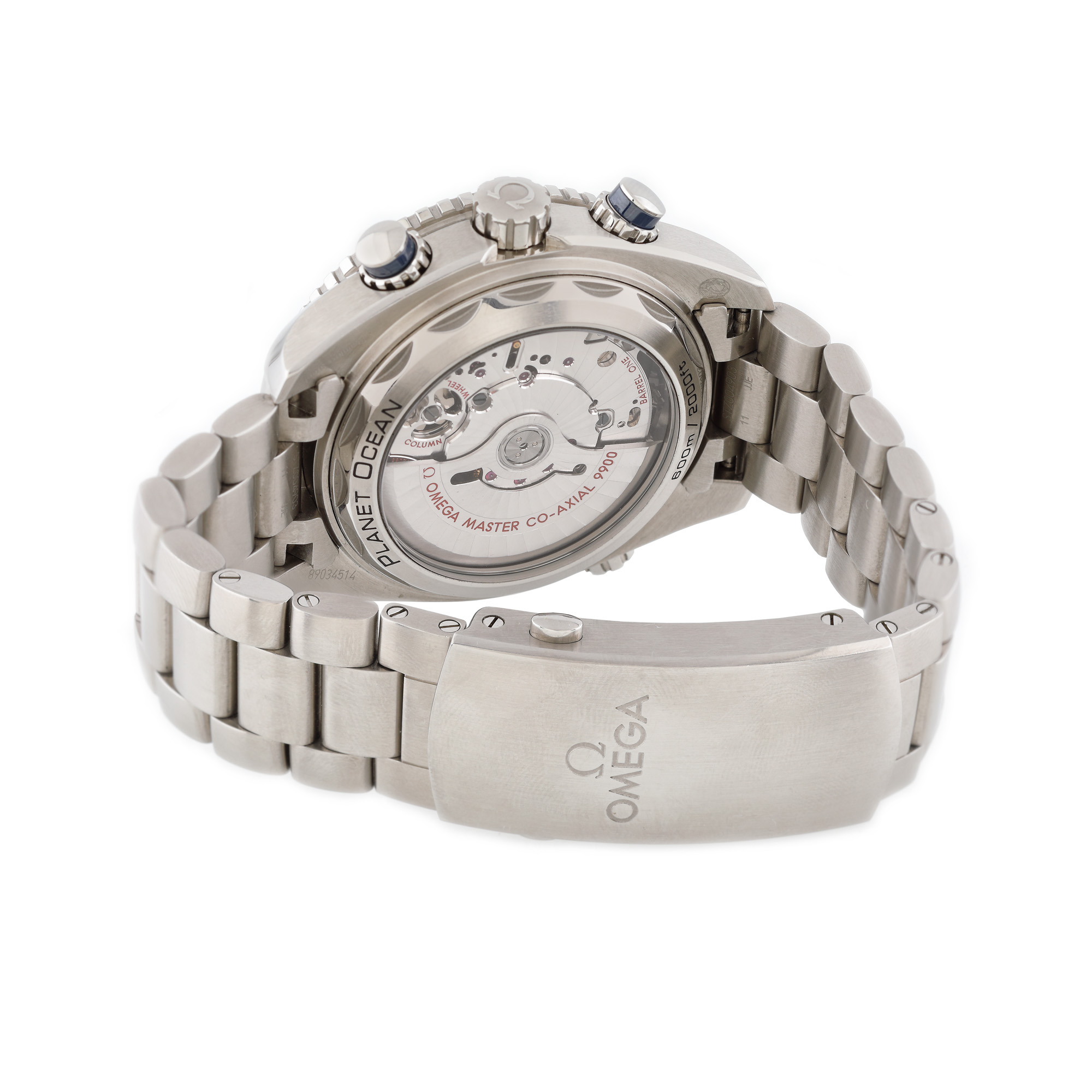 Ceas Omega Seamaster Planet Ocean, de mână, bărbătesc, referința 215.30.46.51.03.001, mecanism automatic, anterior vitrat. Cadran negru, bezel rotativ unidirecțional, cu două registre și dată în dreptul orei 6. Brățară și închizătoare tip deployant, originale.