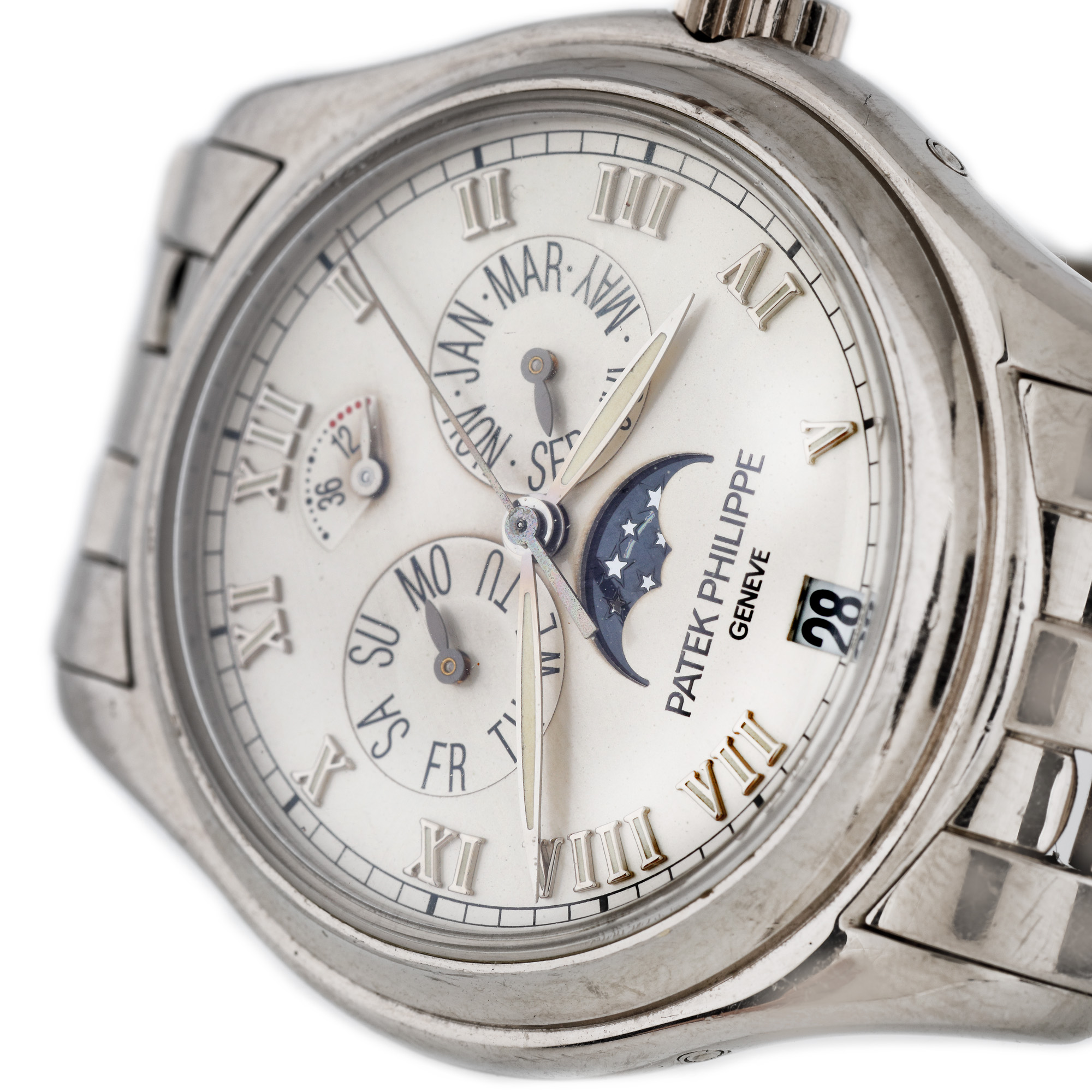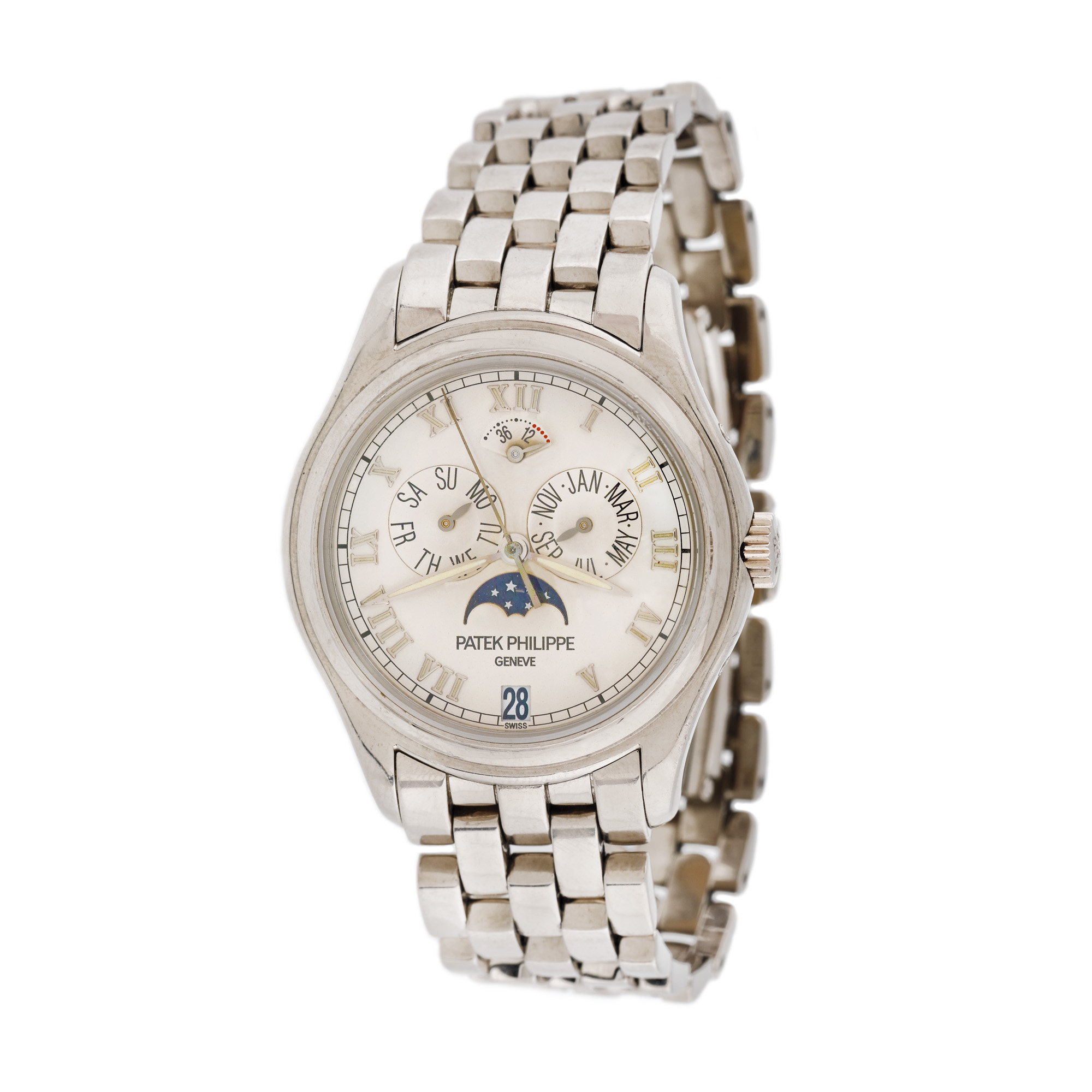 56. Ceas Patek Philippe Annual Calendar, din aur alb, de mână, bărbătesc, vine însoțit de extrasul de arhivă