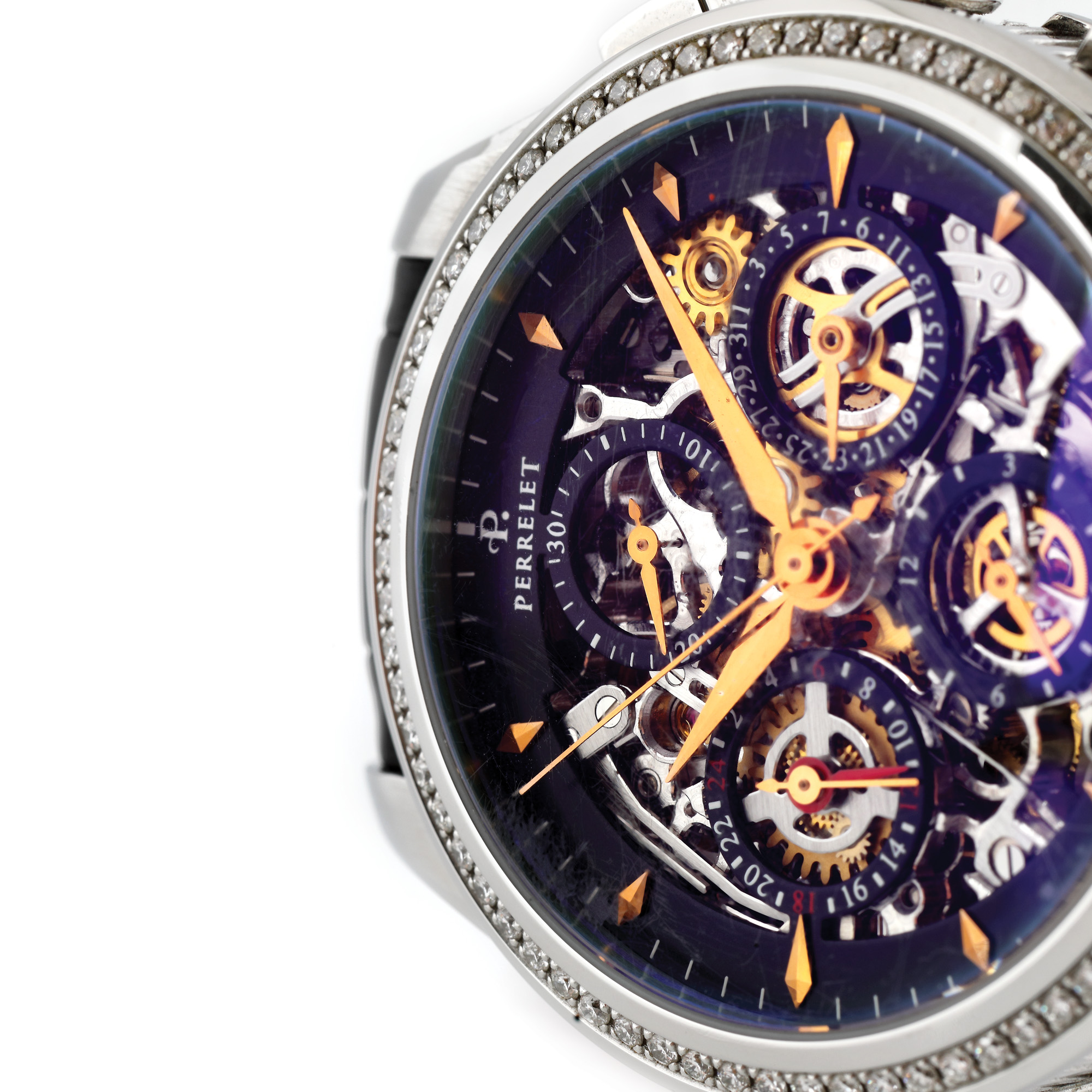 89. Ceas Perrelet Skeleton Chronograph, de mână, unisex, decorat cu diamante