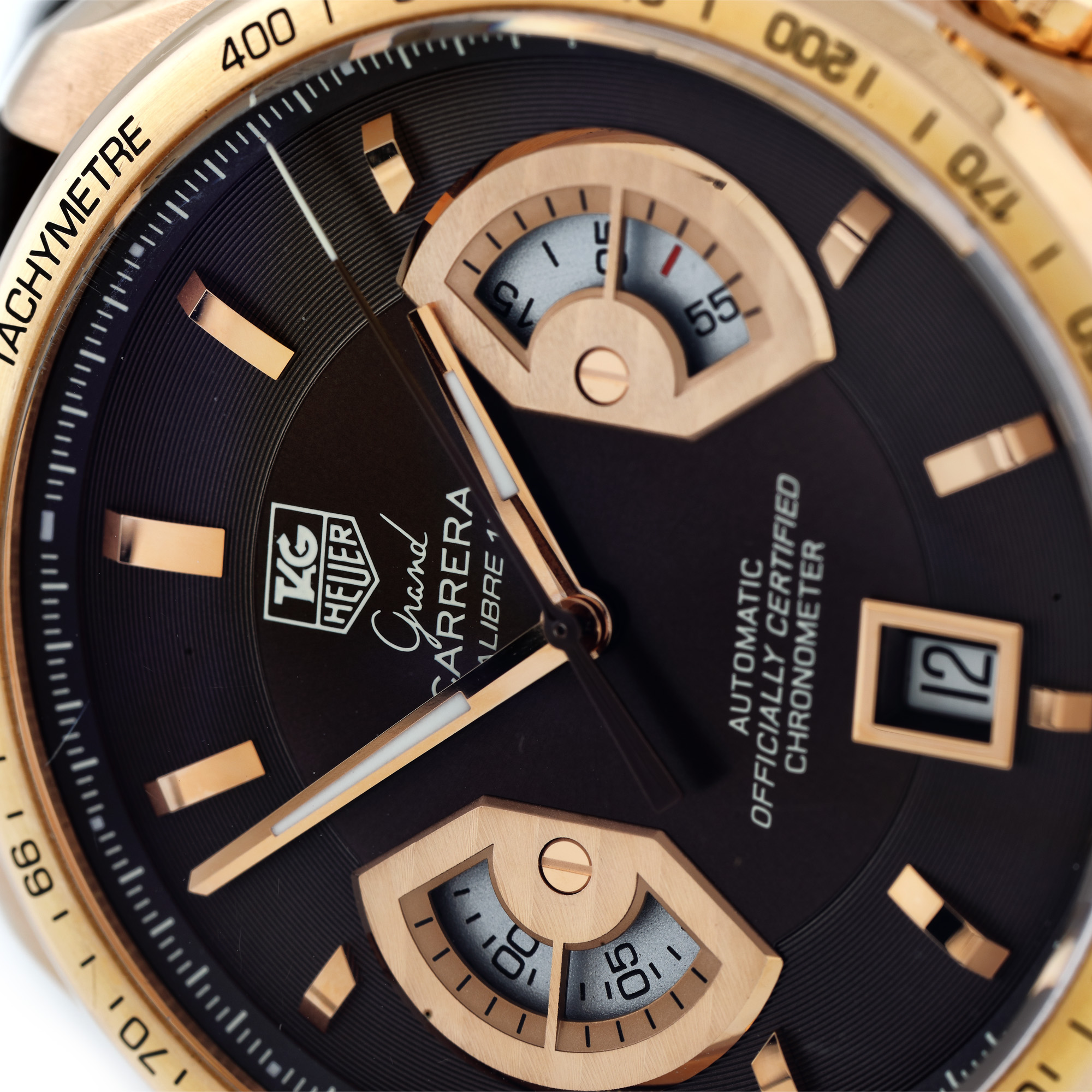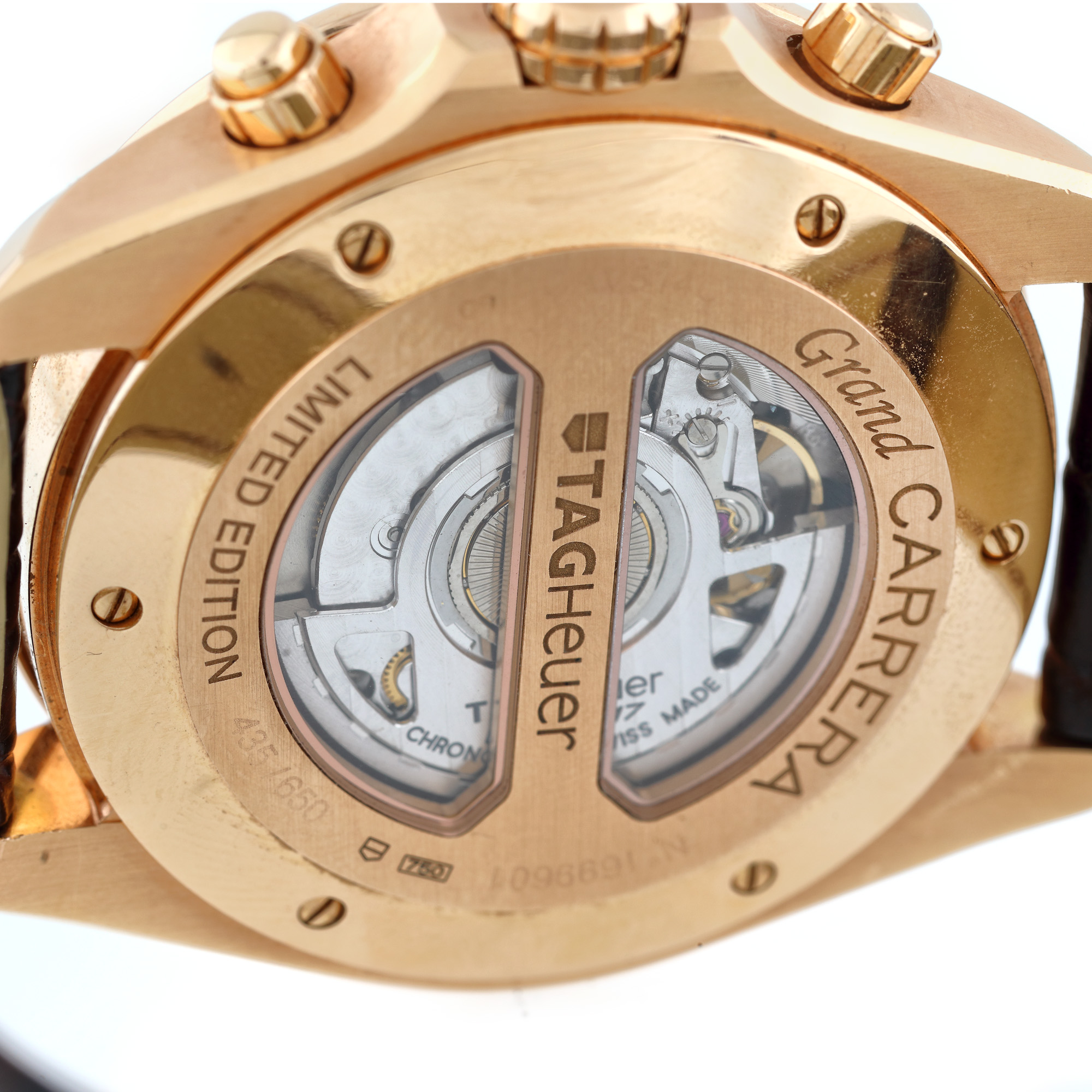 143. Ceas Tag Heuer Grand Carrera, din aur roz, de mână, bărbătesc, ediție limitată 435/650, vine însoțit de actele de proveniență și de cutia originală [Cca. 2012]