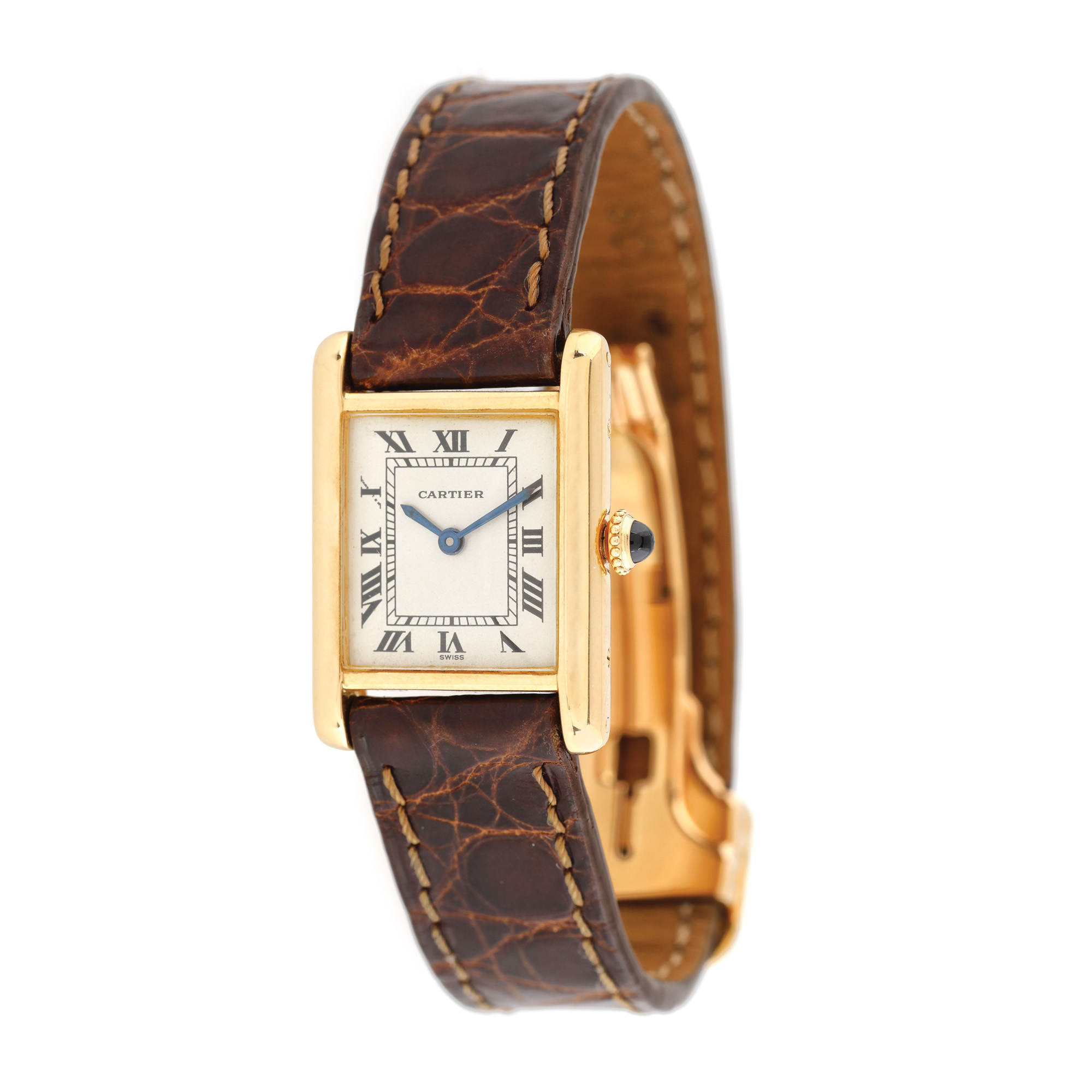 124. Ceas Tank Louis Cartier, vintage, din aur, de mână, de damă [1980-1989]