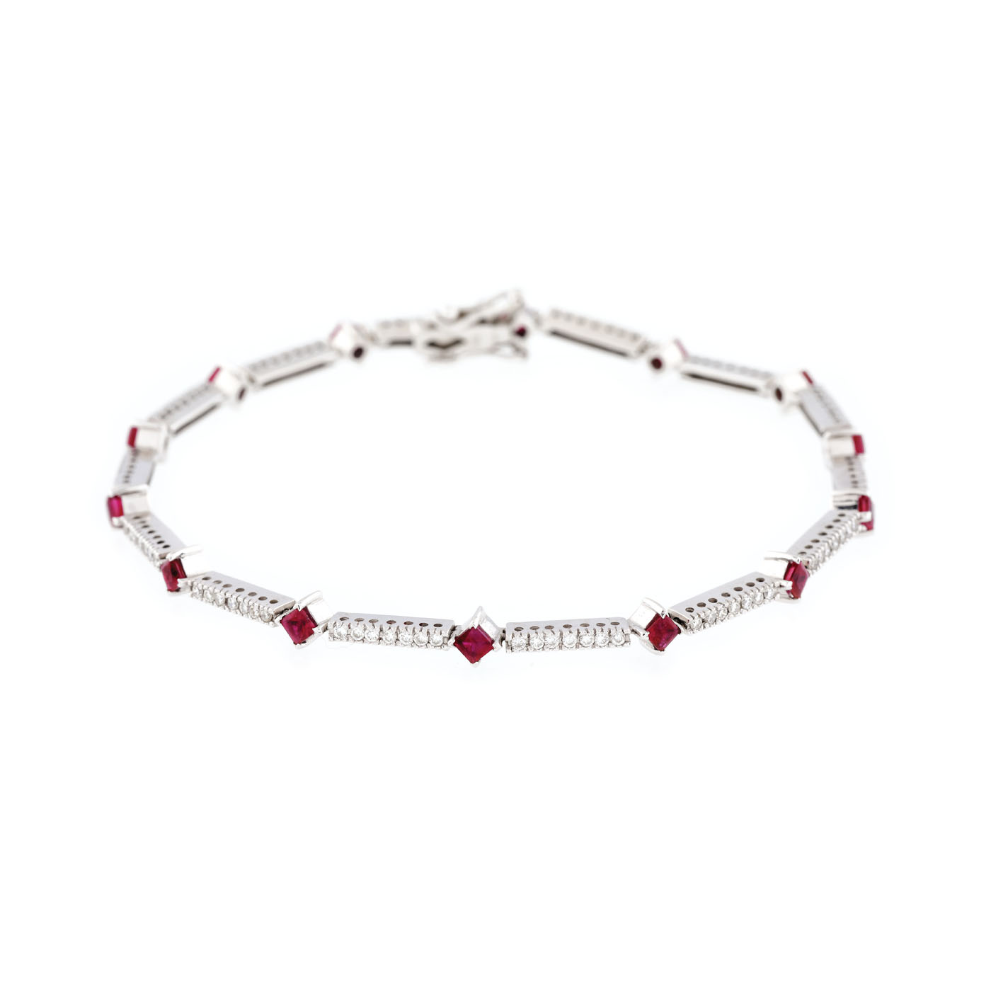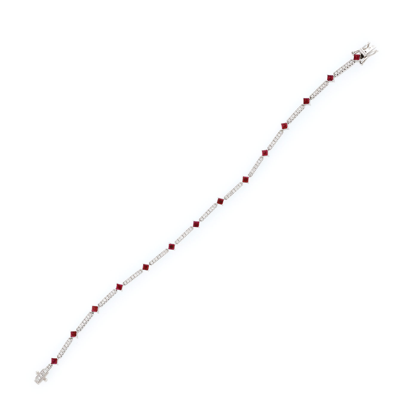 43. Brățară din aur alb, decorată cu diamante și rubine