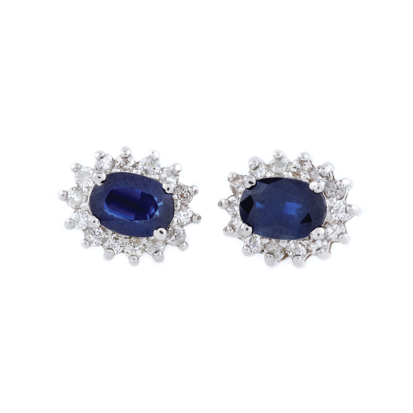 2 safire oval fațetate, culoare albastru, claritate SI, cca. 1,4 ct. și 28 diamante rotunde briliant, culoare J-K, claritate SI-I1, cca. 0,65 ct.