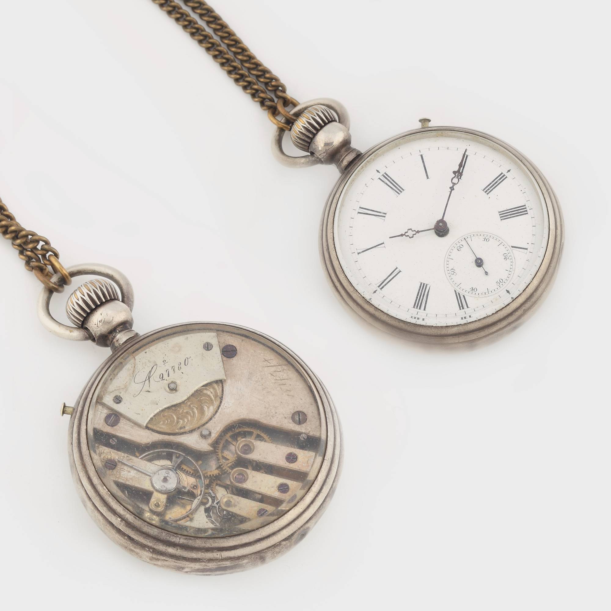 Ceas de buzunar, având cadran cu cifre romane și secundar la ora 6, mecanism cu întoarcere manuală, vitrat, nr. 27780.