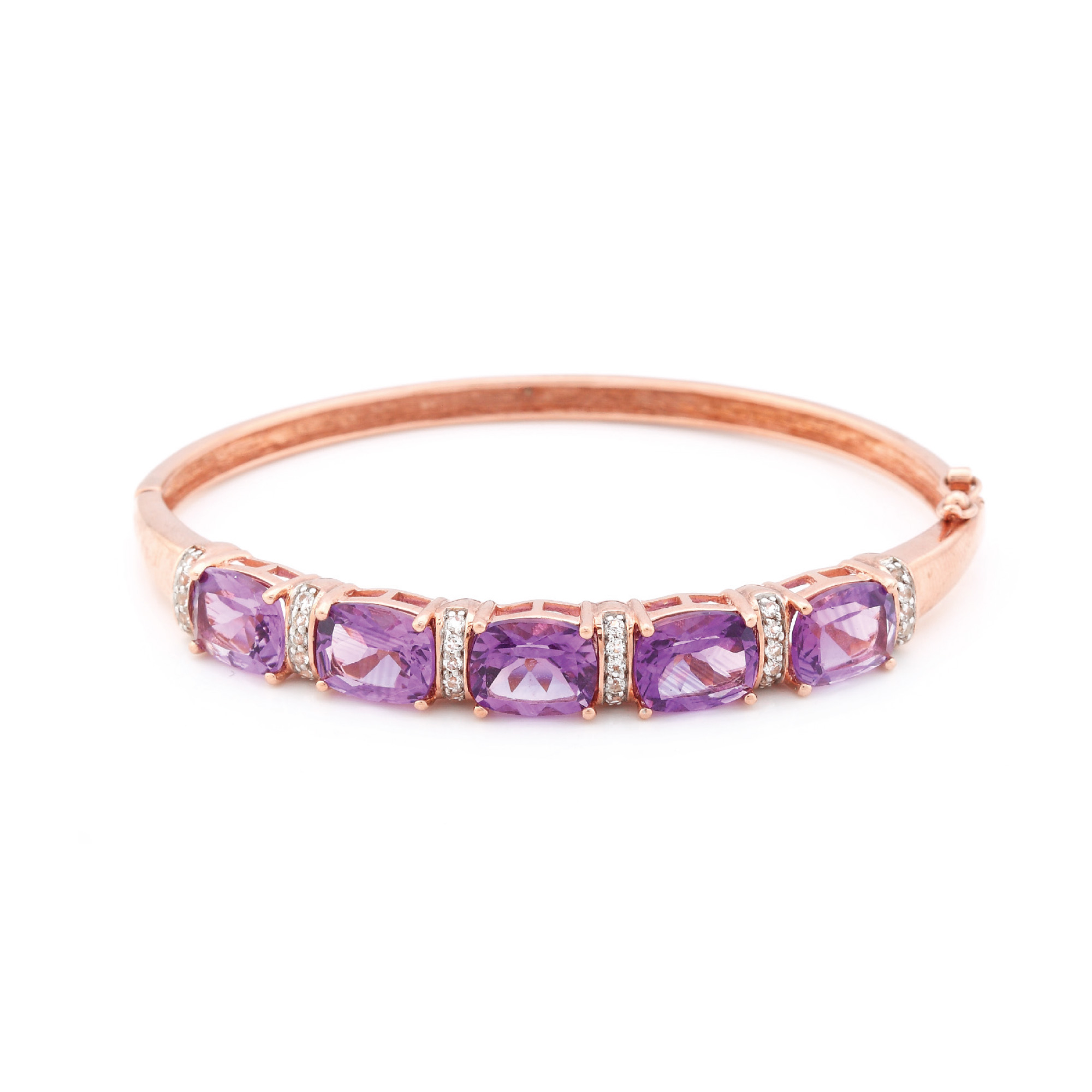 354. Brățară din argint placat cu aur roz, decorată cu ametiste și topaze albe