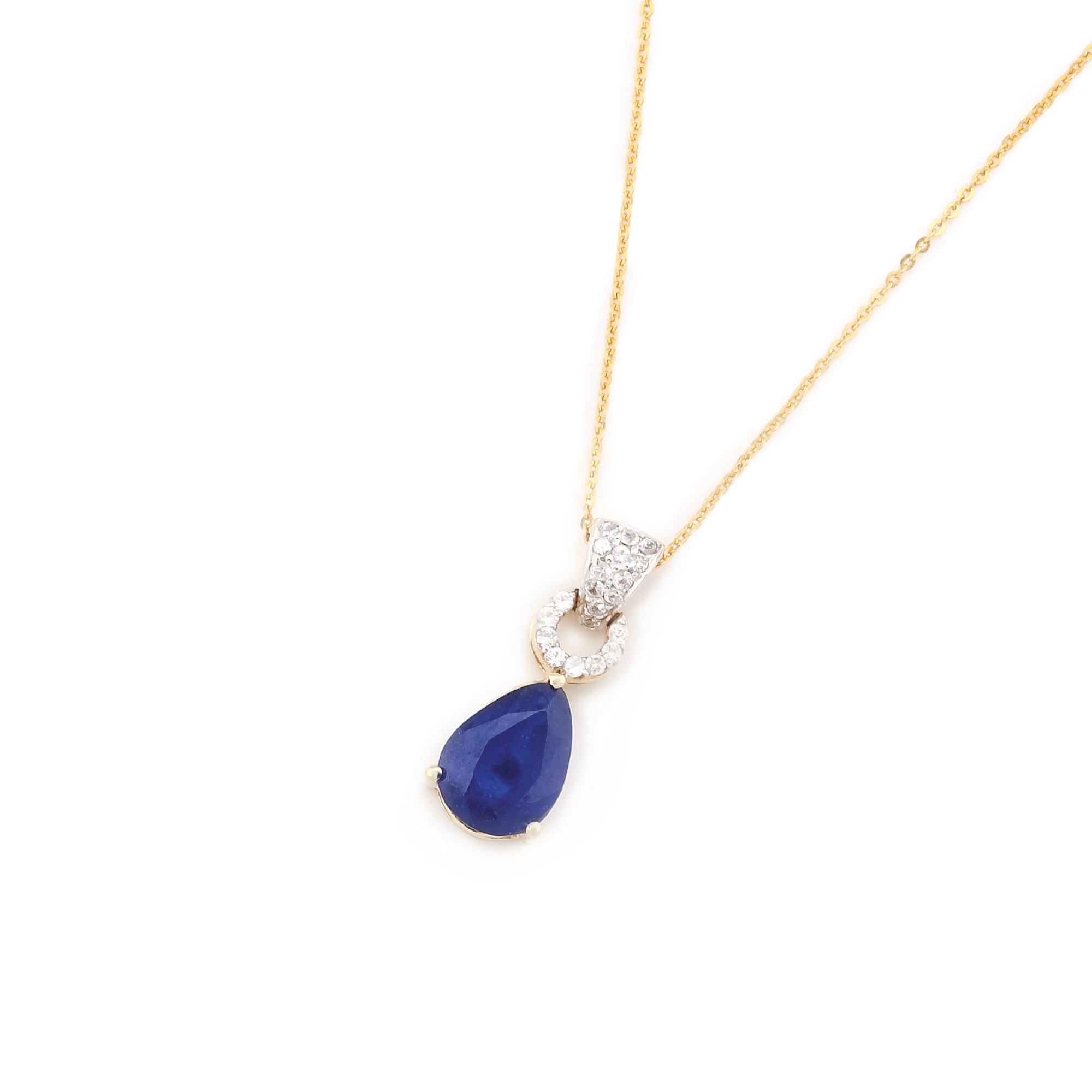 350. Lanț cu pandantiv din aur, ornat cu safire