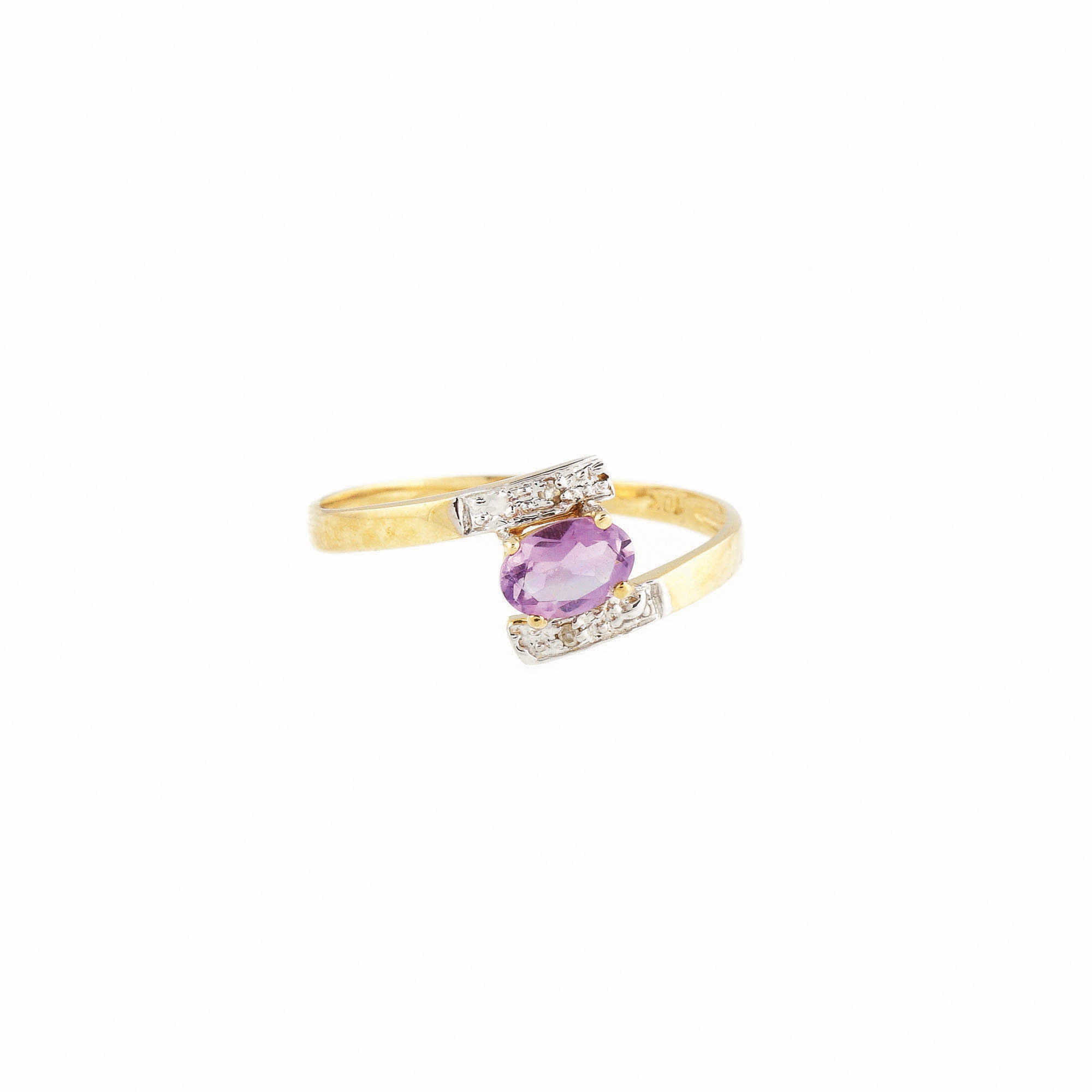 1 ametist oval faţetat cca. 0,36 ct., culoare violet, claritate eye-clean şi 1 diamant rotund single cut cca. 0,006 ct., culoare S-T, claritate I2