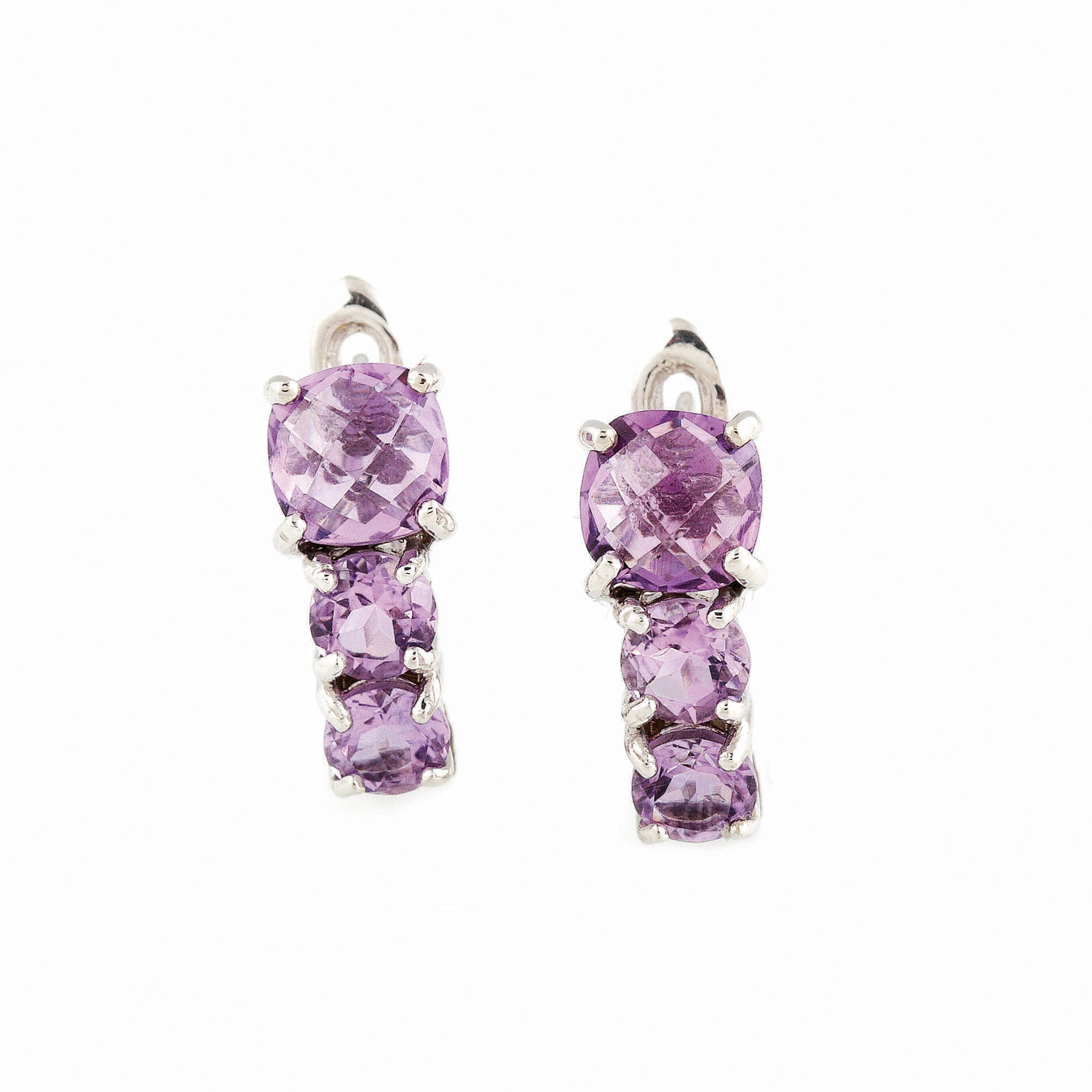 6 ametiste (2 checker cut cushion şi 4 rotund faţetate) cca. 3,4 ct., culoare violet, claritate eye-clean