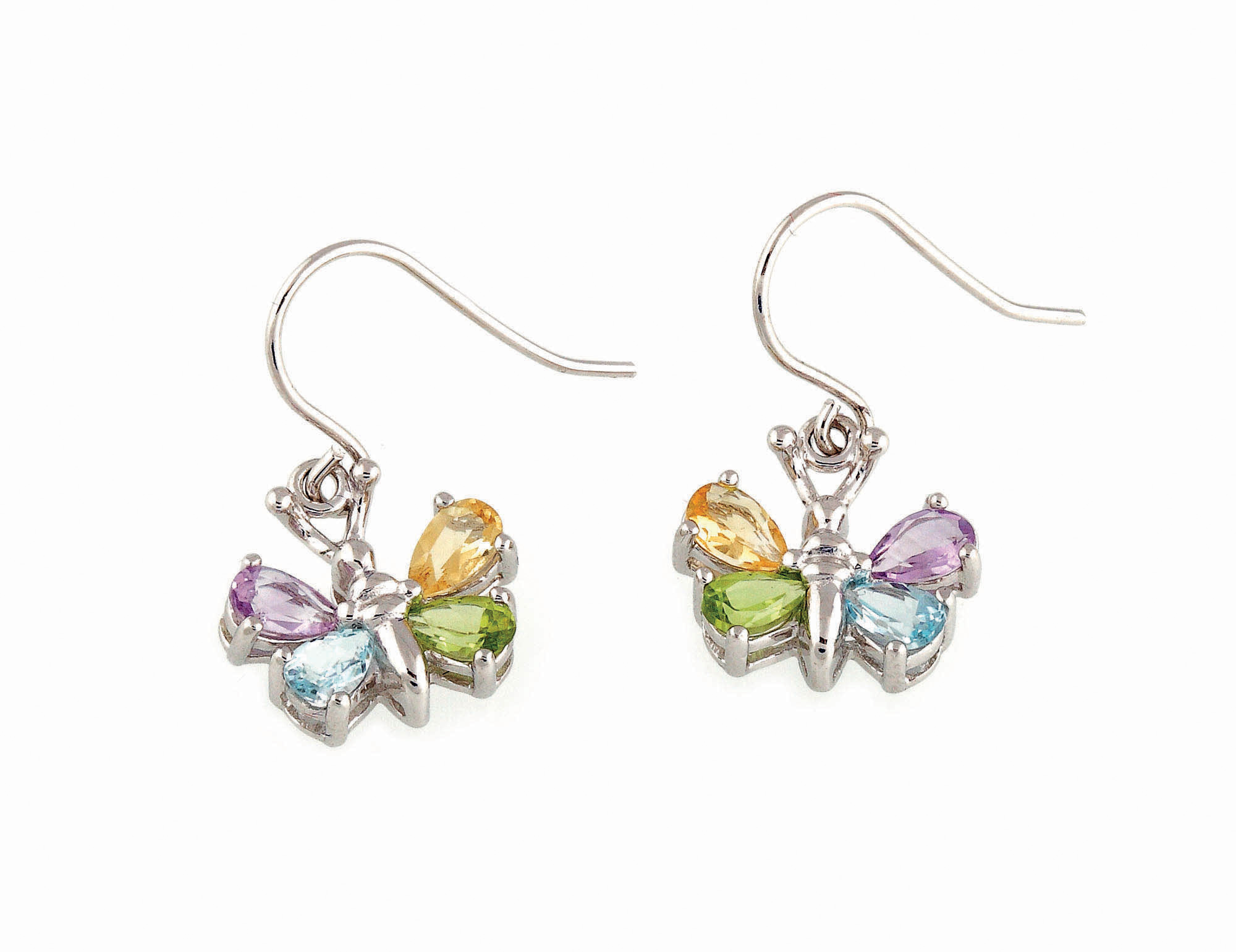 72. Pereche de cercei din argint, în formă de fluturi, decorată cu topaze, citrine, ametiste şi peridote