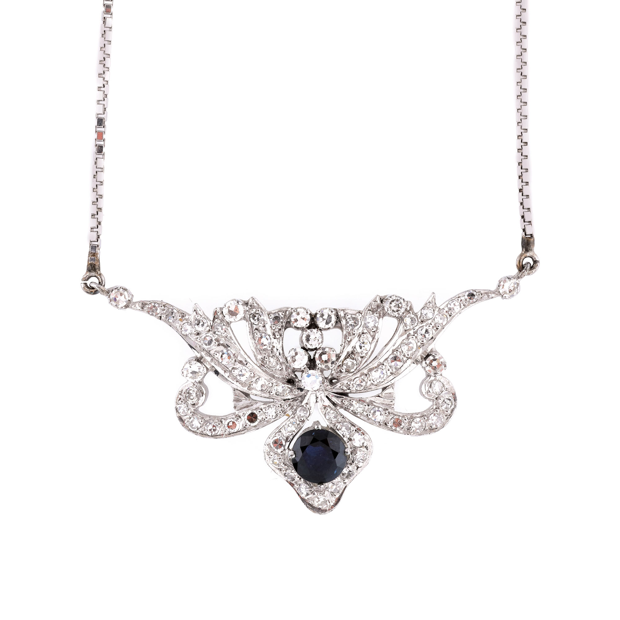 72. Elegant colier din aur alb, decorat cu diamante și safir